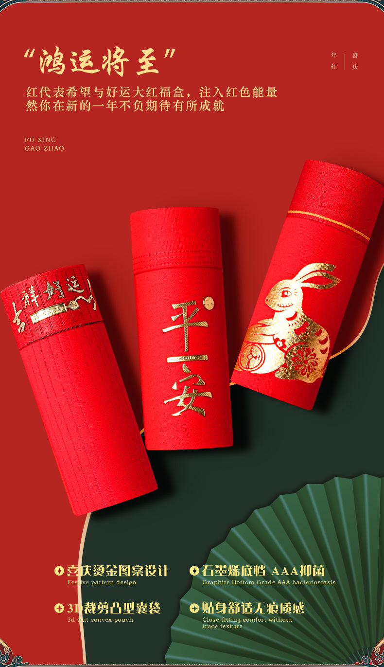 Ropa interior de hombre puro algodón Otoño e Invierno nacimiento año simple brillante rojo Boxer shorts boda niños Boxer shorts cabeza