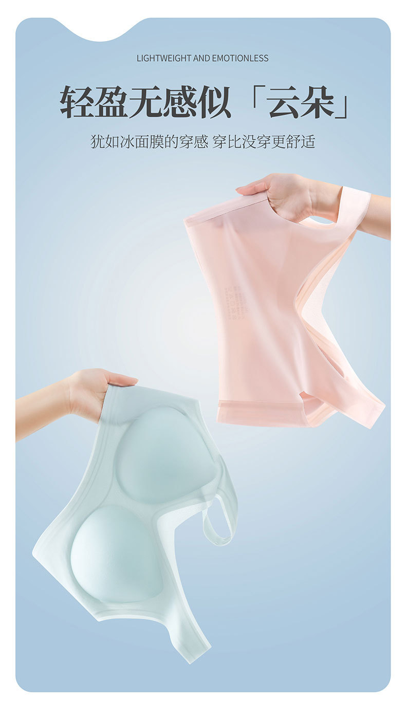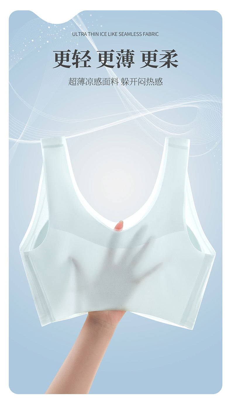 Sin costuras, hermosa espalda, ropa interior ultrafina, estilo de chaleco transpirable para mujer, pecho grande, tamaño pequeño, sujetador de seda de hielo de verano sin anillo de acero