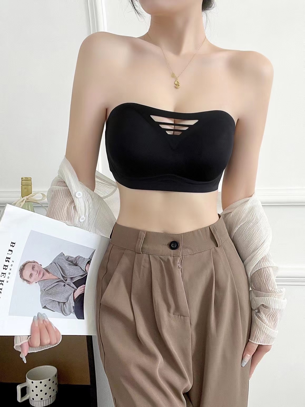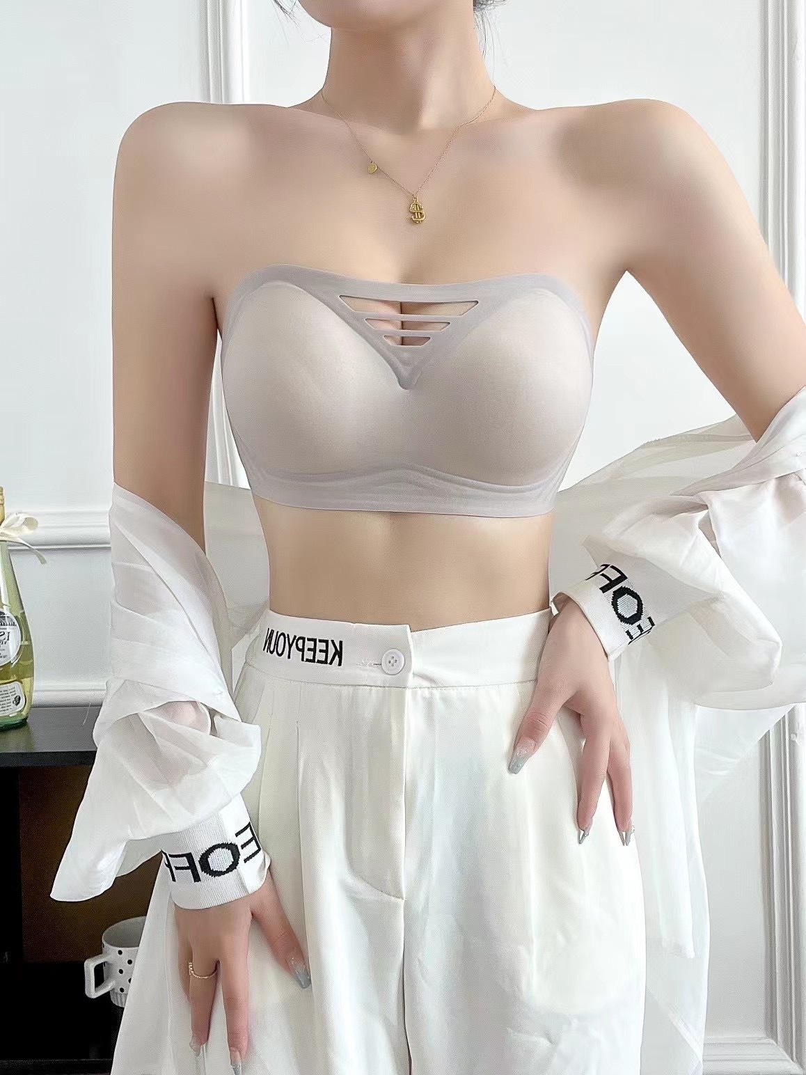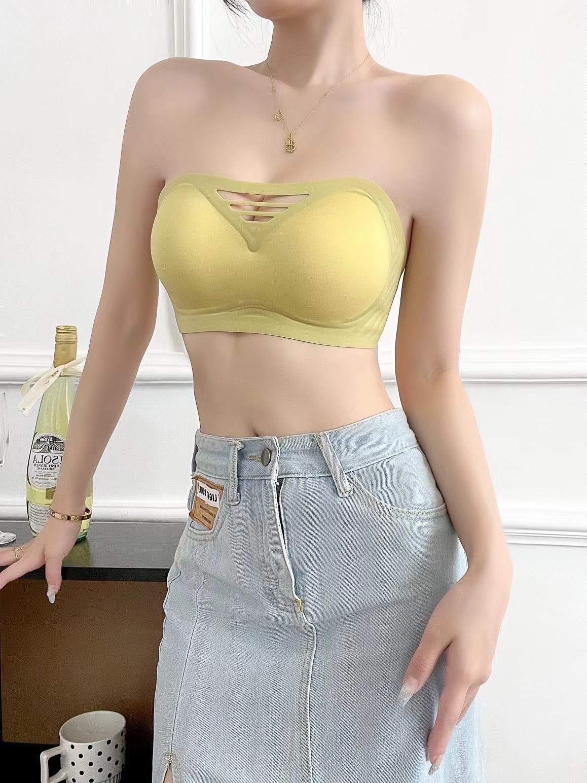 Ropa interior de tubo sin tirantes antideslizante de gelatina hueca