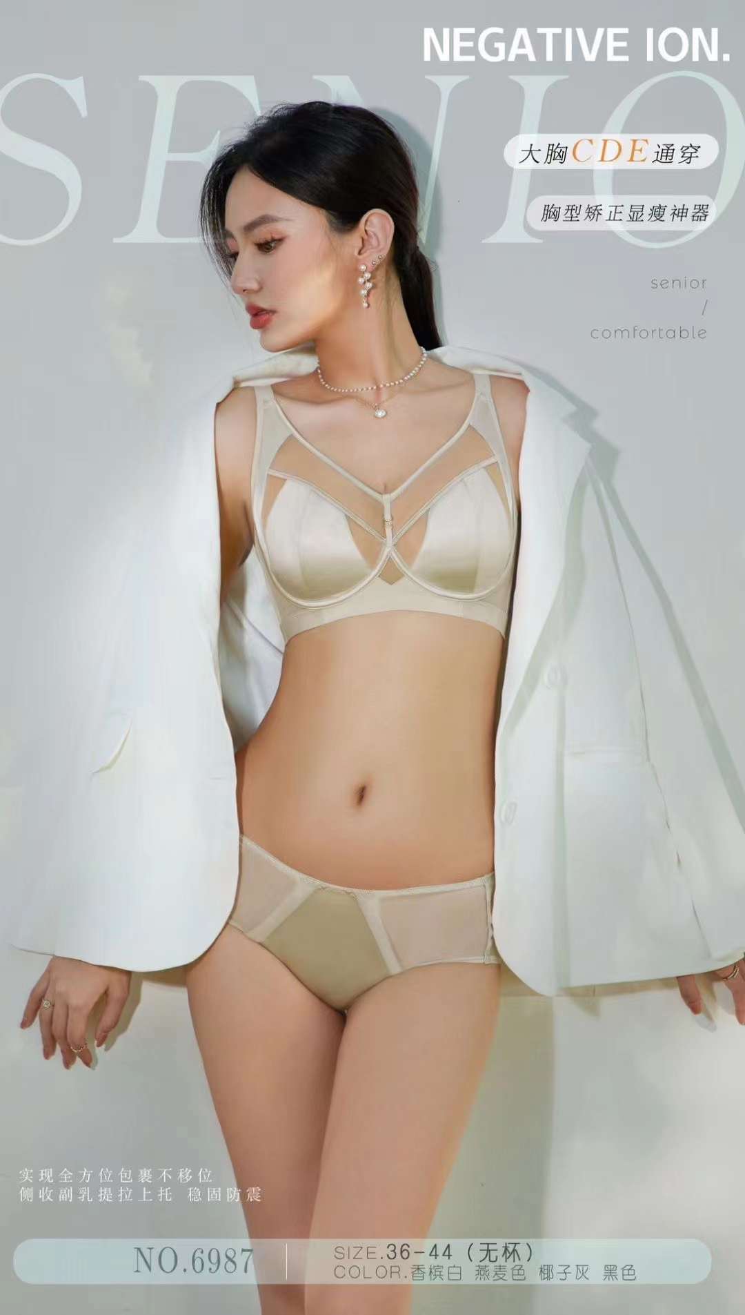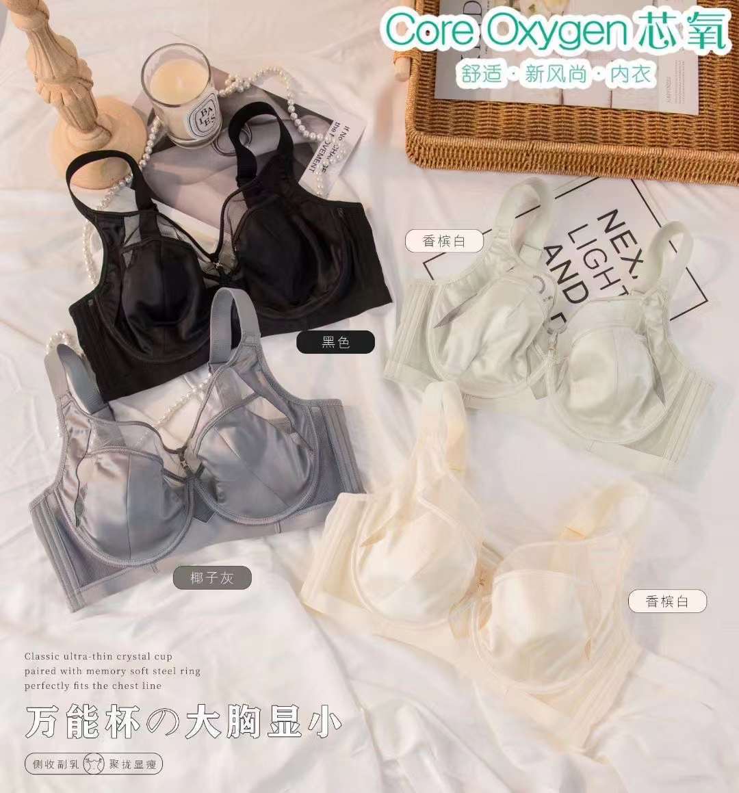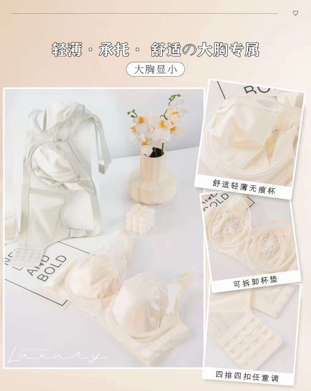 6987 ropa interior de copa universal de pecho grande de satén de lujo ligero, anillo de acero suave, colección de leche auxiliar, sujetador fino ajustable antiflacidez