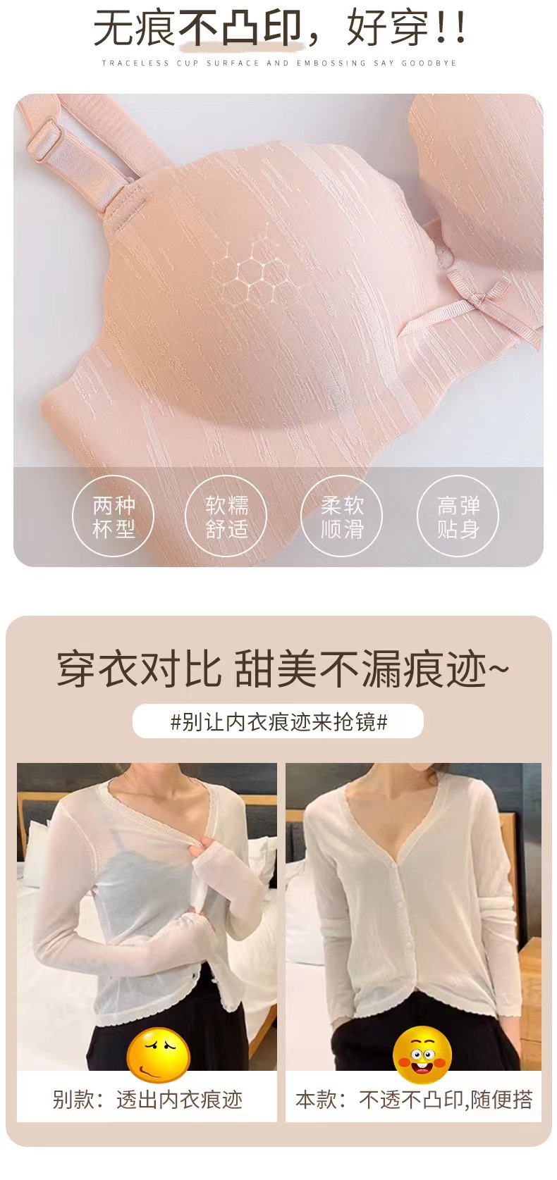 Sin costuras, cómodo y transpirable, colección lateral tridimensional, soporte superior, antideslizante, leche auxiliar, ropa interior anti-flacidez, sujetador de texto para niña, pequeño