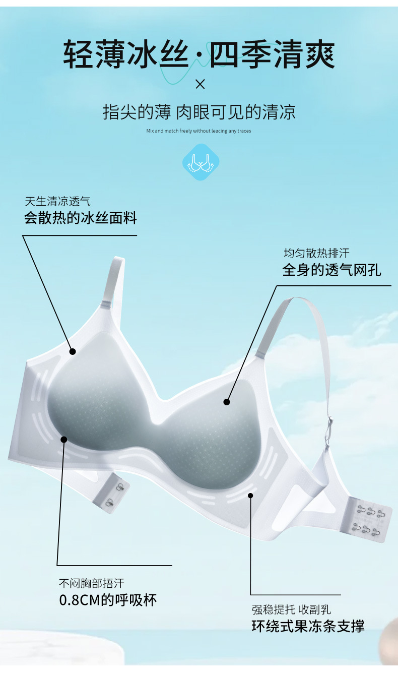 Belleza de verano, ropa interior delgada que no deja marcas, pecho grande, pequeño, sin anillo de acero, hebilla de pecho trasera, sujetador antiflacidez
