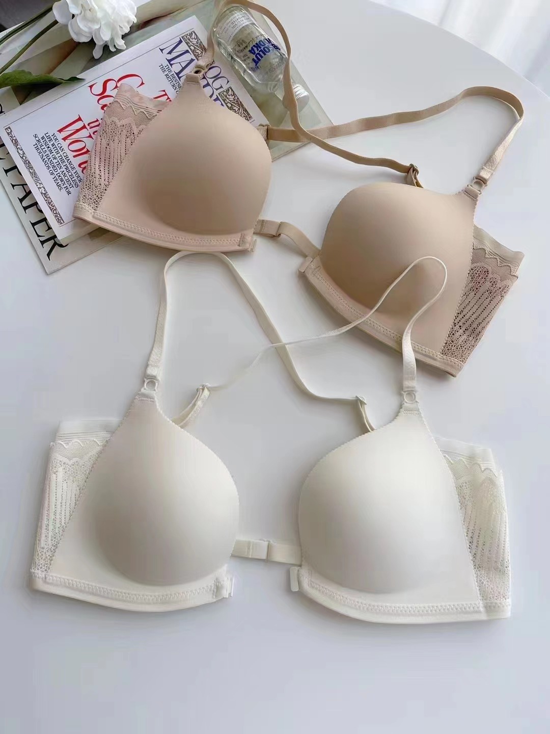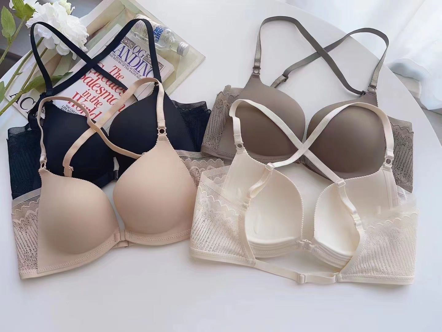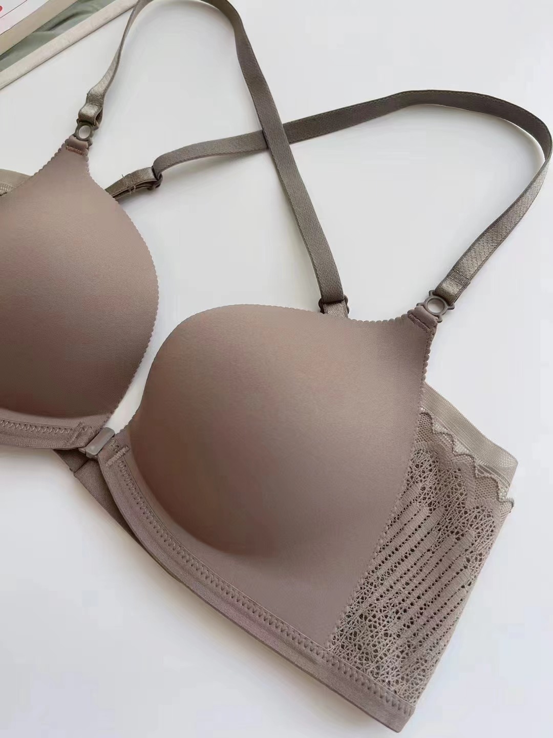 167 hebilla delantera con estampado de leopardo sexy sin anillo de acero hermosa espalda cruzada ropa interior pequeña de pecho recogido sujetador simple anti-caída