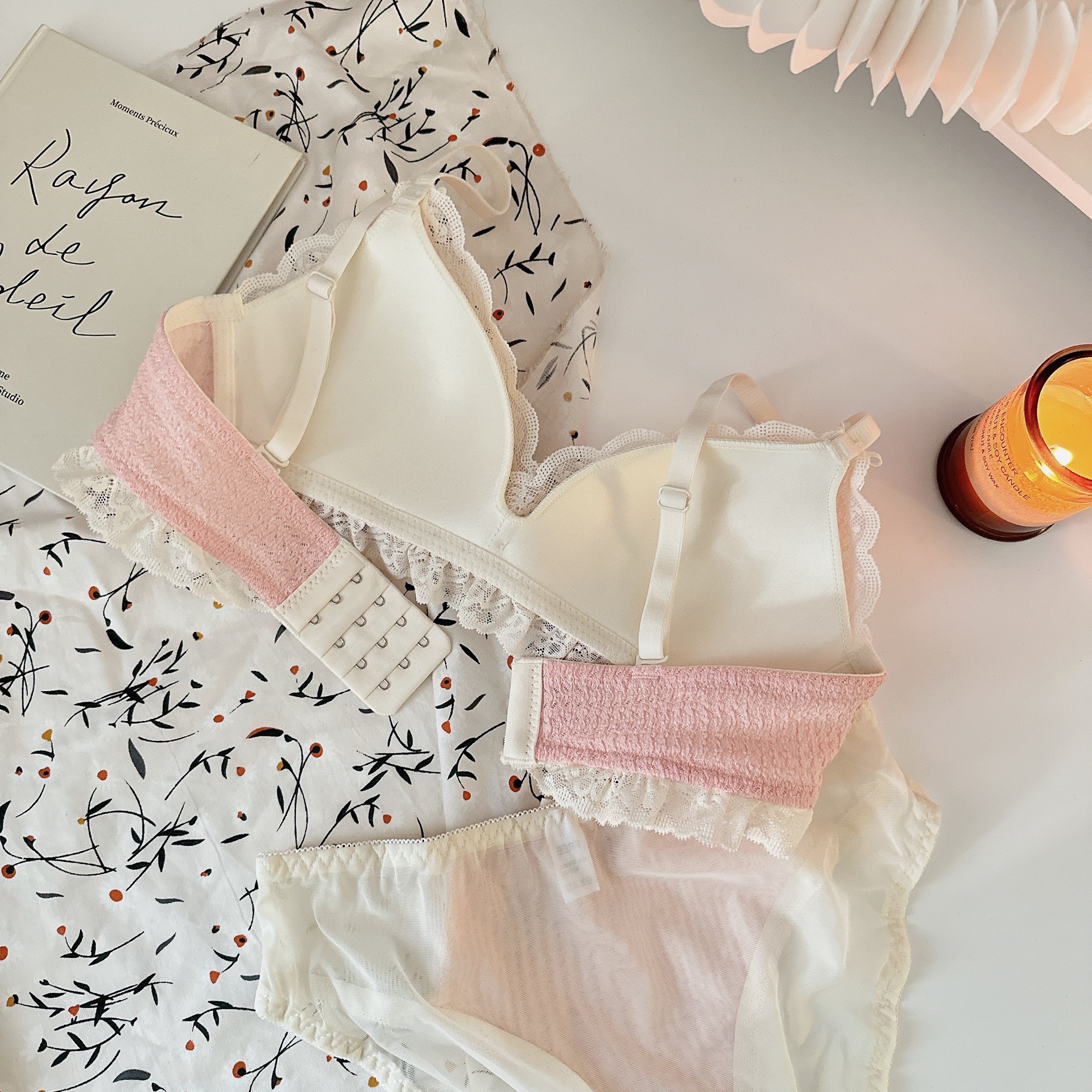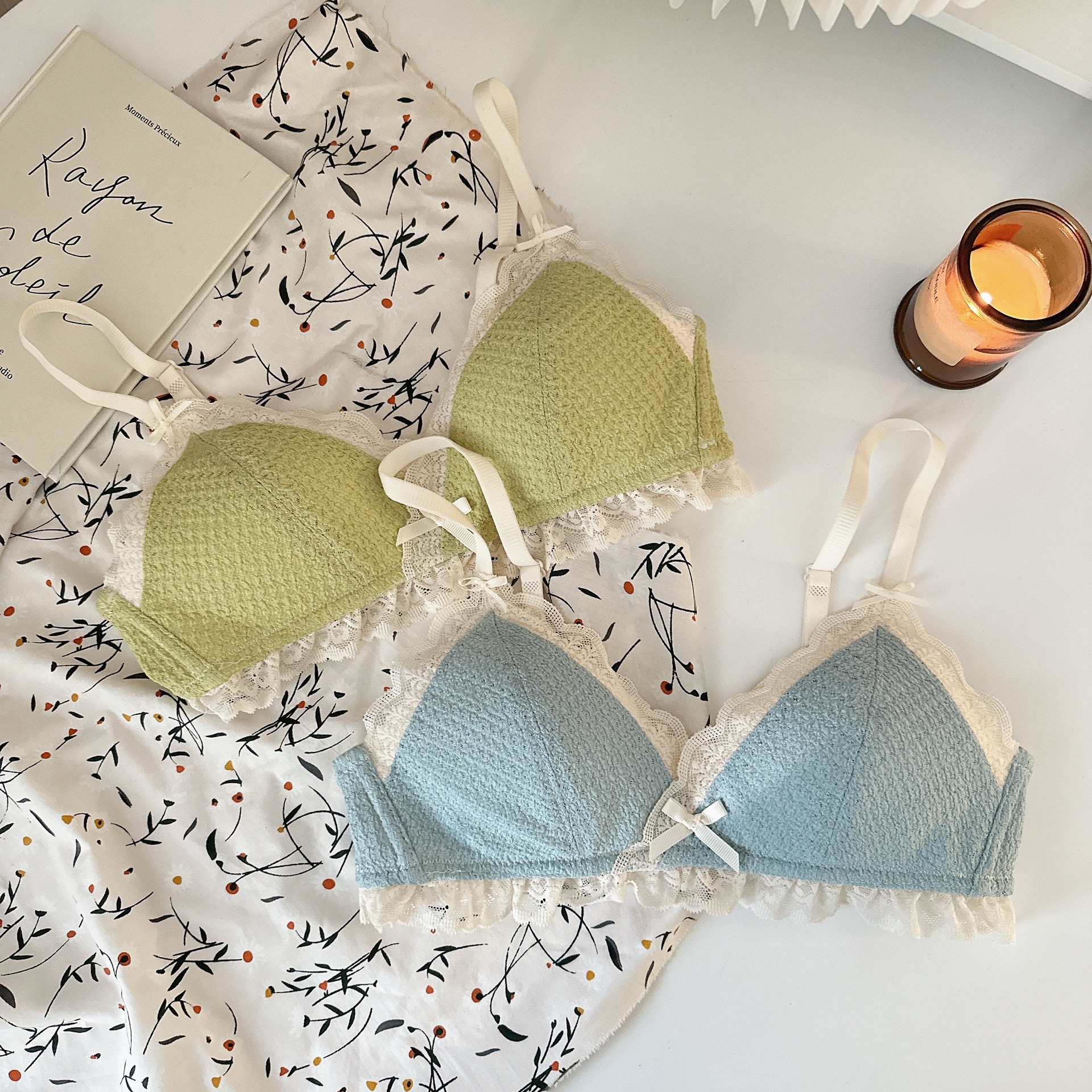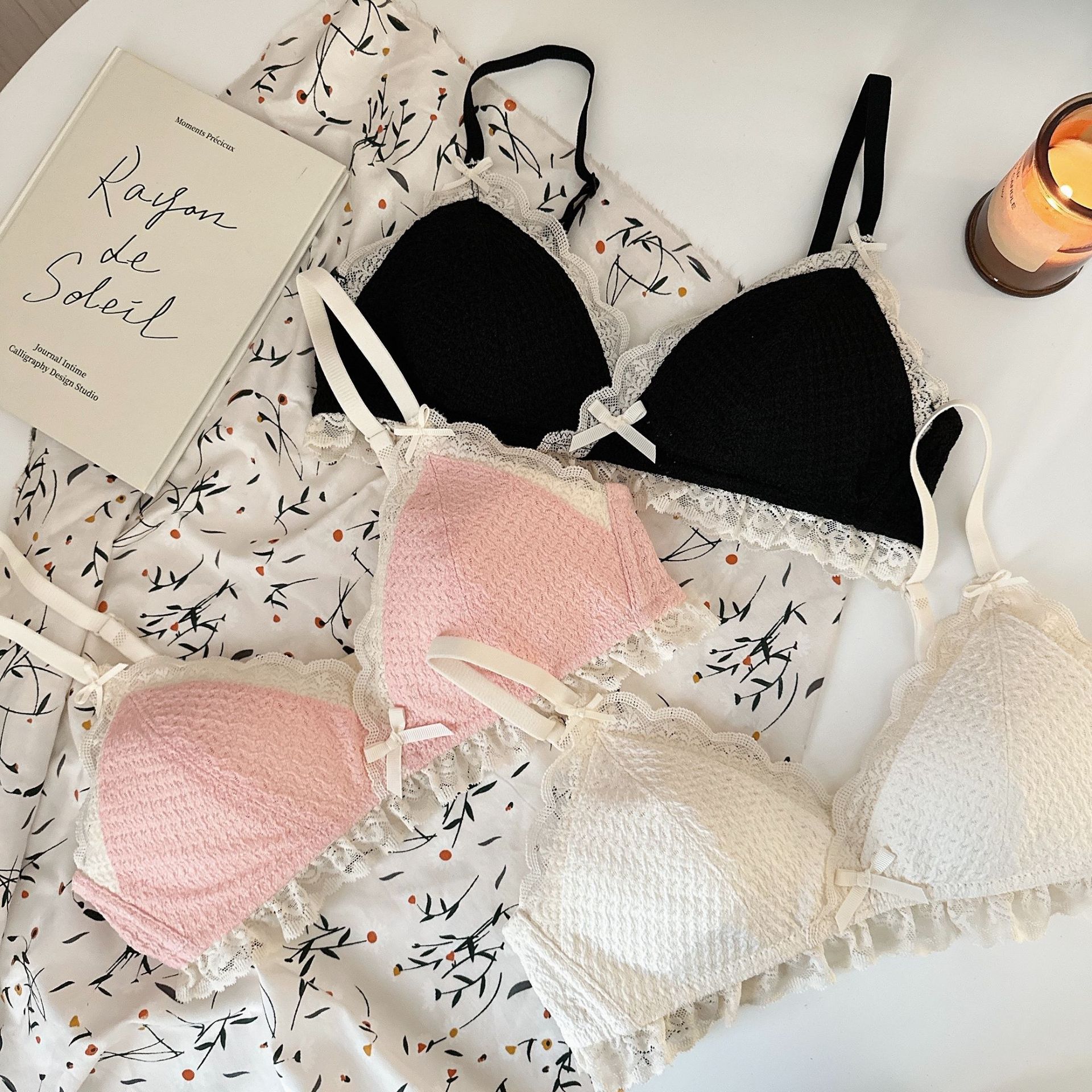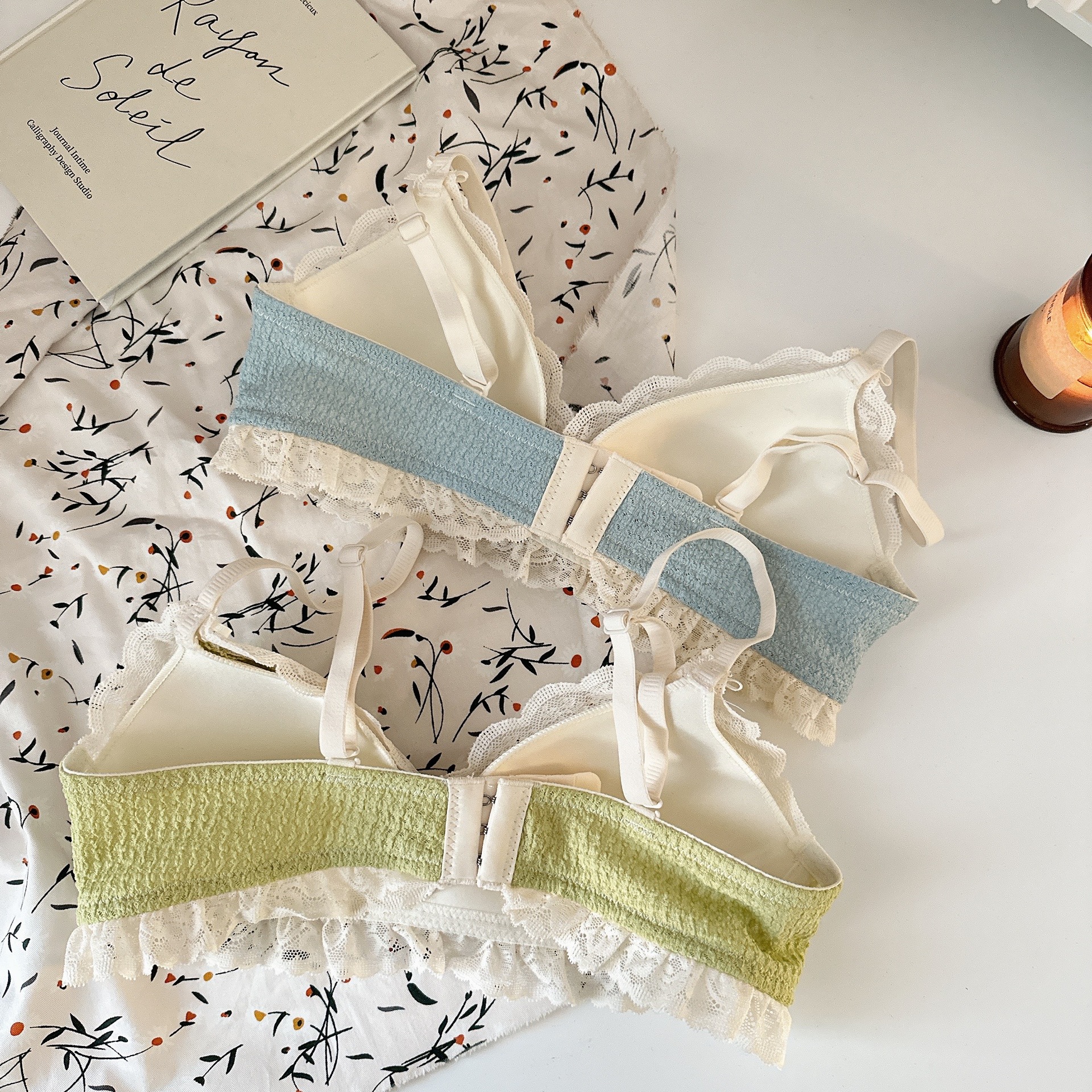 Ropa interior femenina de copa triangular francesa sin anillo de acero sujetador de recolección lateral alto estilo delgado cómodo y transpirable sin costuras