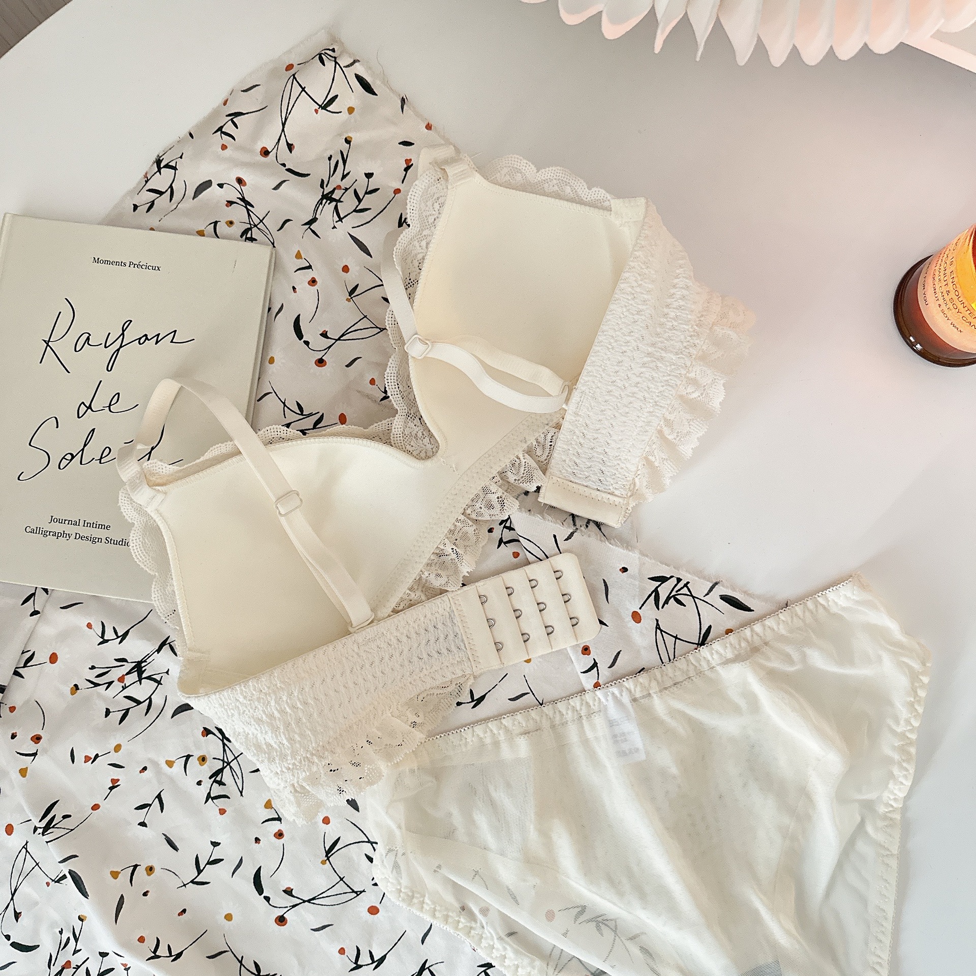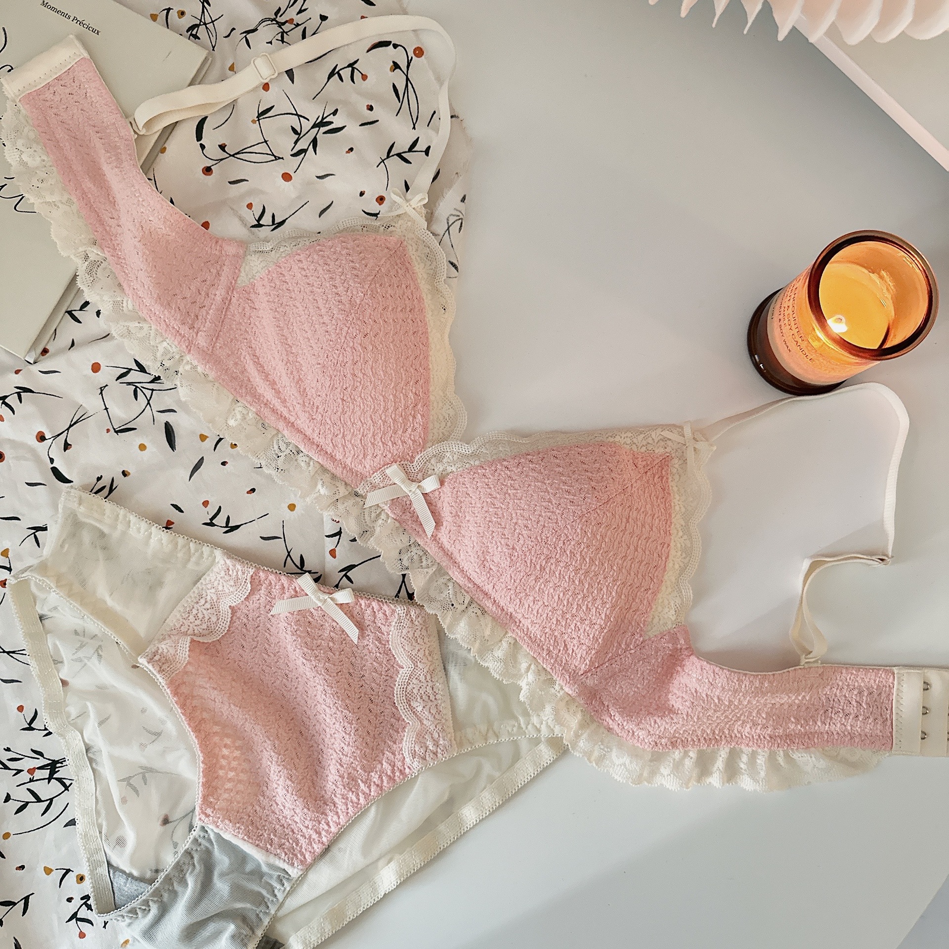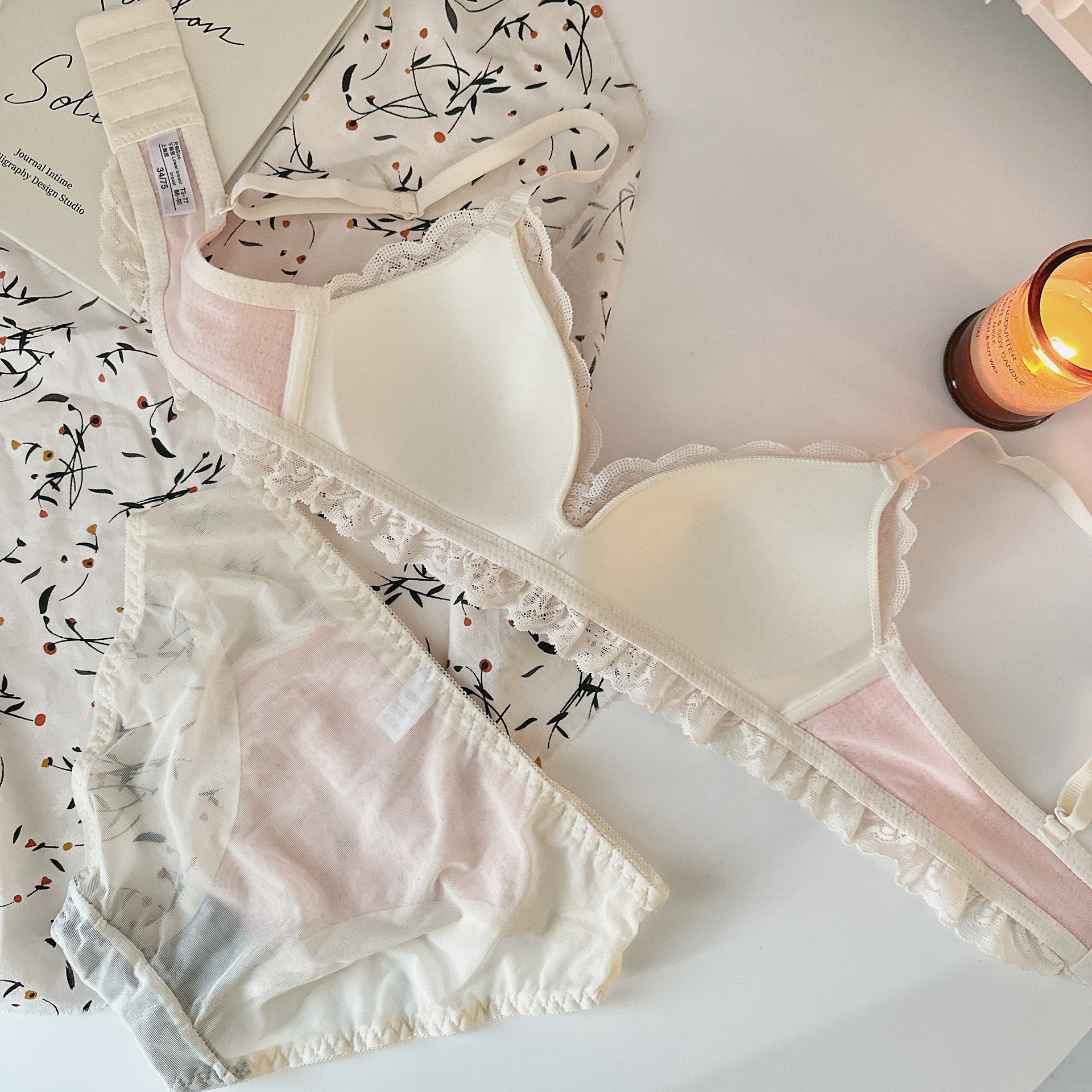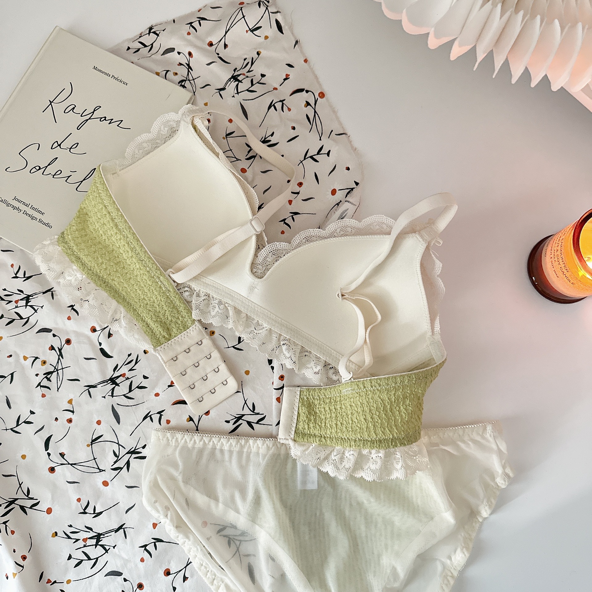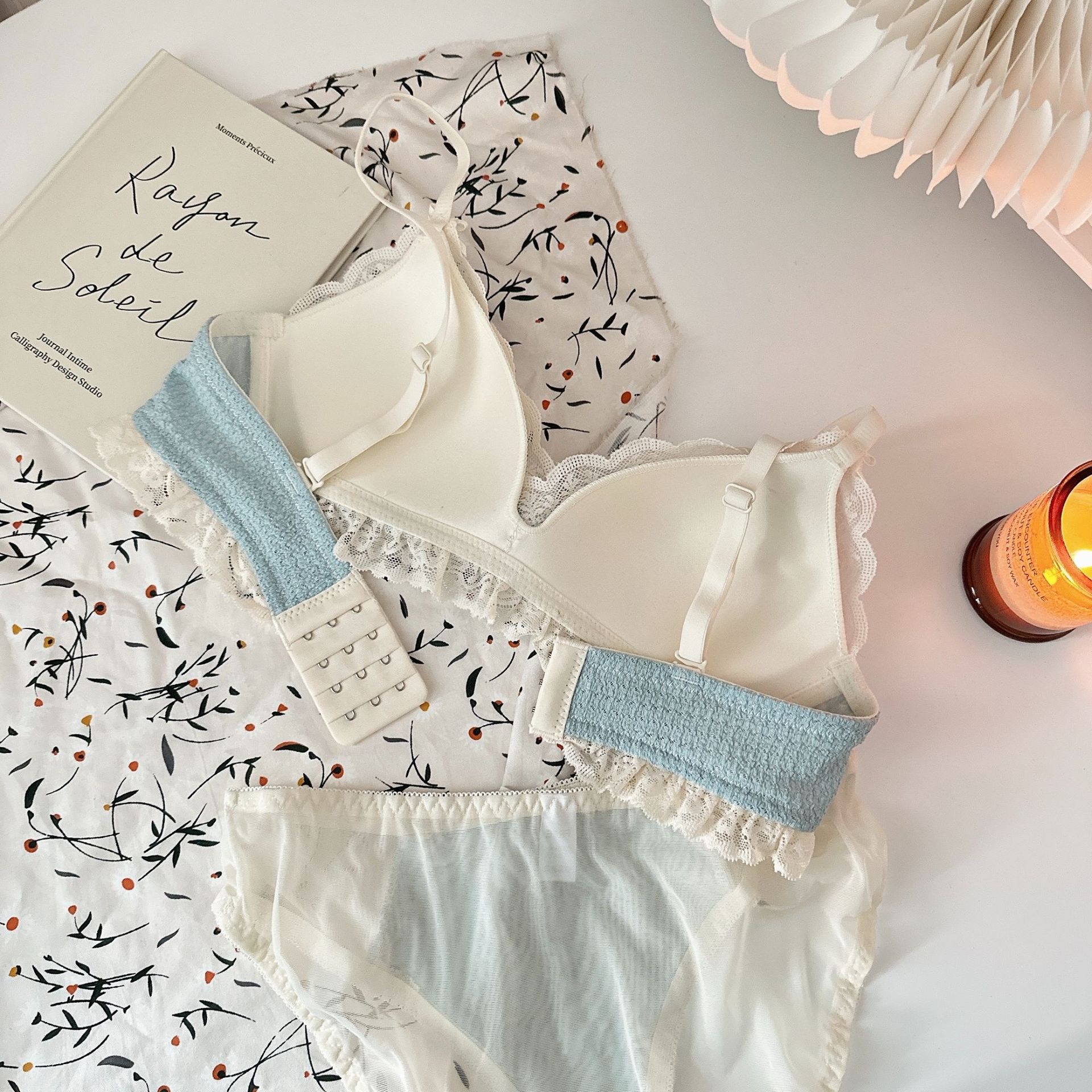 Ropa interior femenina de copa triangular francesa sin anillo de acero sujetador de recolección lateral alto estilo delgado cómodo y transpirable sin costuras