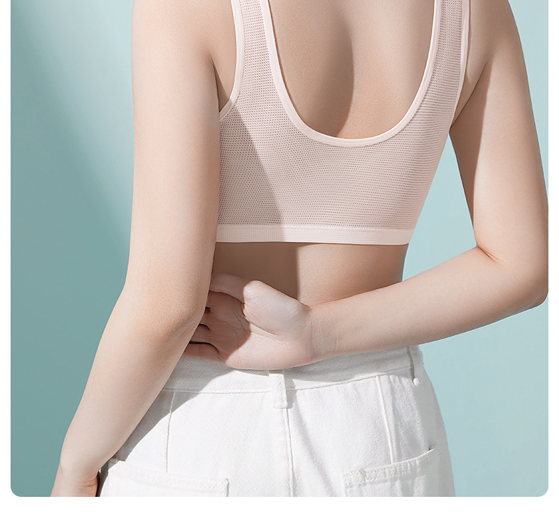 Ropa interior de madre sujetador con hebilla delantera femenina verano delgado sin anillo de acero sujetador de seda de hielo estilo chaleco para mujeres de mediana edad y ancianos