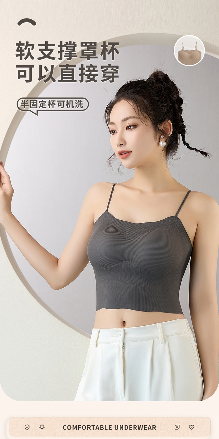 Nueva camisola de seda de hielo delgada base interior de las mujeres desgaste exterior tubo superior anti-exposición belleza espalda superior