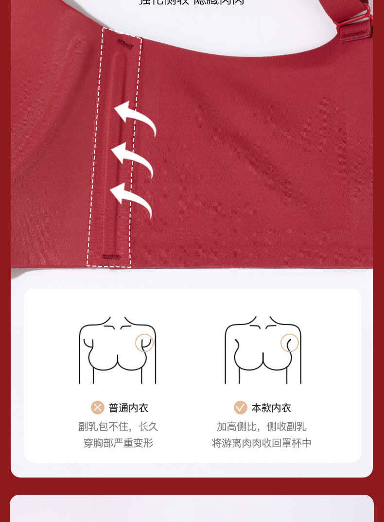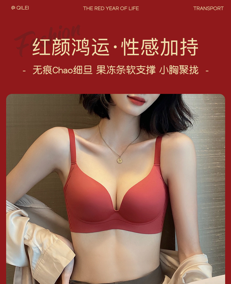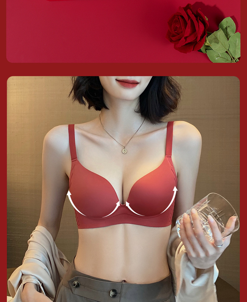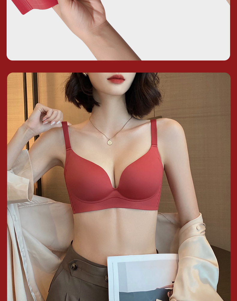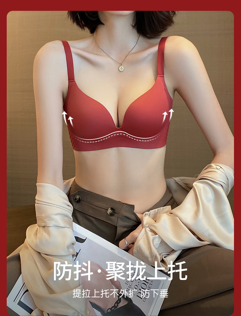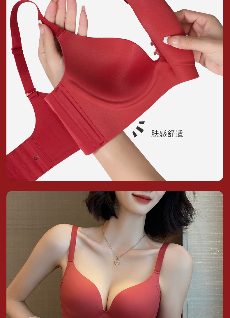 Ropa interior sin costuras Pecho pequeño de las mujeres empuja hacia arriba el anillo de acero grande pecho contrayendo anti-flacidez año de nacimiento sujetador de boda rojo
