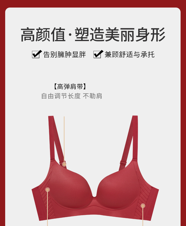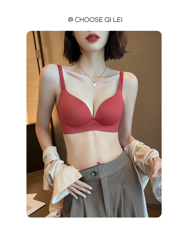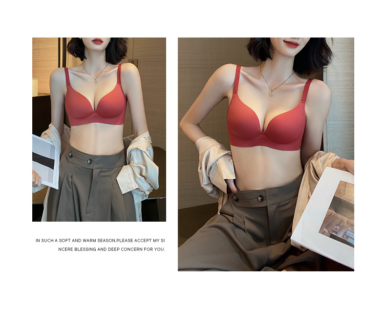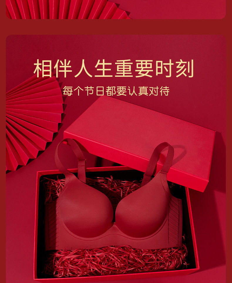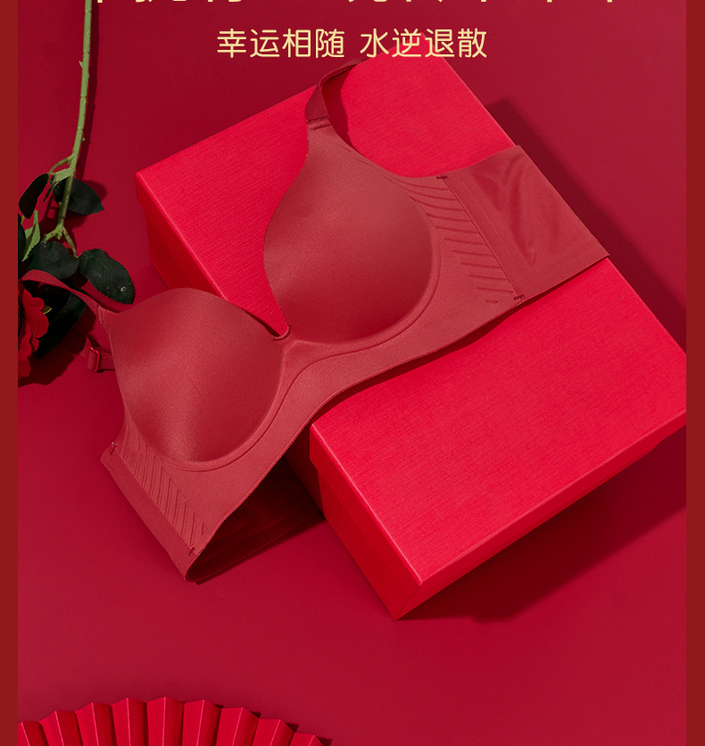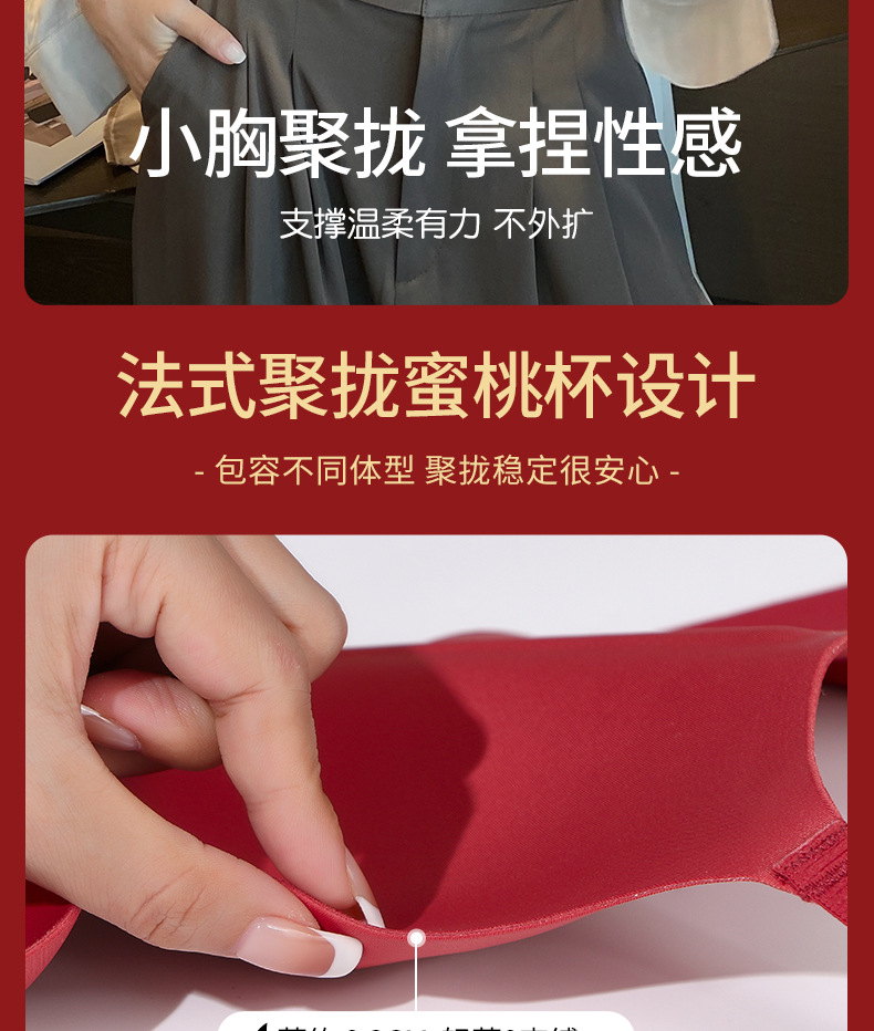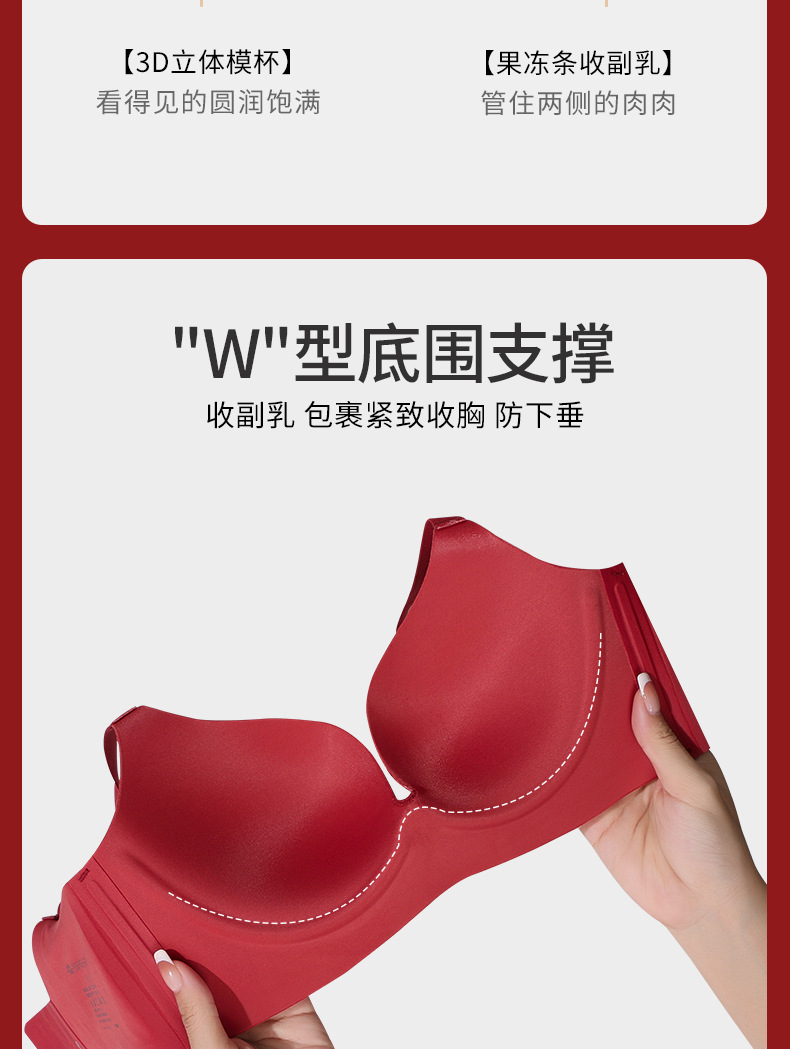 Ropa interior sin costuras Pecho pequeño de las mujeres empuja hacia arriba el anillo de acero grande pecho contrayendo anti-flacidez año de nacimiento sujetador de boda rojo