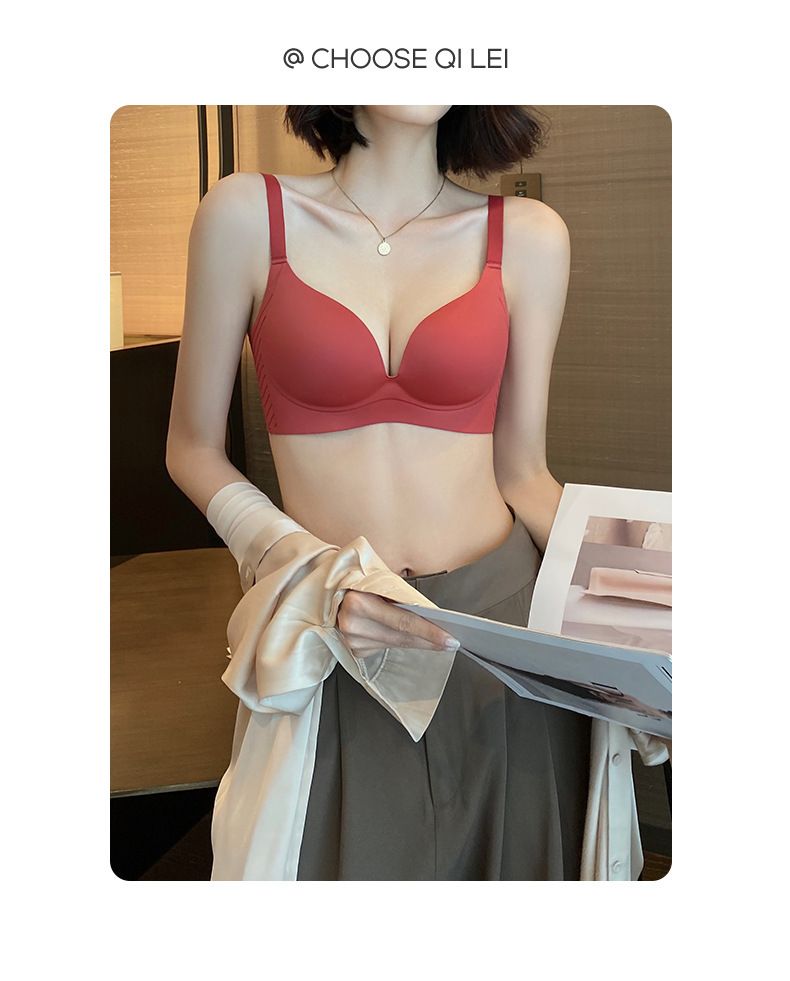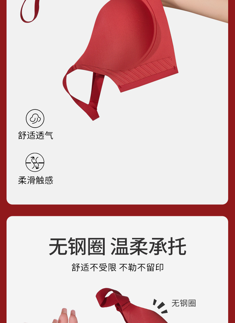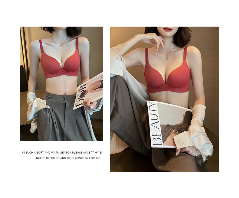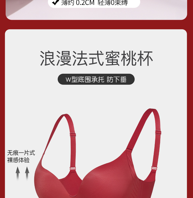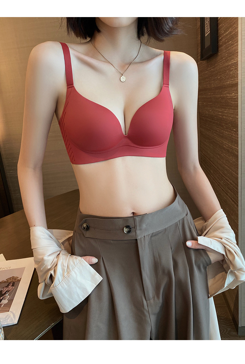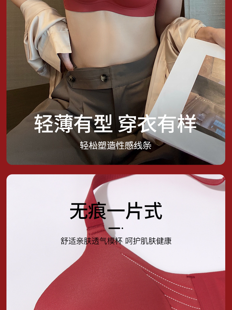 Ropa interior sin costuras Pecho pequeño de las mujeres empuja hacia arriba el anillo de acero grande pecho contrayendo anti-flacidez año de nacimiento sujetador de boda rojo