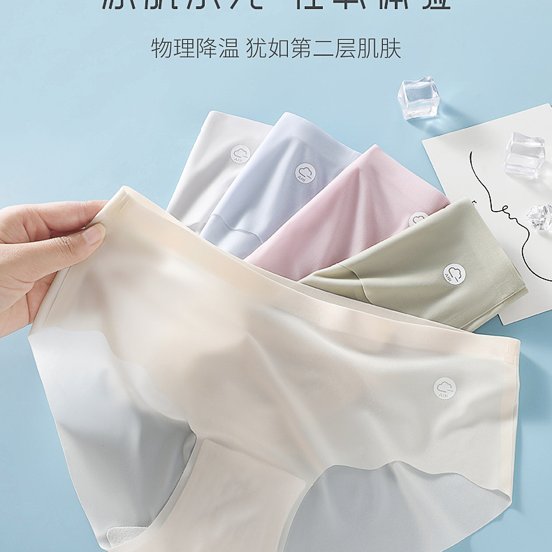 Ropa interior de seda de hielo de algodón para mujer entrepierna de cintura media sexy triángulo pantalones cortos cabeza verano delgada ropa interior sin costuras mujeres