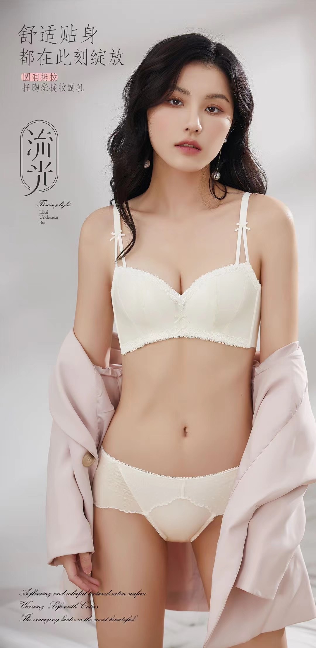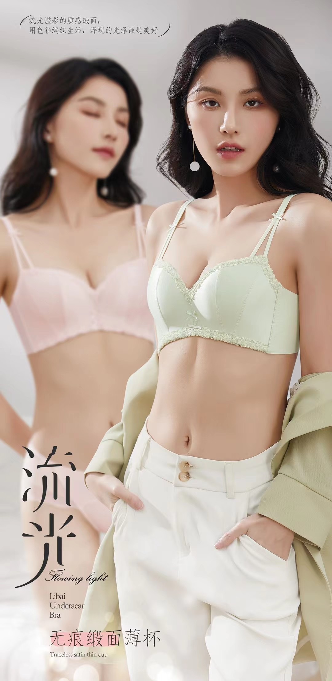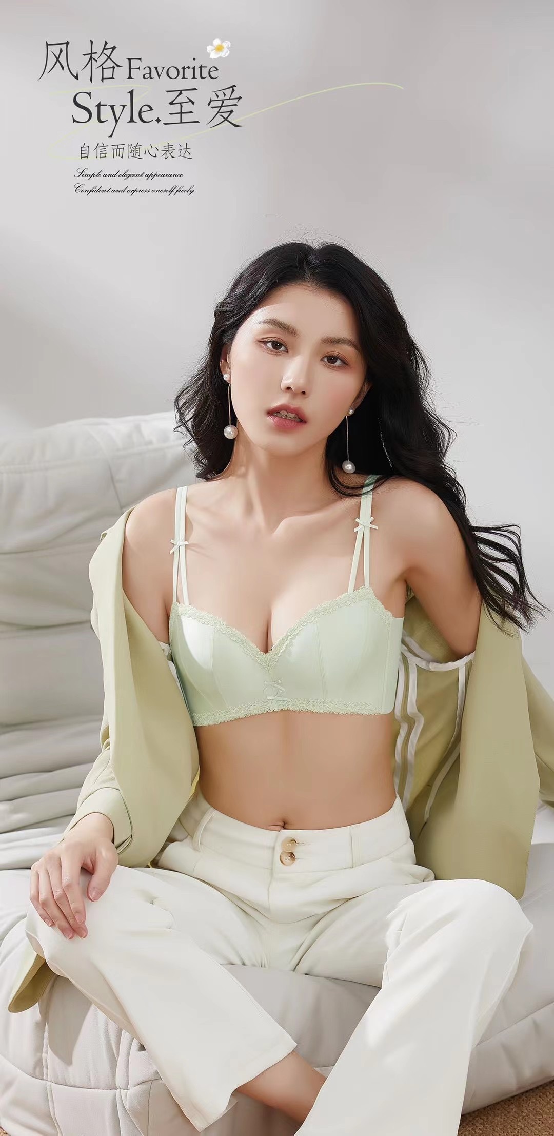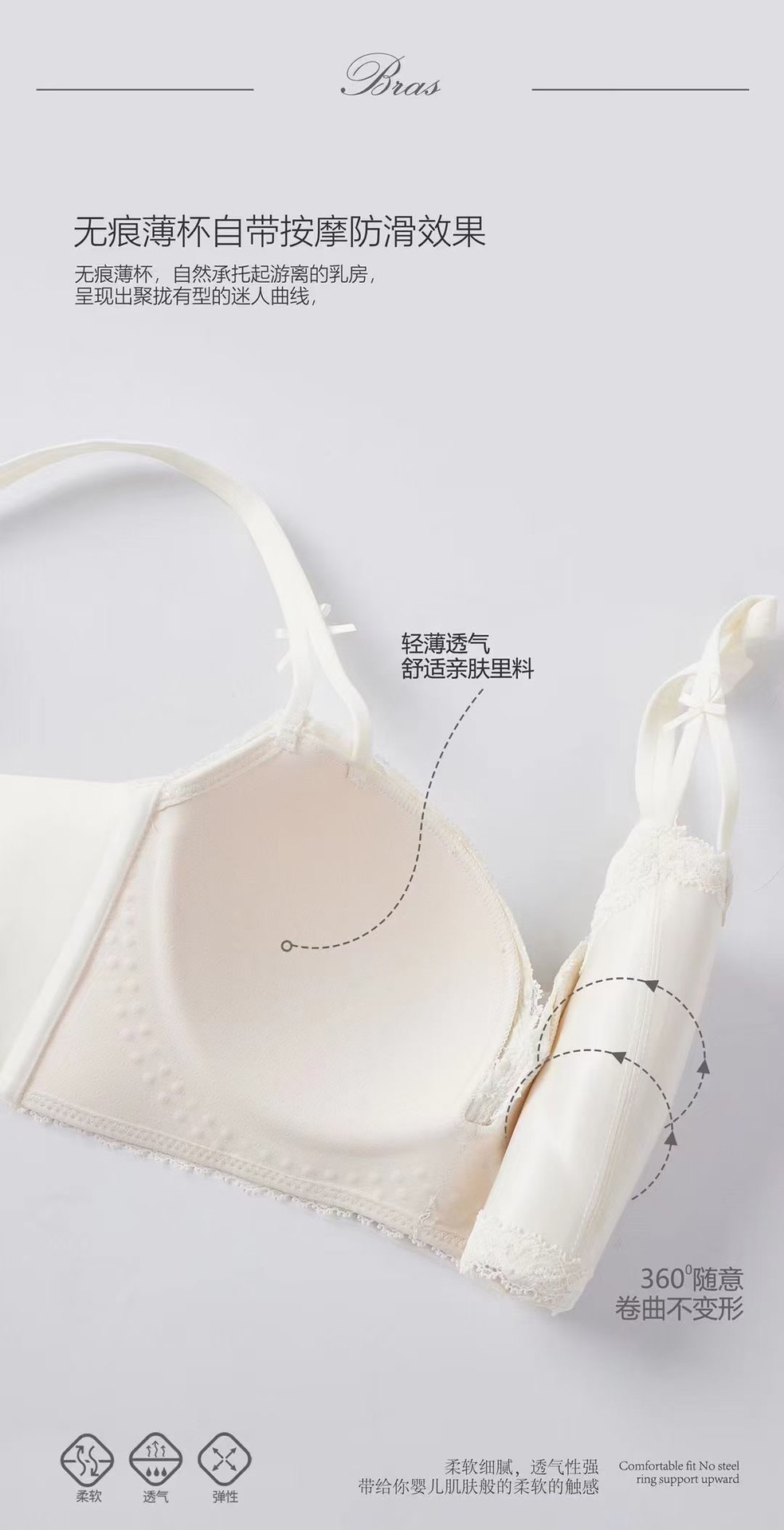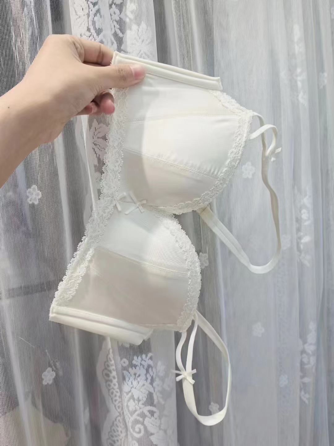 8076 Estilo dulce y puro satén sin anillo de acero, pechos pequeños, ropa interior de recolección, soporte superior, sujetador de ajuste cómodo y transpirable