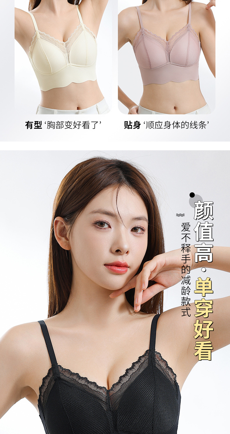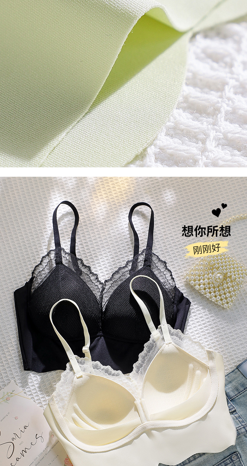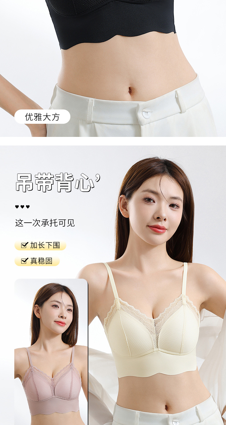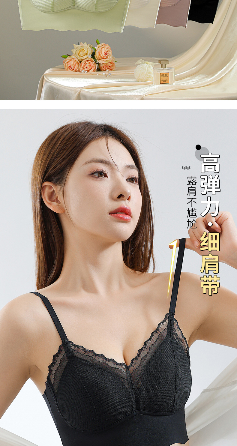 Ropa interior de tubo con tirantes de espalda sin costuras de encaje francés, pecho pequeño para mujer, copa fija, sujetador de chaleco sin anillo de acero