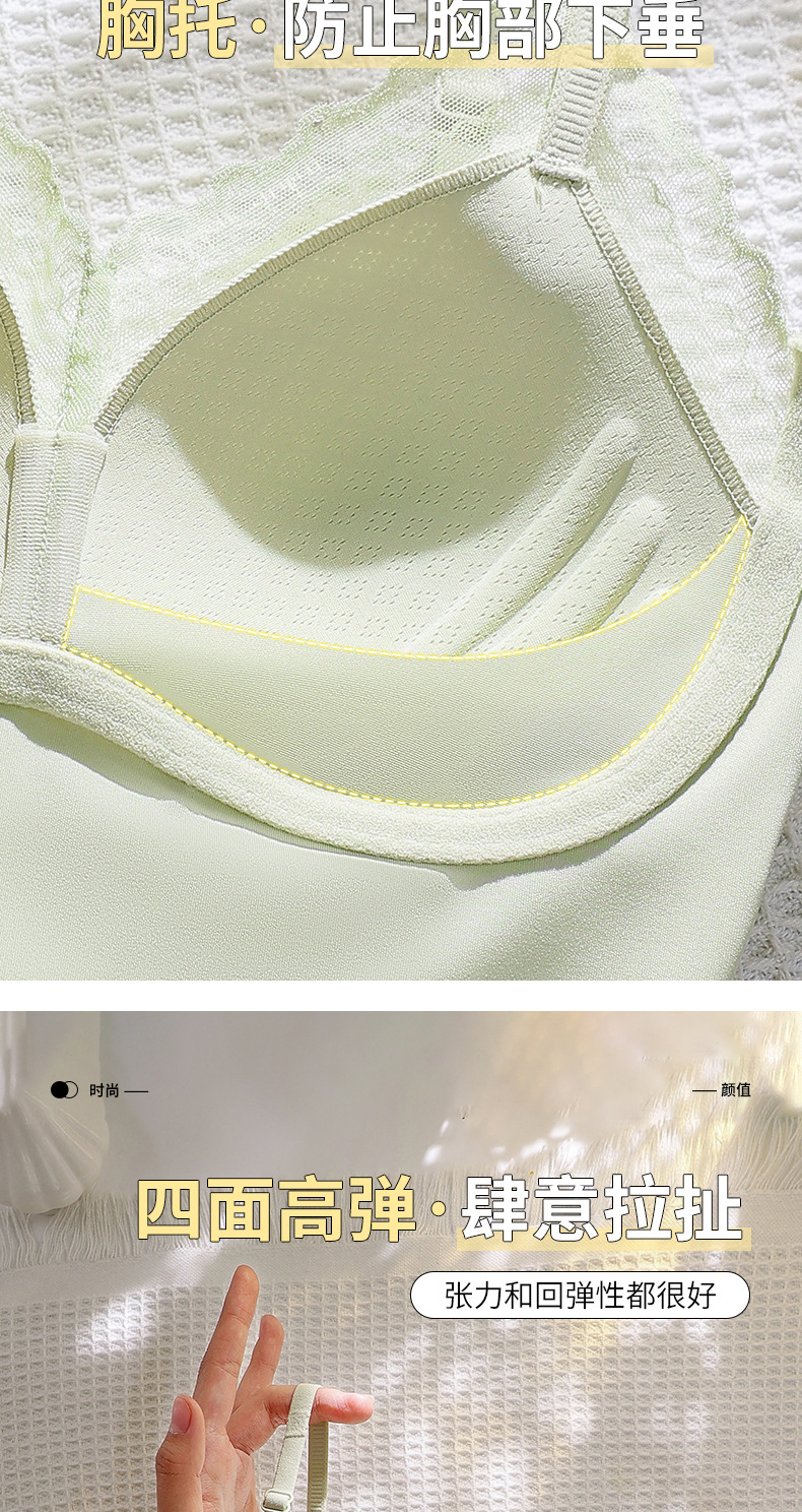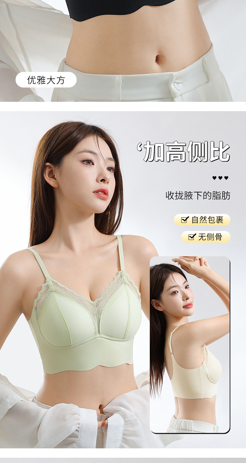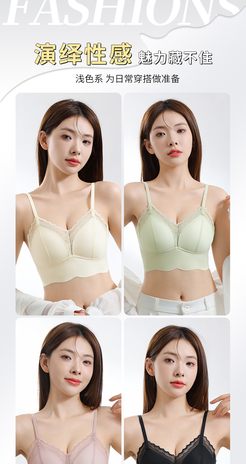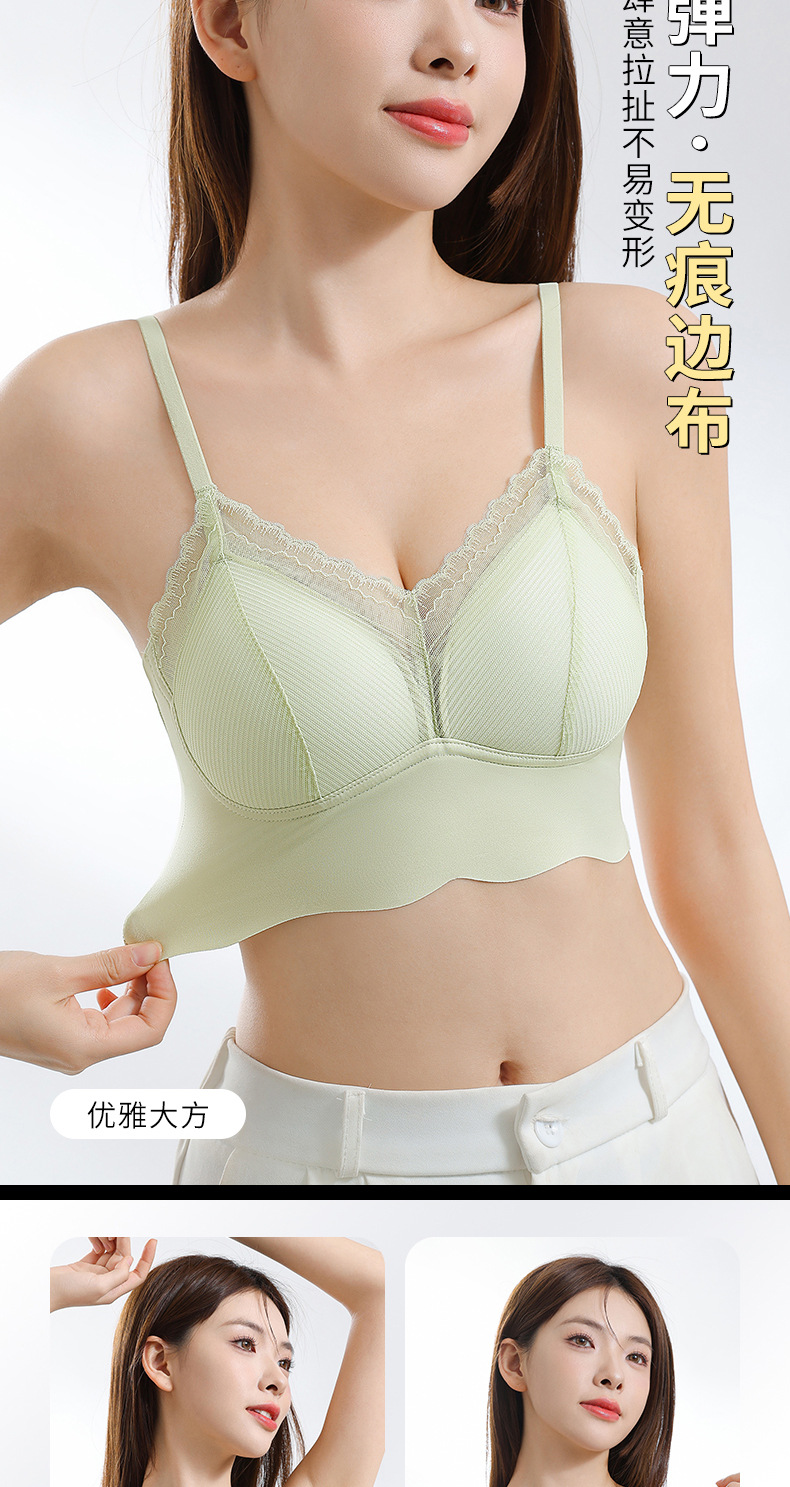 Ropa interior de tubo con tirantes de espalda sin costuras de encaje francés, pecho pequeño para mujer, copa fija, sujetador de chaleco sin anillo de acero