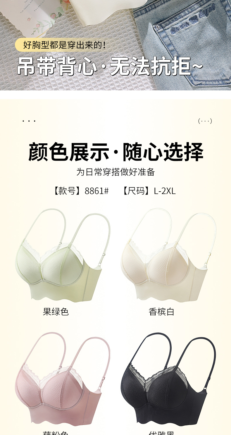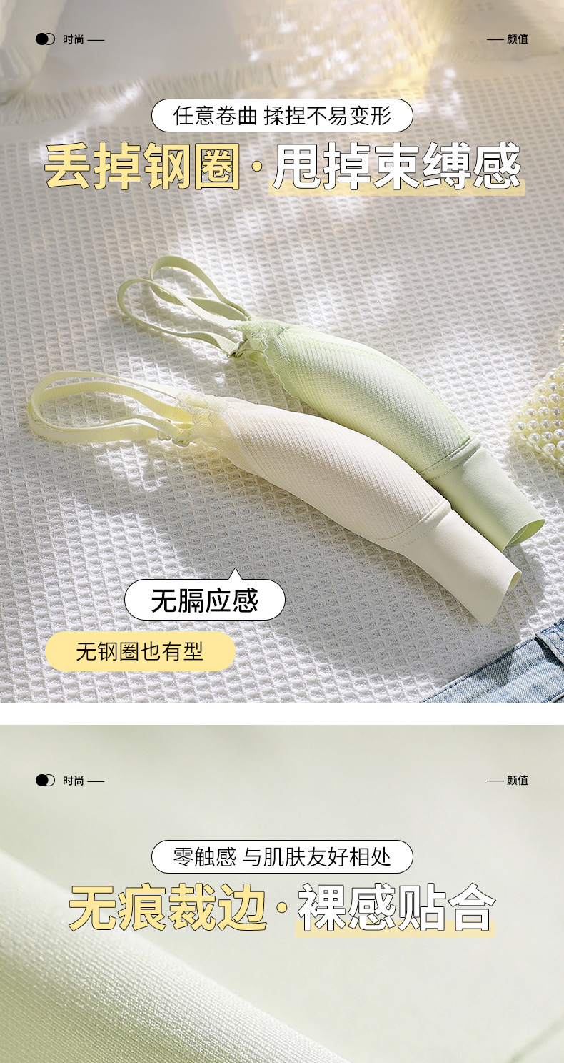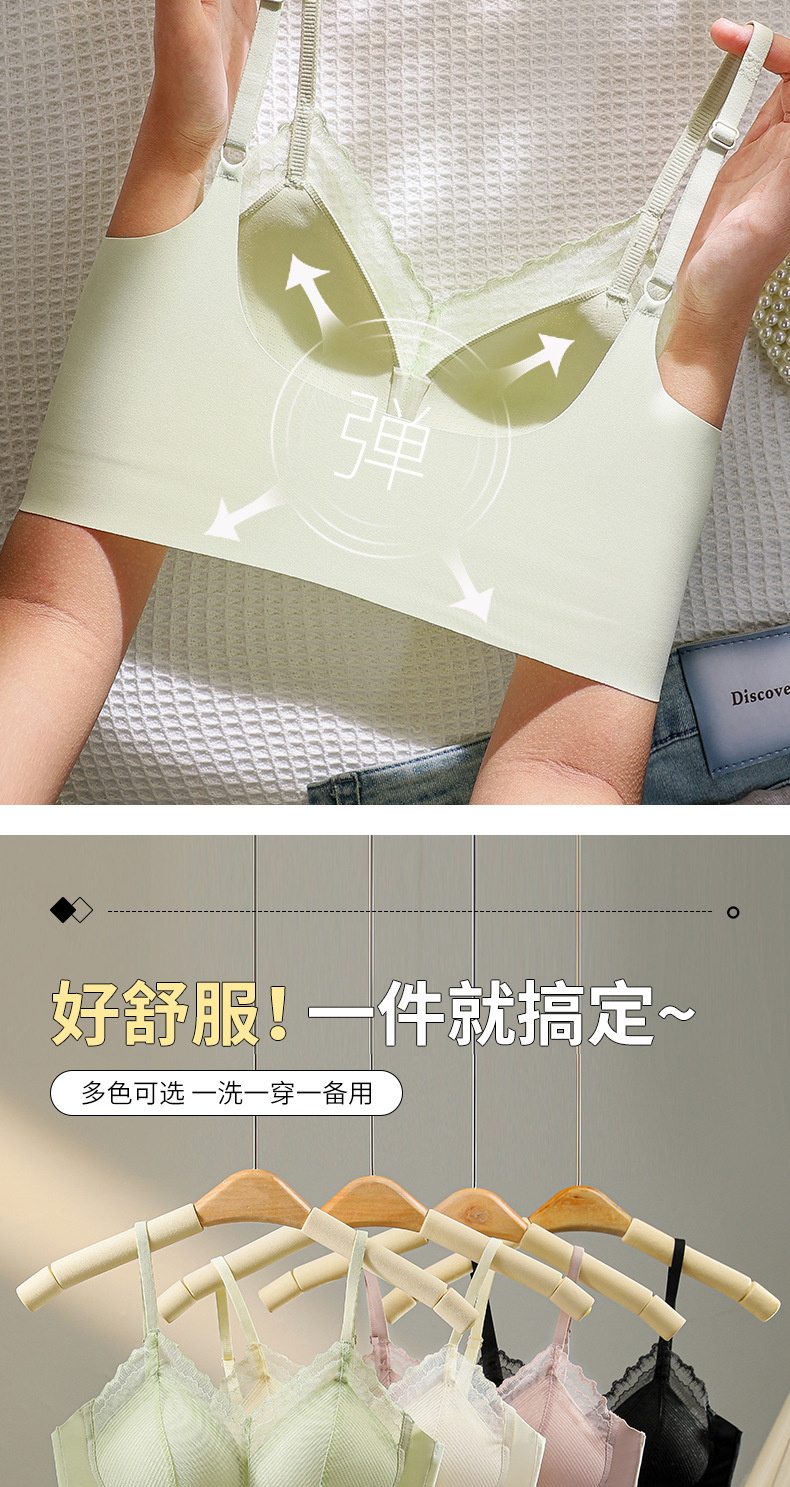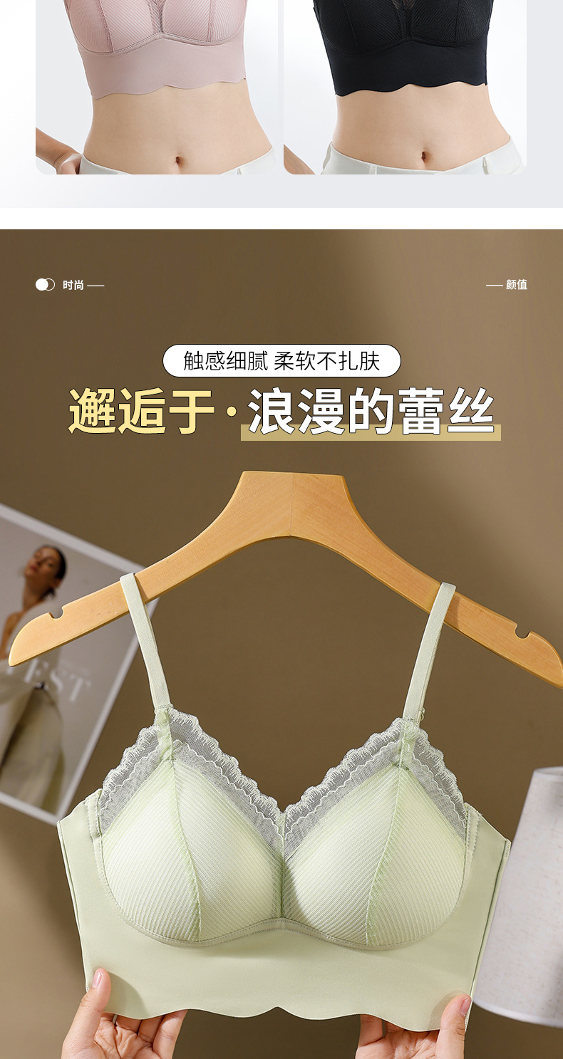 Ropa interior de tubo con tirantes de espalda sin costuras de encaje francés, pecho pequeño para mujer, copa fija, sujetador de chaleco sin anillo de acero
