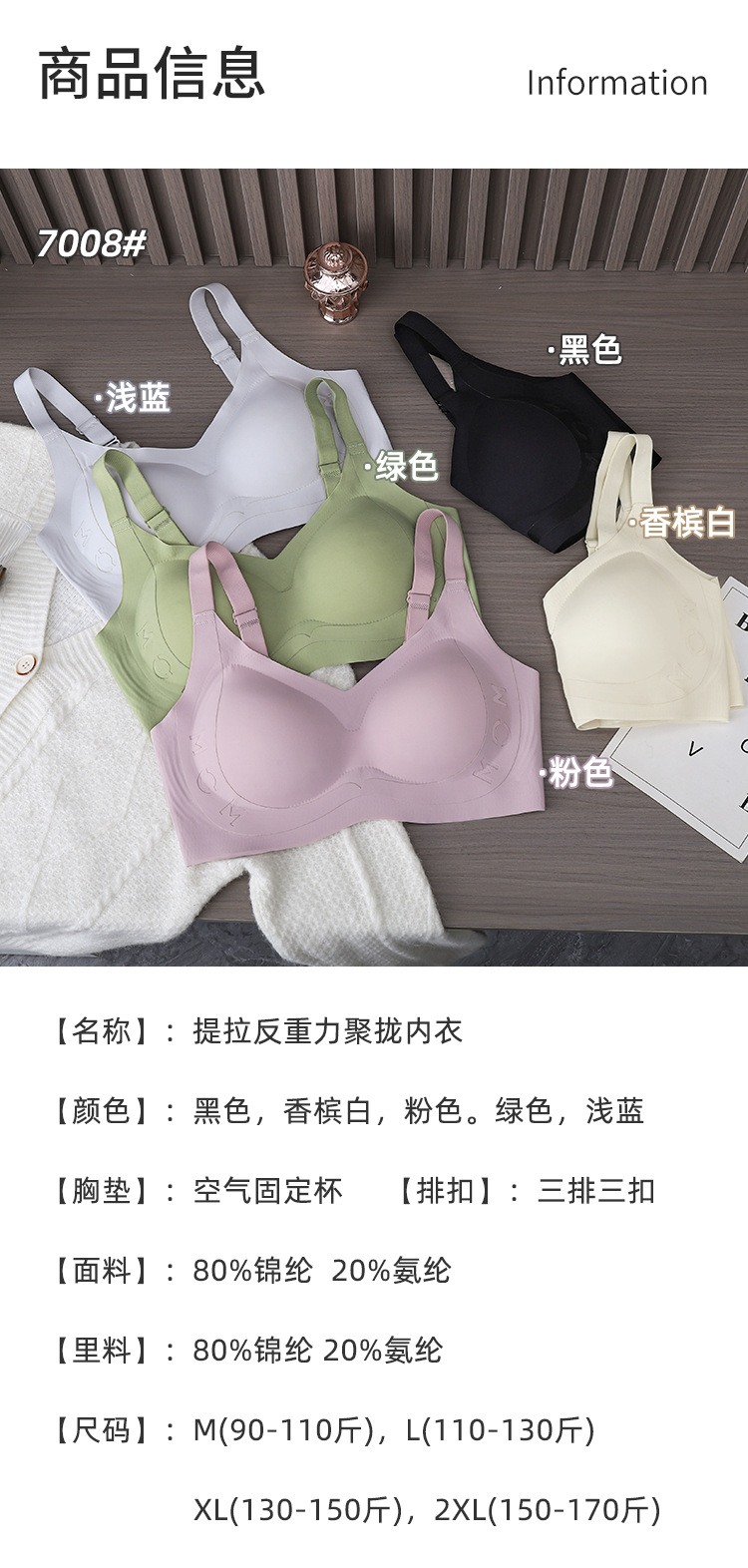 Ropa interior de espalda hermosa sin costuras, sujetador anti-caída de soporte suave, sujetador anti-caída sin anillo de acero, sujetador trasero de tres pechos