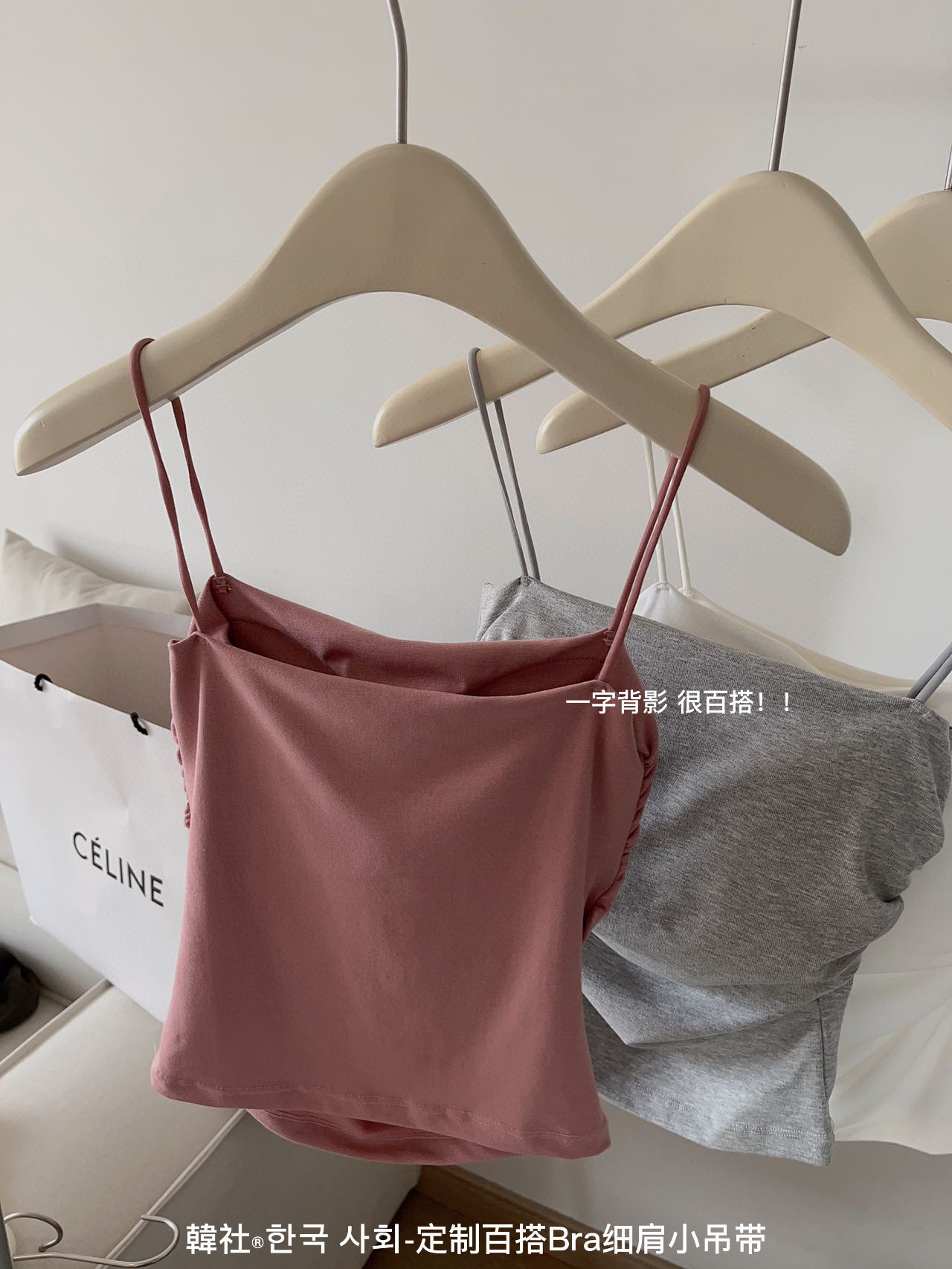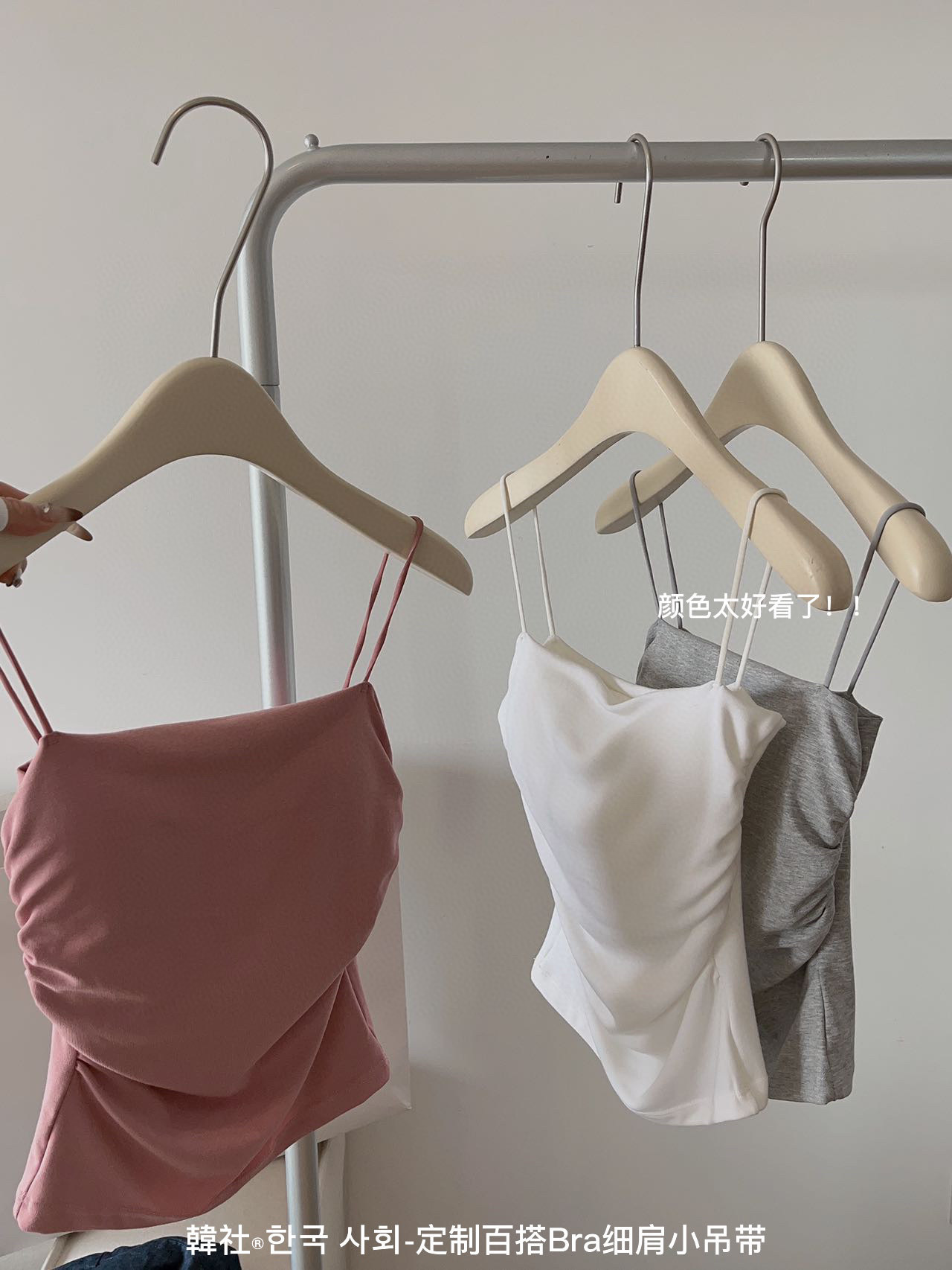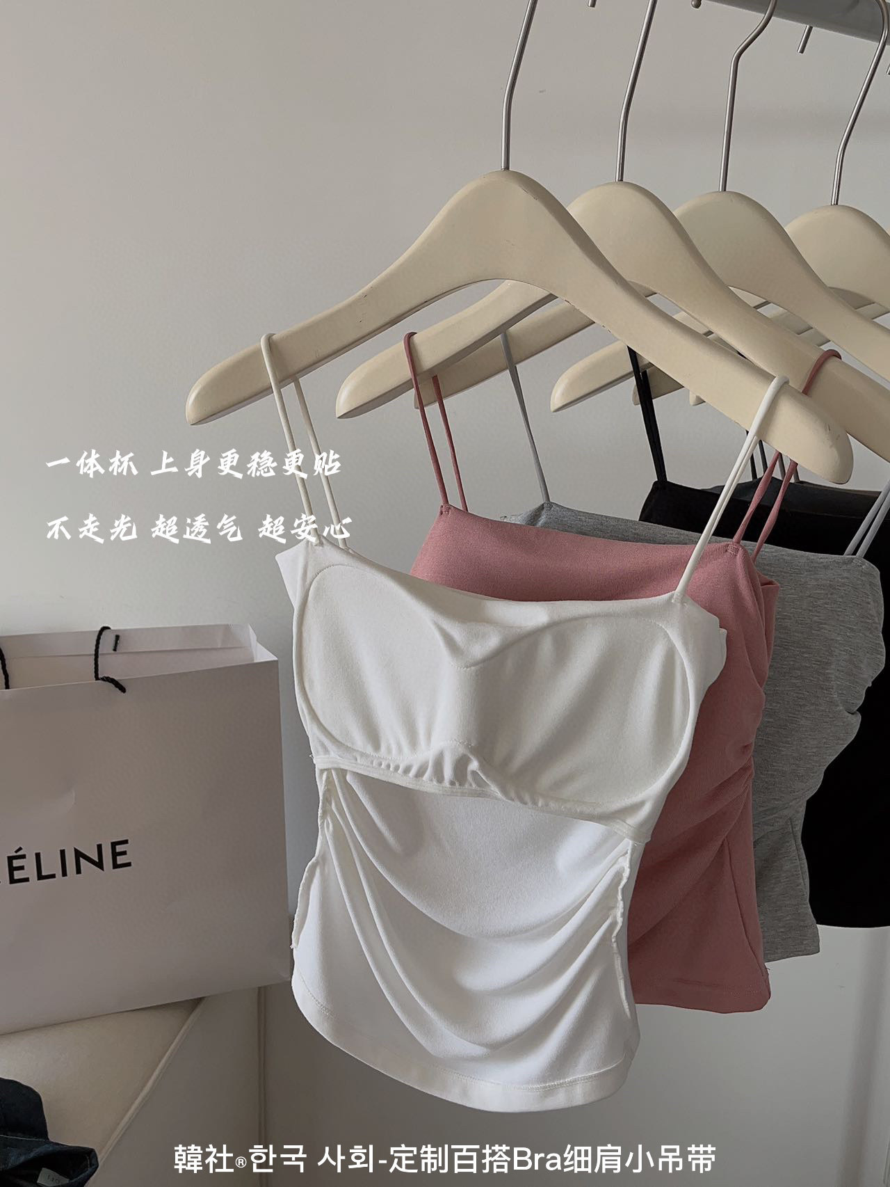 Belleza de primavera y verano, chaleco de tirantes para mujer, ropa interior y exterior con almohadilla para el pecho, ropa interior integrada, chaleco de fondo de color sólido de todo fósforo