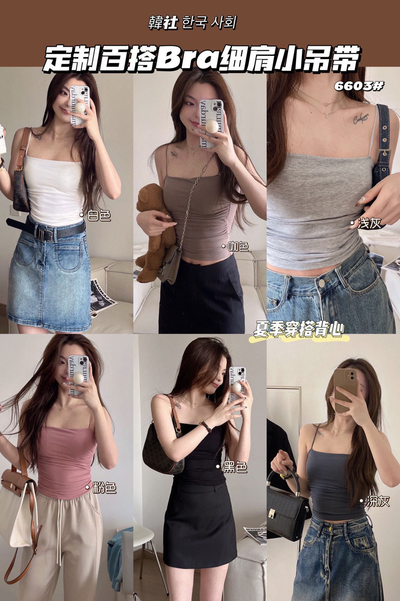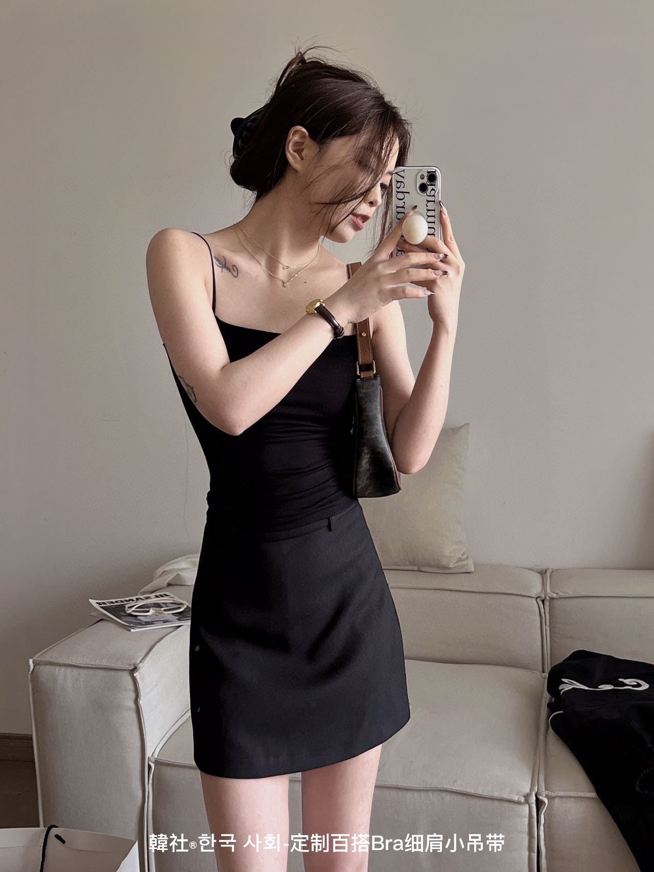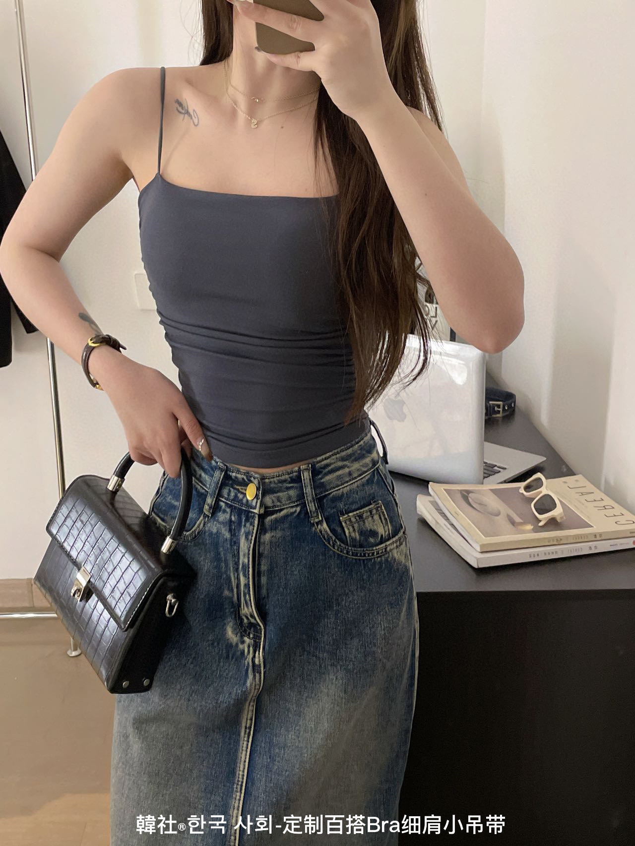 Belleza de primavera y verano, chaleco de tirantes para mujer, ropa interior y exterior con almohadilla para el pecho, ropa interior integrada, chaleco de fondo de color sólido de todo fósforo