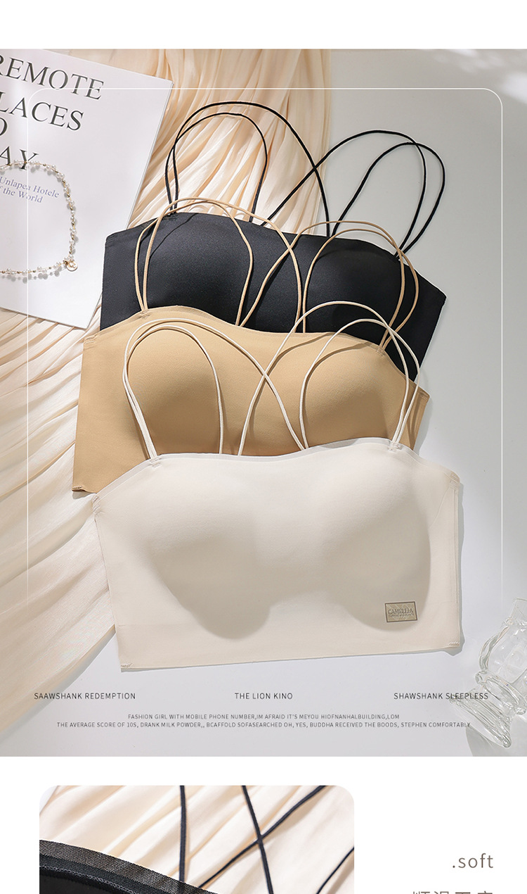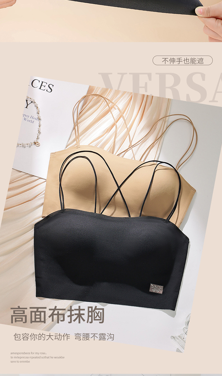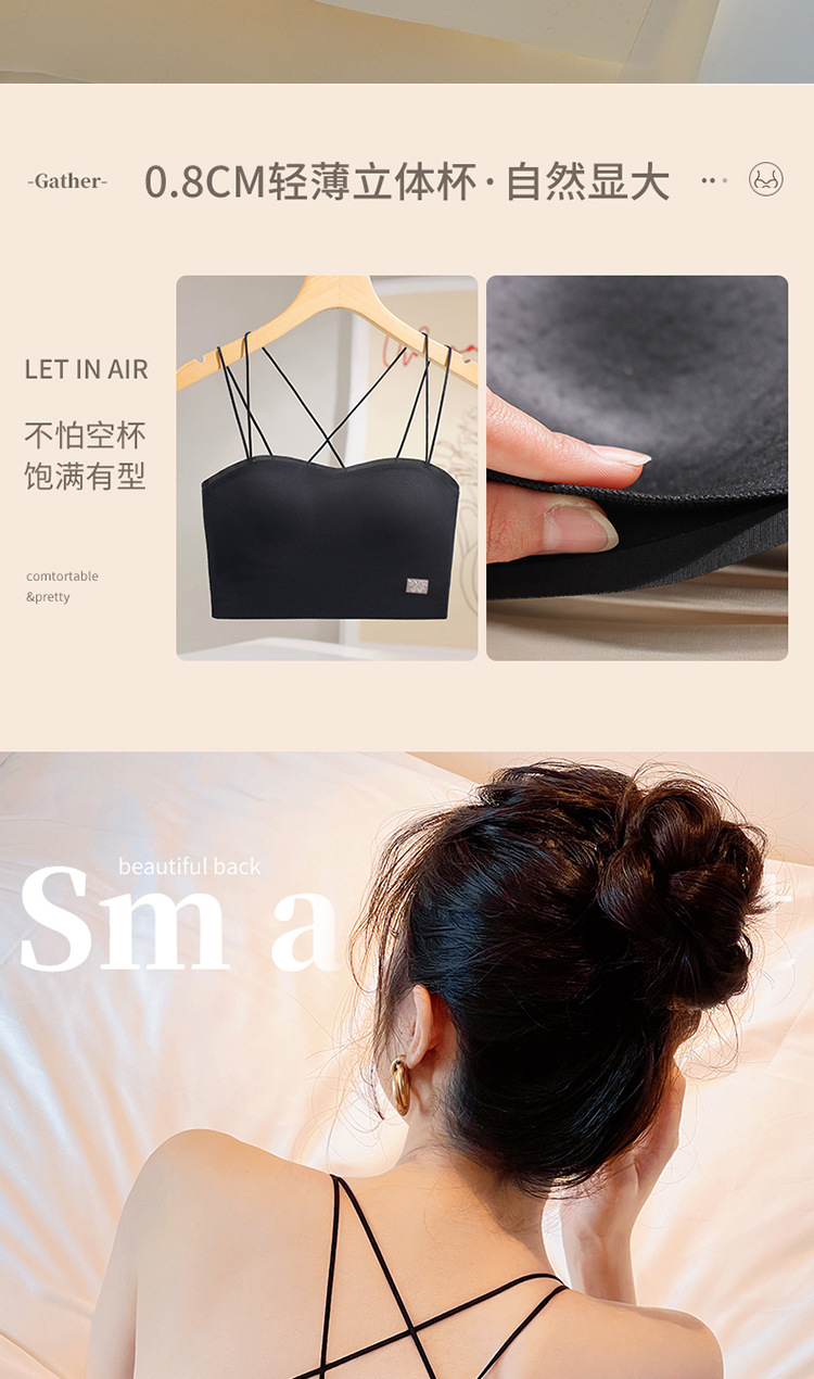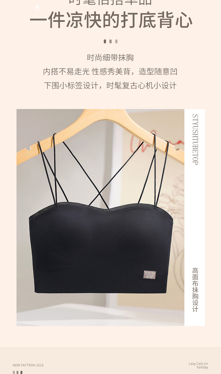6040 tubo tipo top con almohadilla para el pecho, una pieza sin costuras, belleza invisible, espalda cruzada, ropa interior delgada, sexy, tirantes, sujetador ligero
