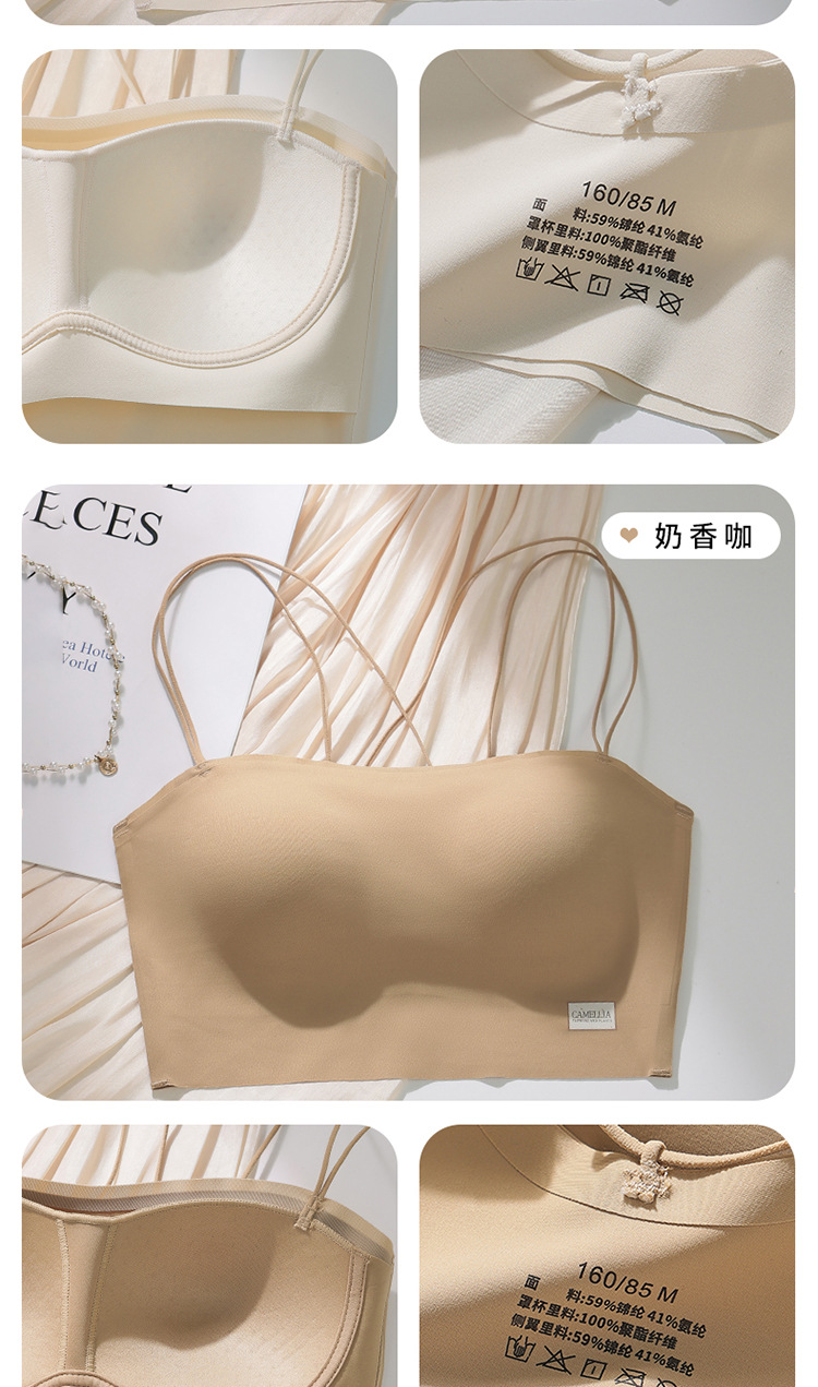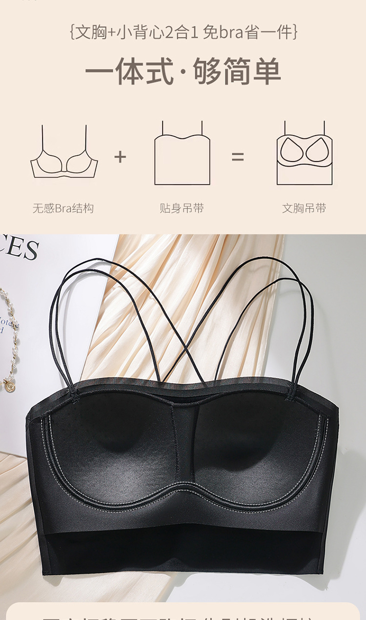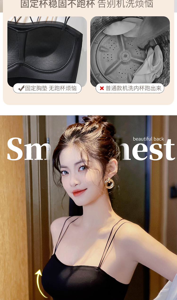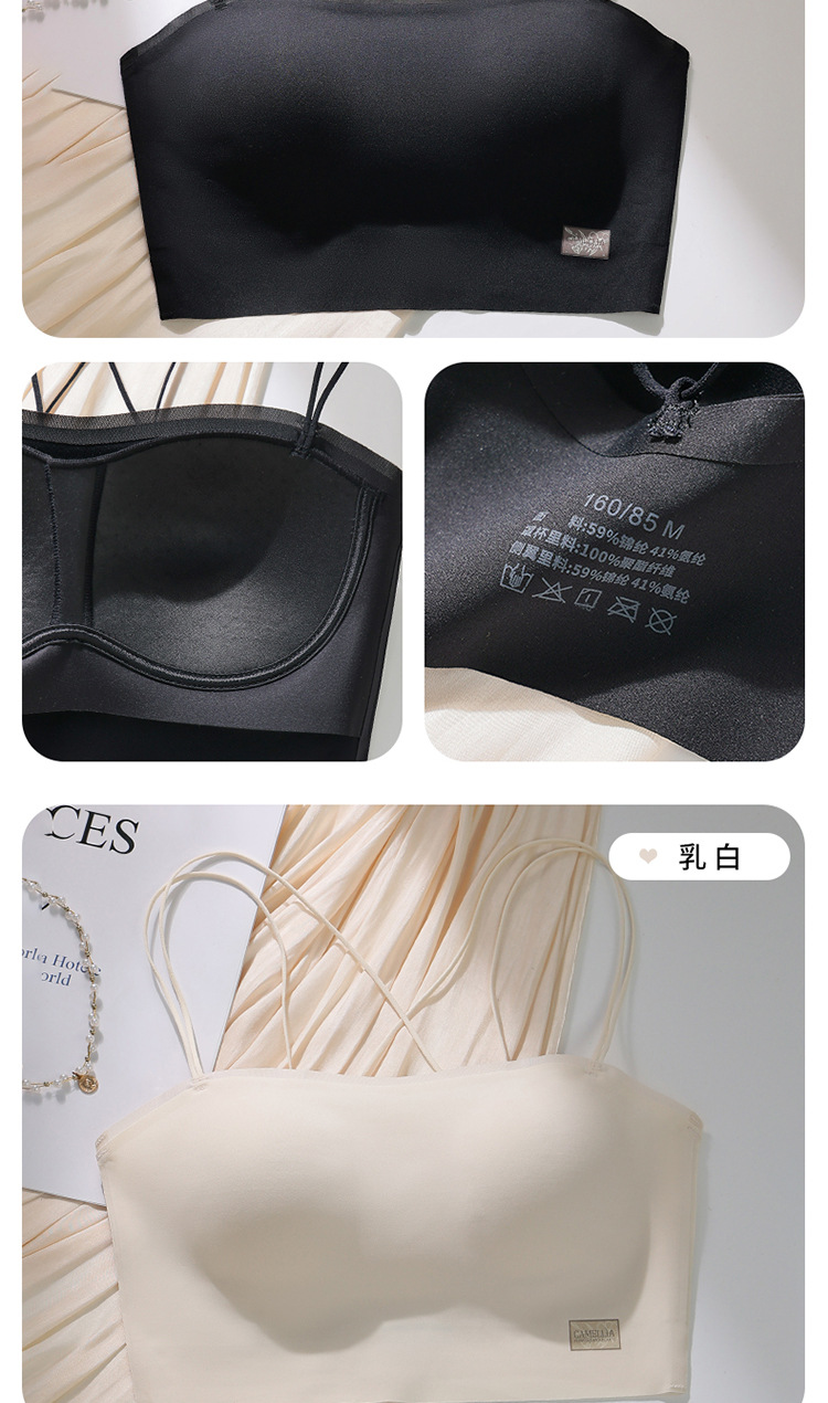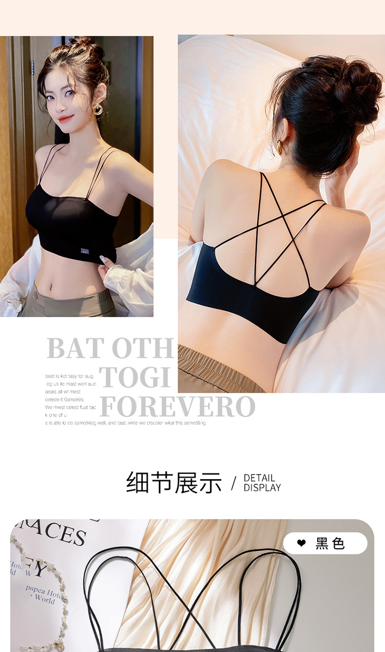 6040 tubo tipo top con almohadilla para el pecho, una pieza sin costuras, belleza invisible, espalda cruzada, ropa interior delgada, sexy, tirantes, sujetador ligero