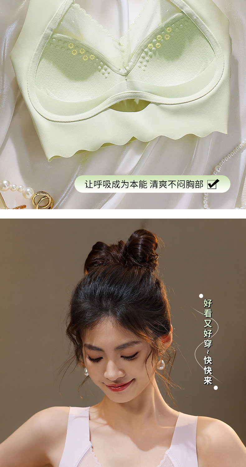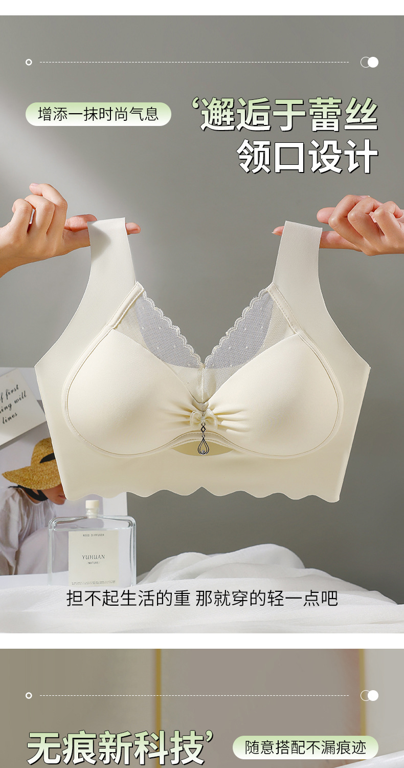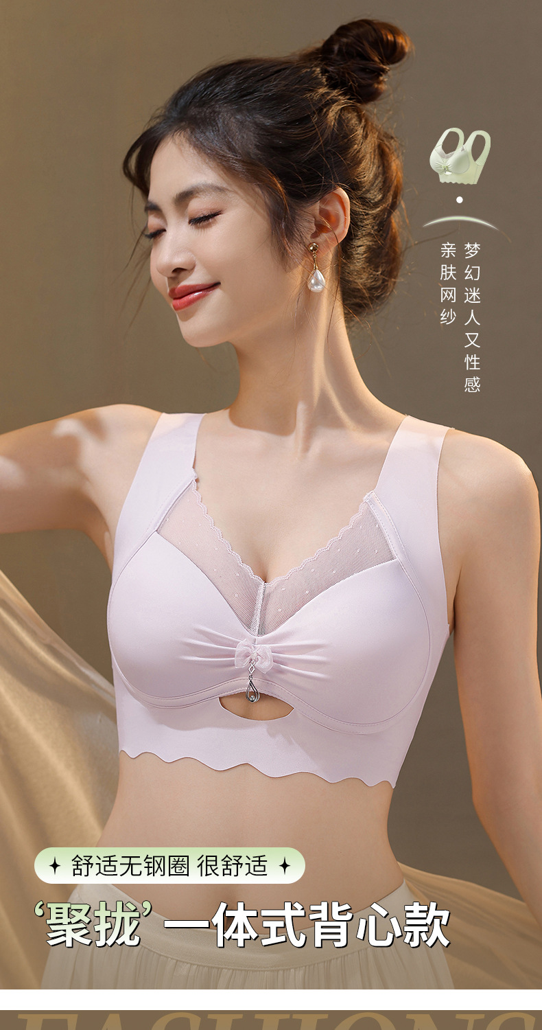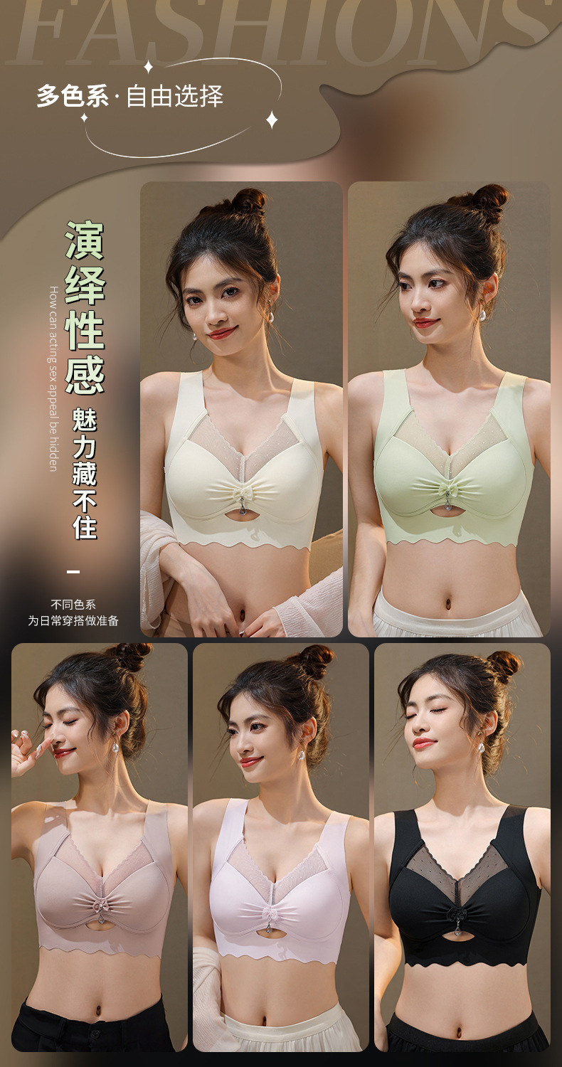 Nueva ropa interior de encaje sin costuras, copa fija, chaleco fino, sujetador de reunión sin anillo de acero para mujer, sujetador antiflacidez