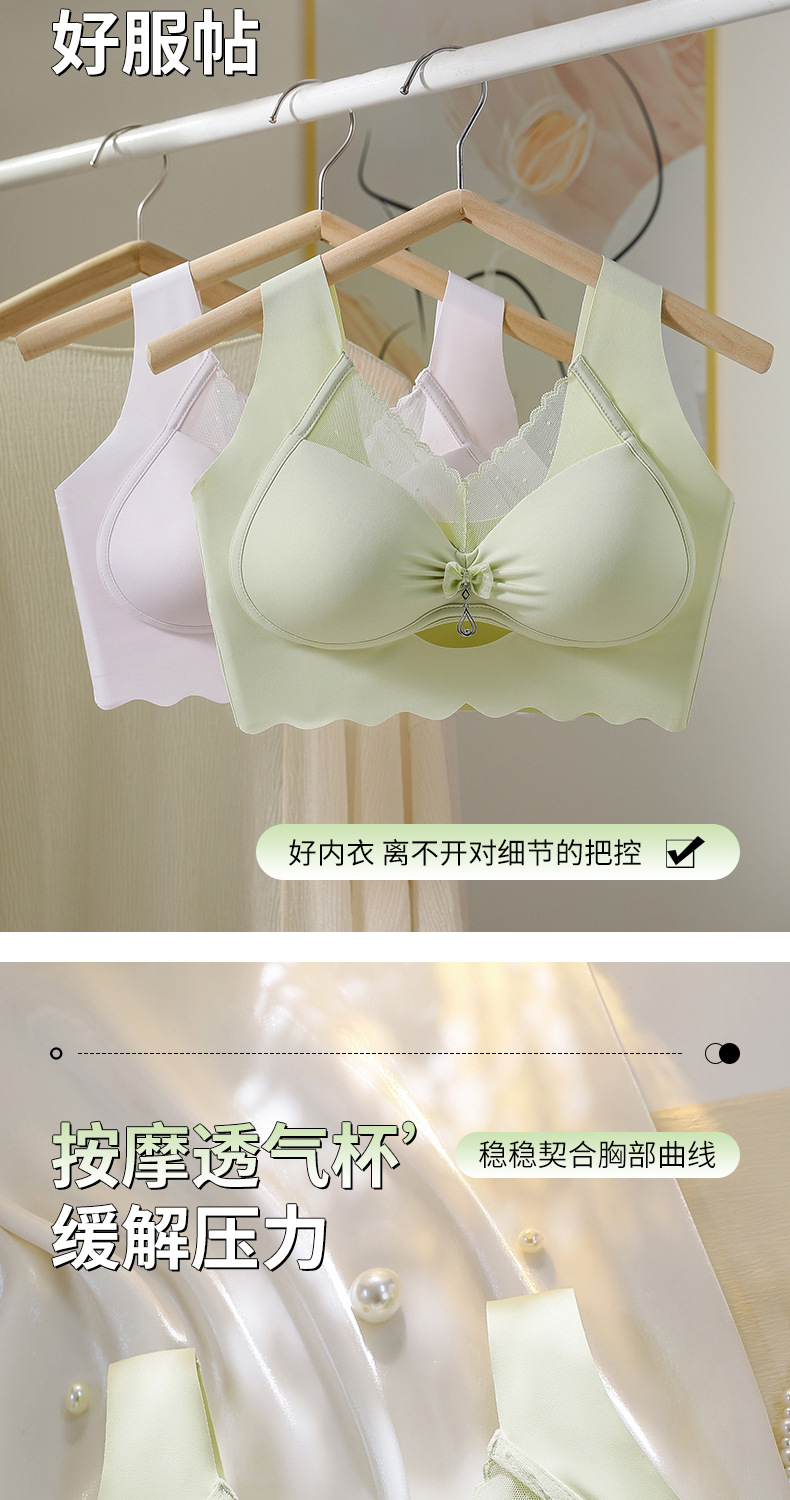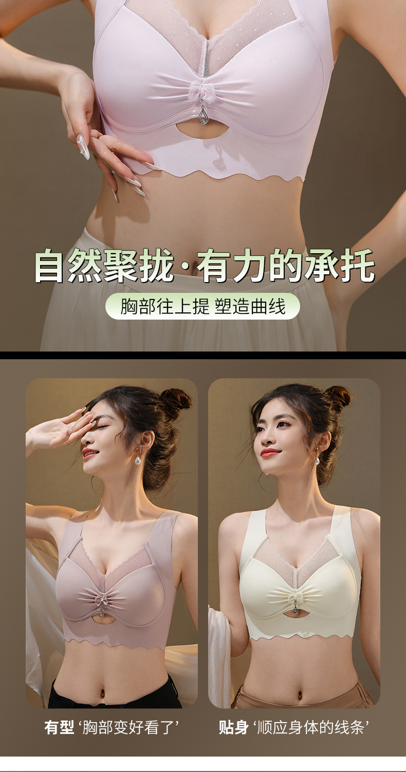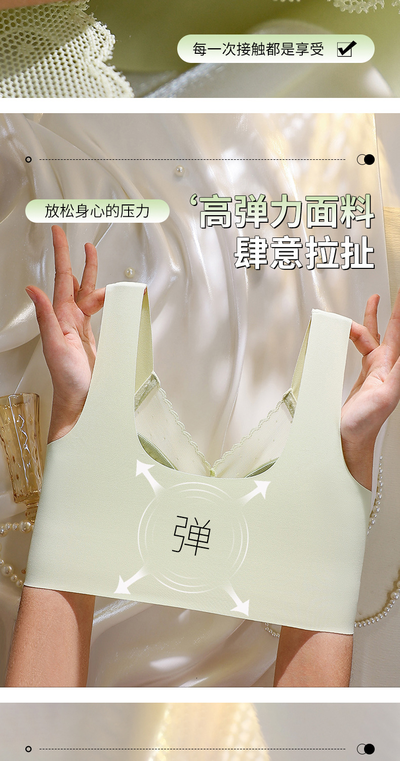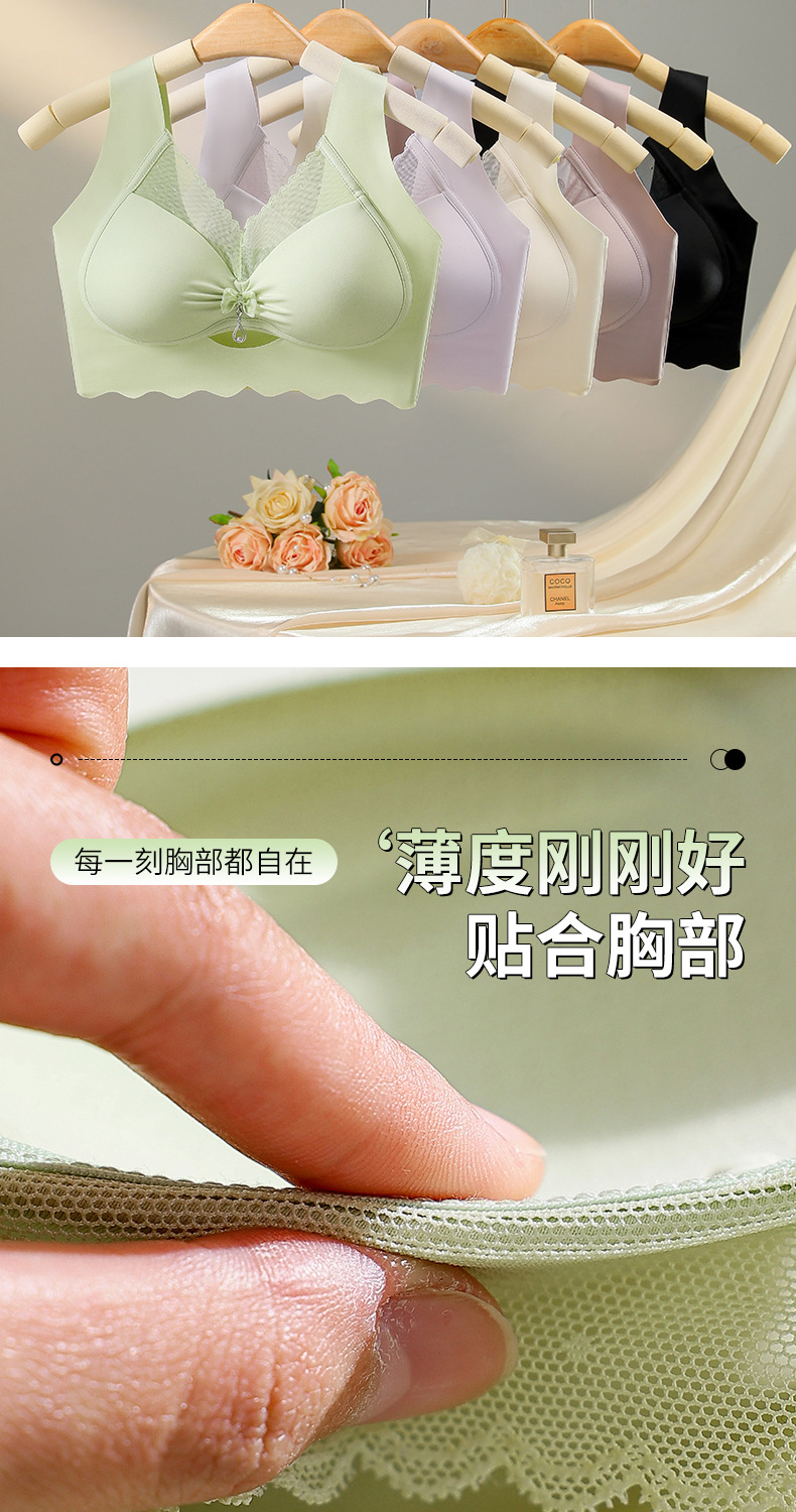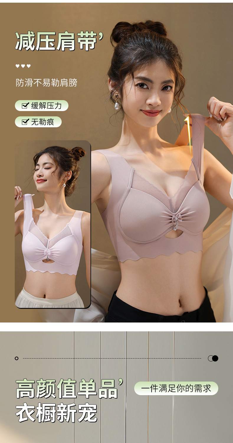 Nueva ropa interior de encaje sin costuras, copa fija, chaleco fino, sujetador de reunión sin anillo de acero para mujer, sujetador antiflacidez