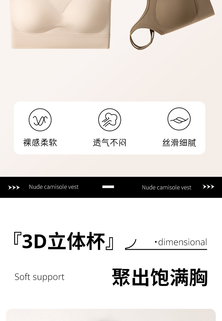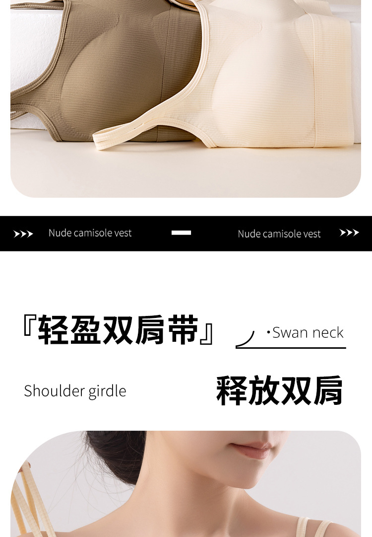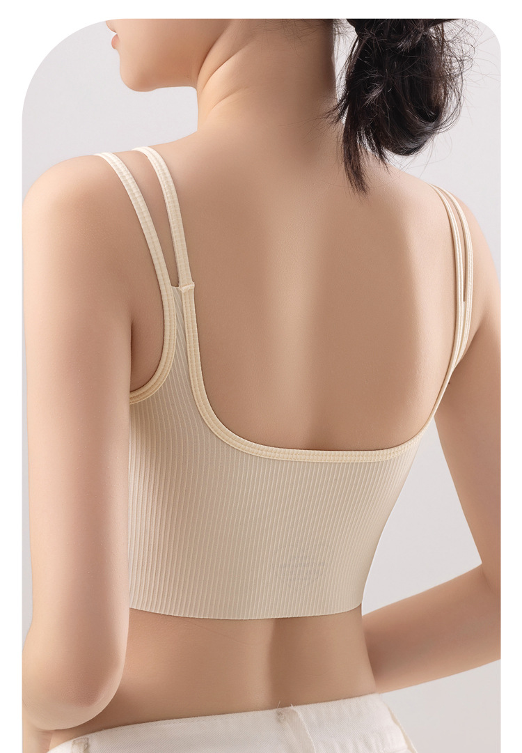 Correa de hombro sin costuras hermosa espalda ropa interior sujetador de chaleco de copa fija sexy gran espalda abierta con doble hombro chaleco envuelto en el pecho mujer