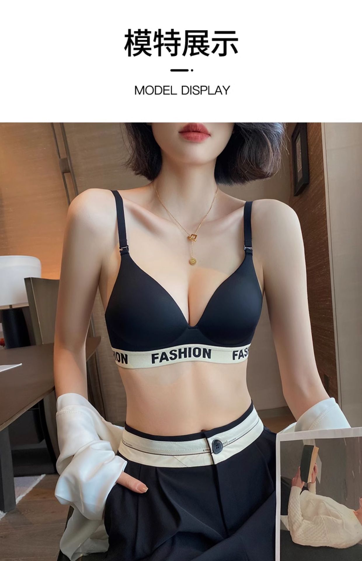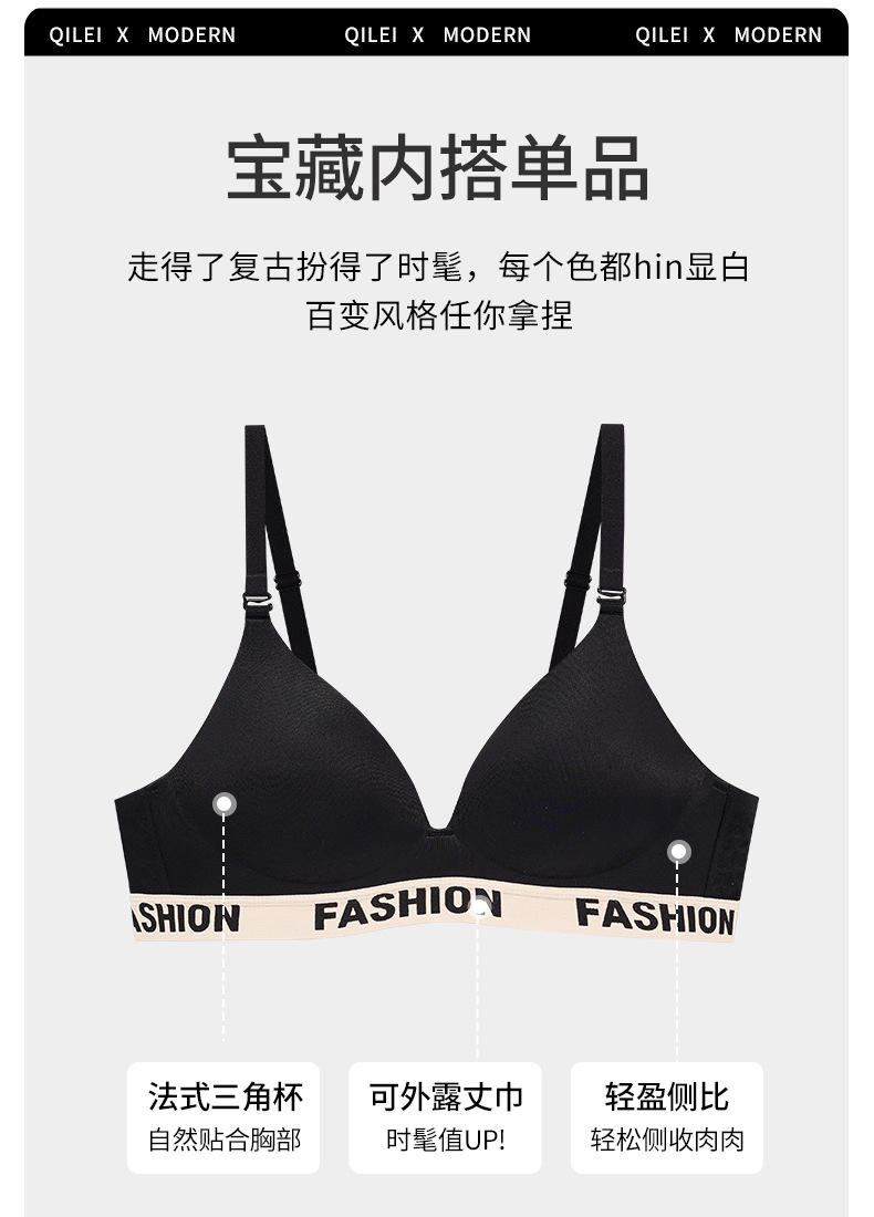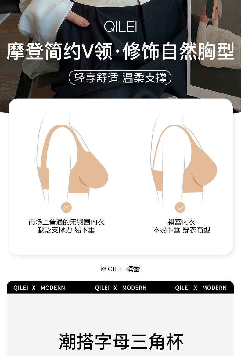 962 Ropa interior de recolección de pechos pequeños sin anillo de acero brillante en V profundo moderno