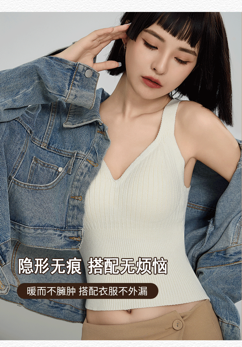 Chaleco térmico de mujer con almohadilla en el pecho Otoño e Invierno lana interior forrada de lana engrosada calefacción térmica inferior ropa interior superior