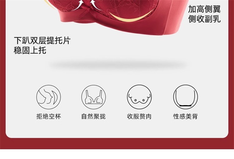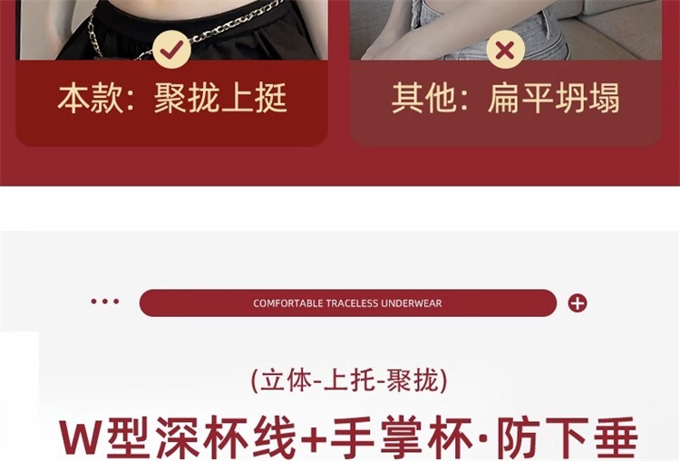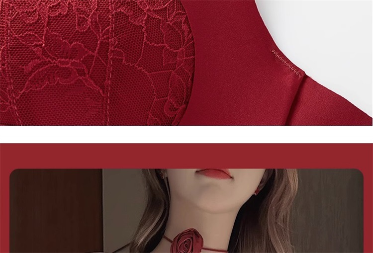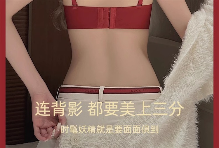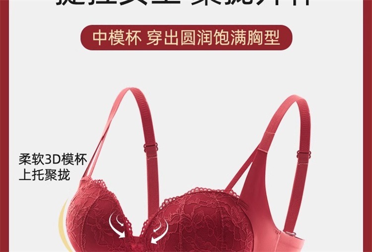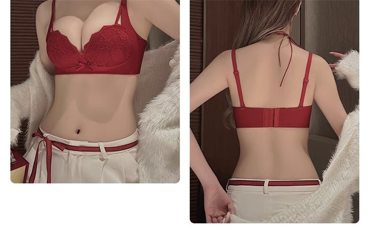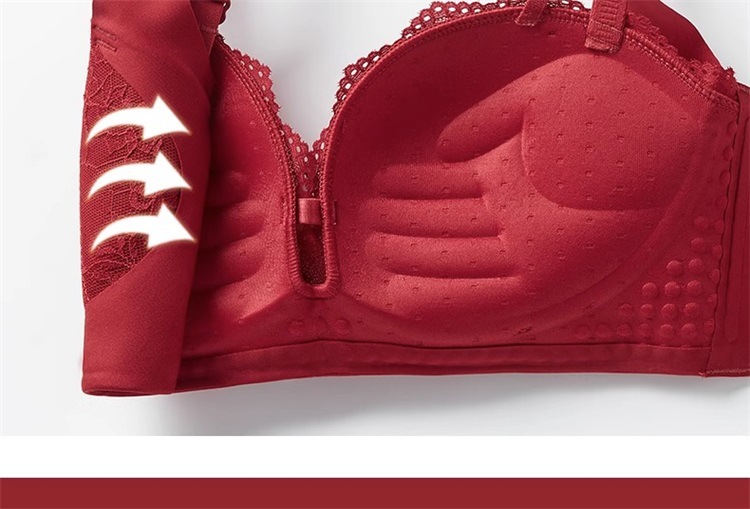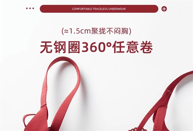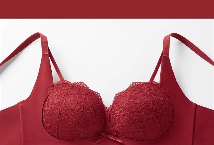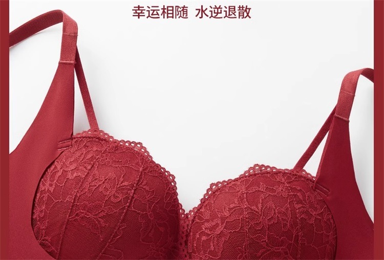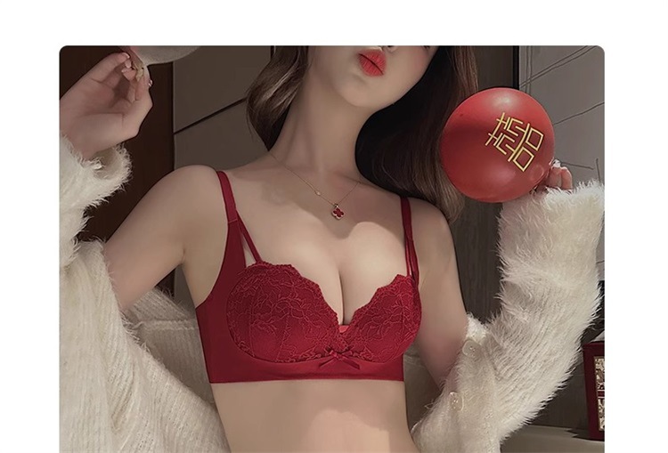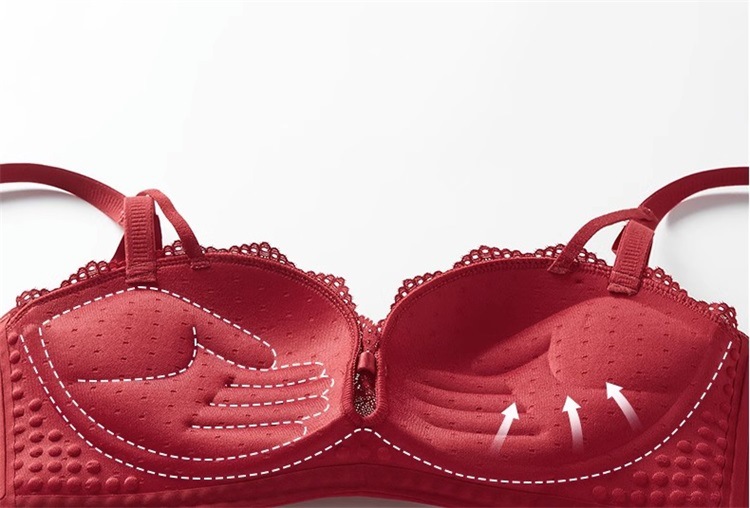 261 rojo año de nacimiento melocotón pecho crujiente pequeño pecho push up soporte superior sujetador de elevación sujetador ajustable sin anillo de acero