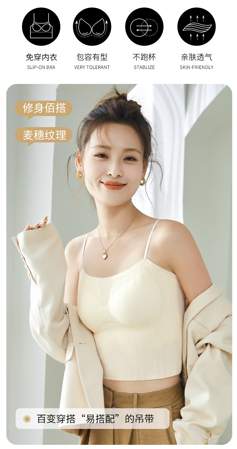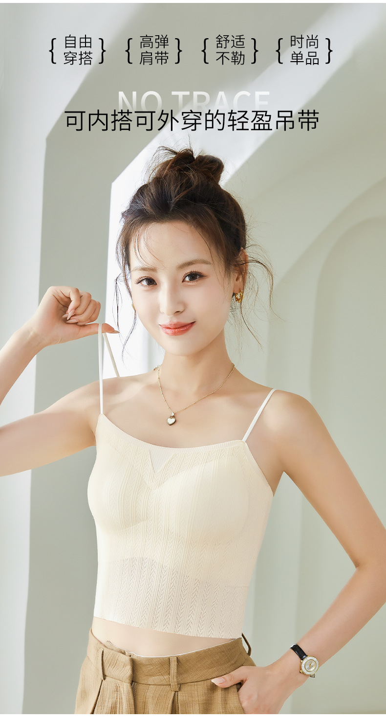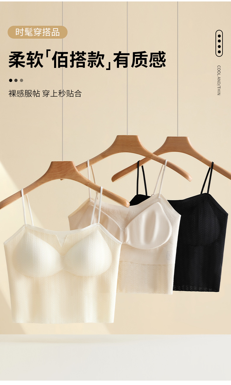 Ropa interior de cabestrillo de espalda fina de verano con almohadilla para el pecho Sujetador de una pieza sin uso con base interior y chaleco de tubo para mujer