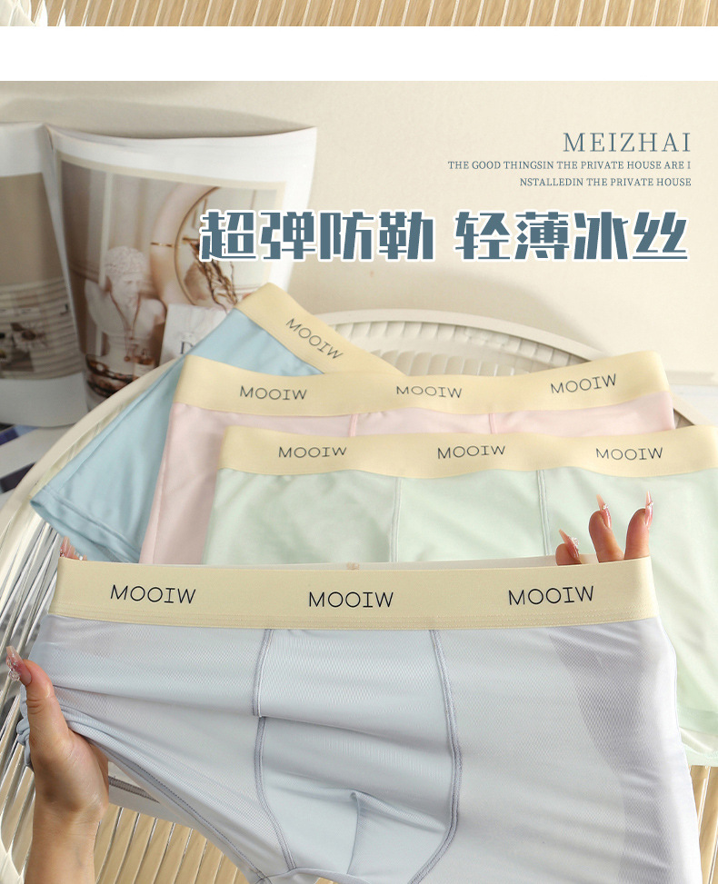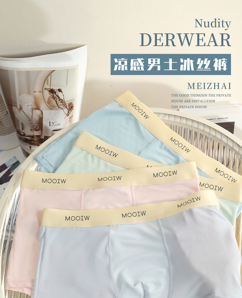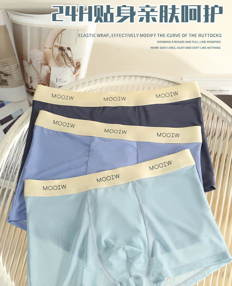 Ropa interior de seda de hielo para hombre, antibacteriano, pantalones de cuatro esquinas para hombre, ropa interior bóxer transpirable para adolescentes delgada de verano, hombres