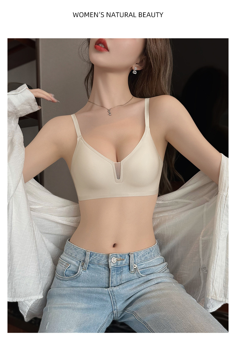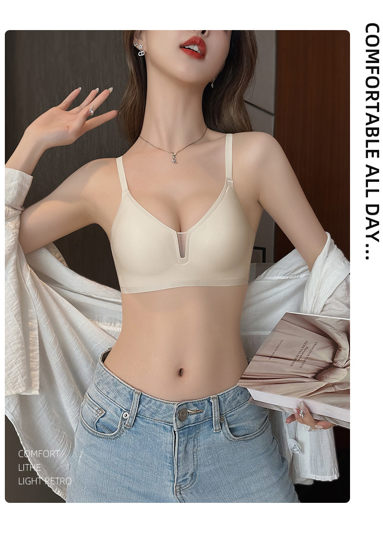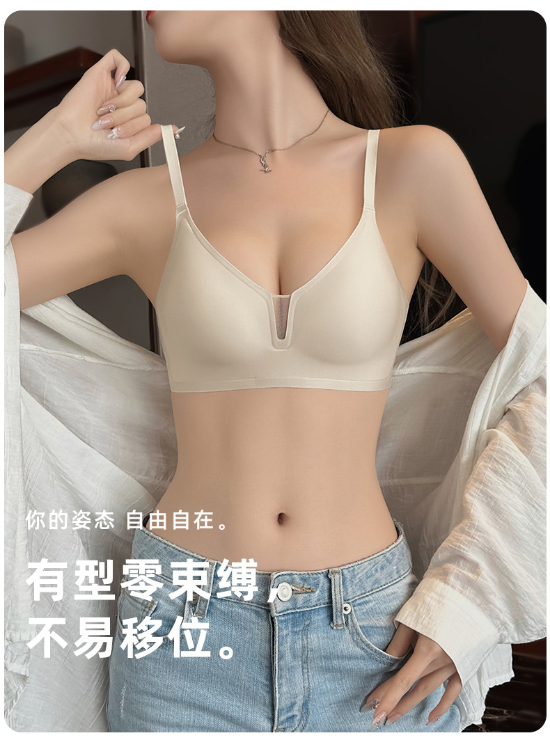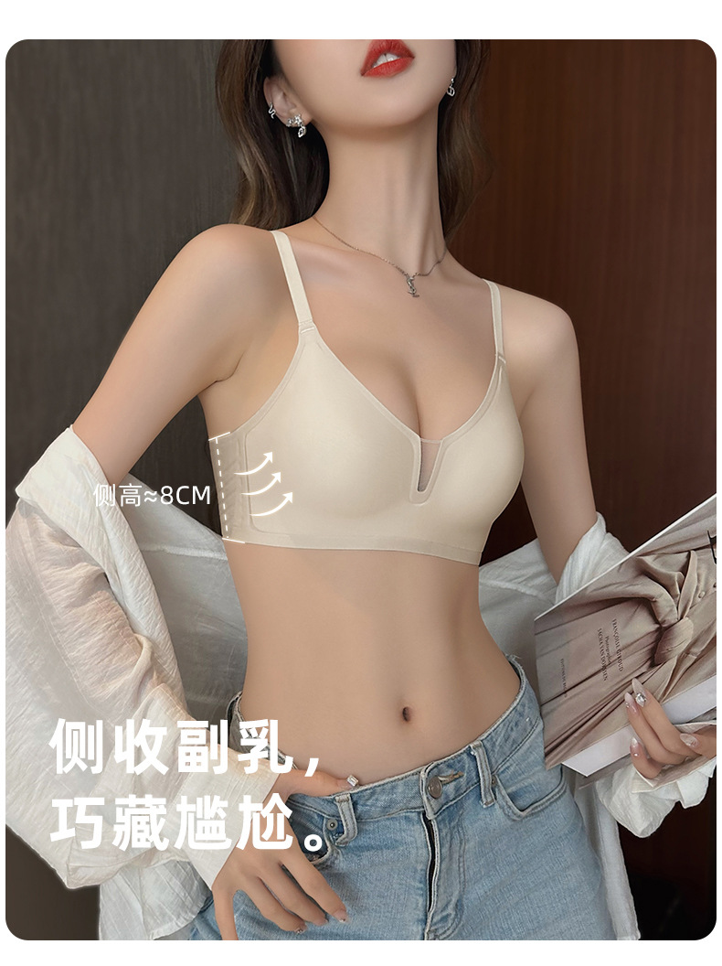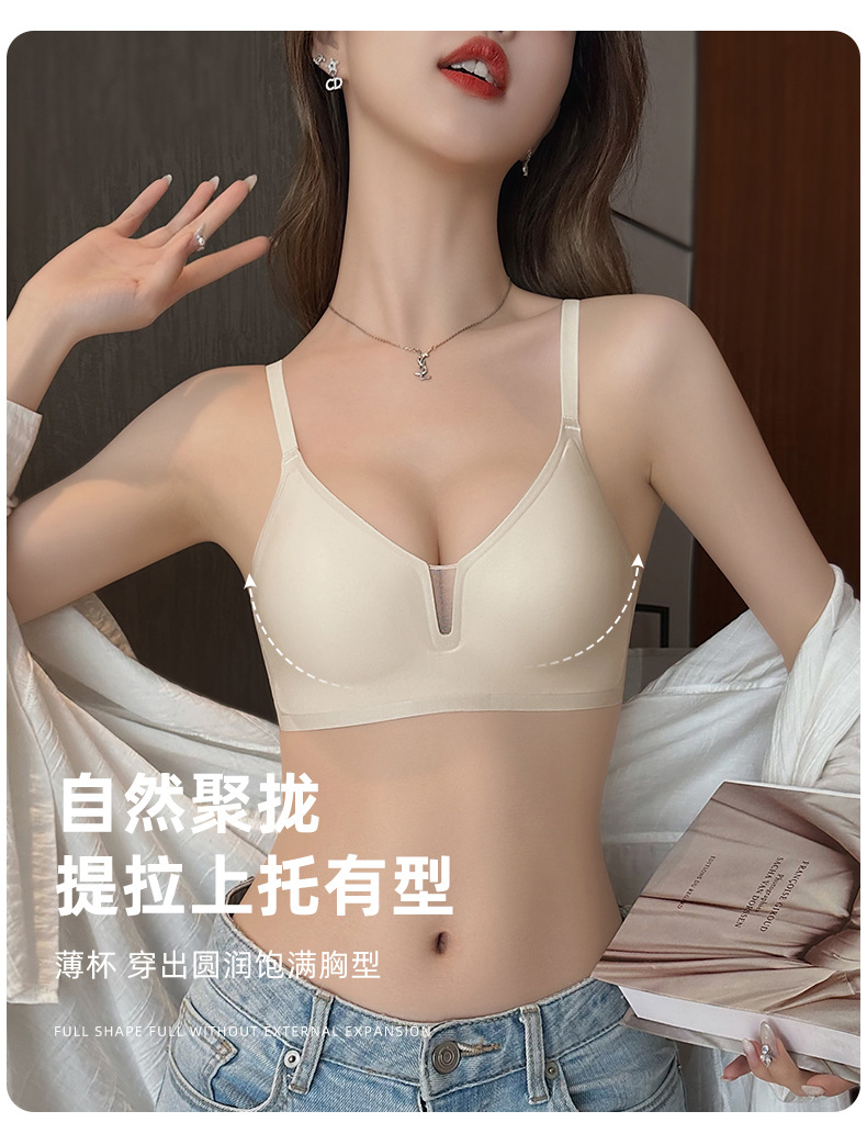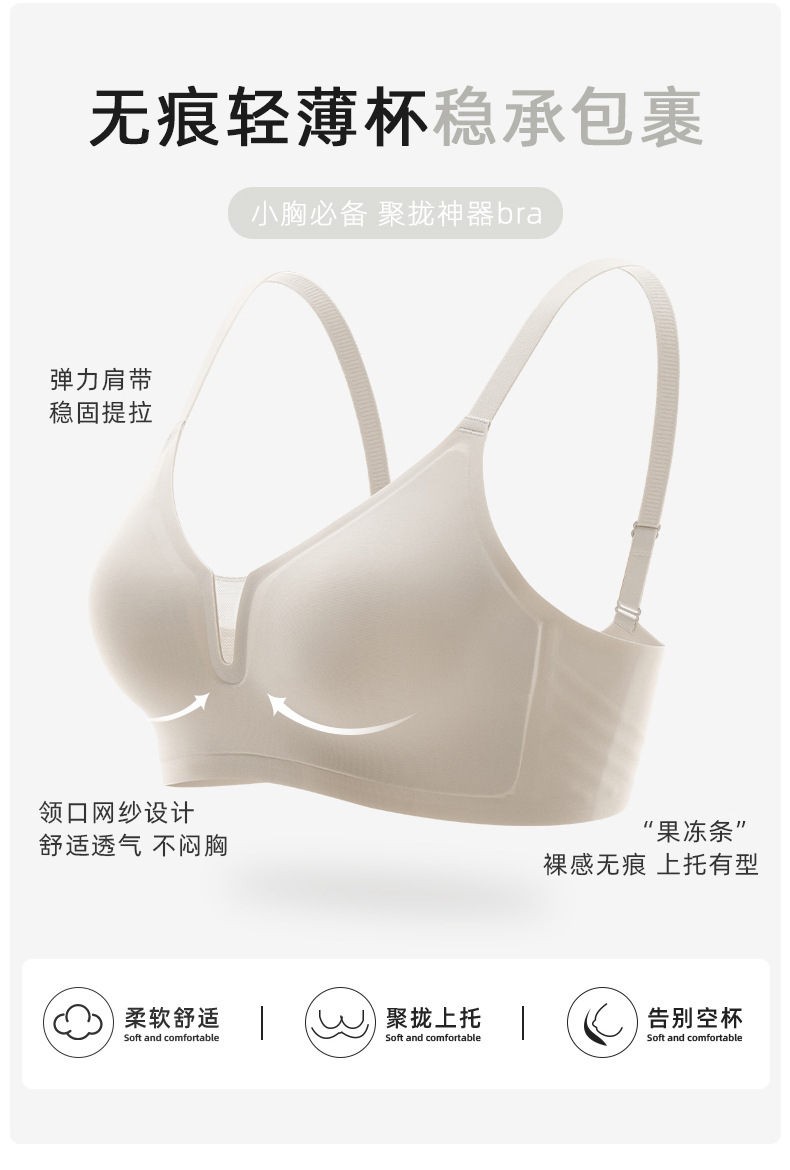 Cómodo sin costuras luz V sexy pequeño pecho Delgado push-up sujetador de mama Nueva tira de jalea anti-flacidez sujetador C13