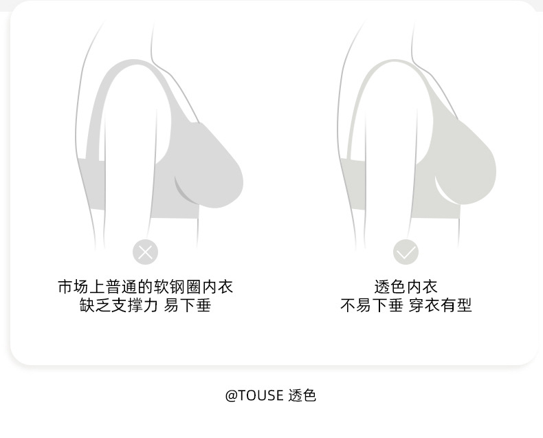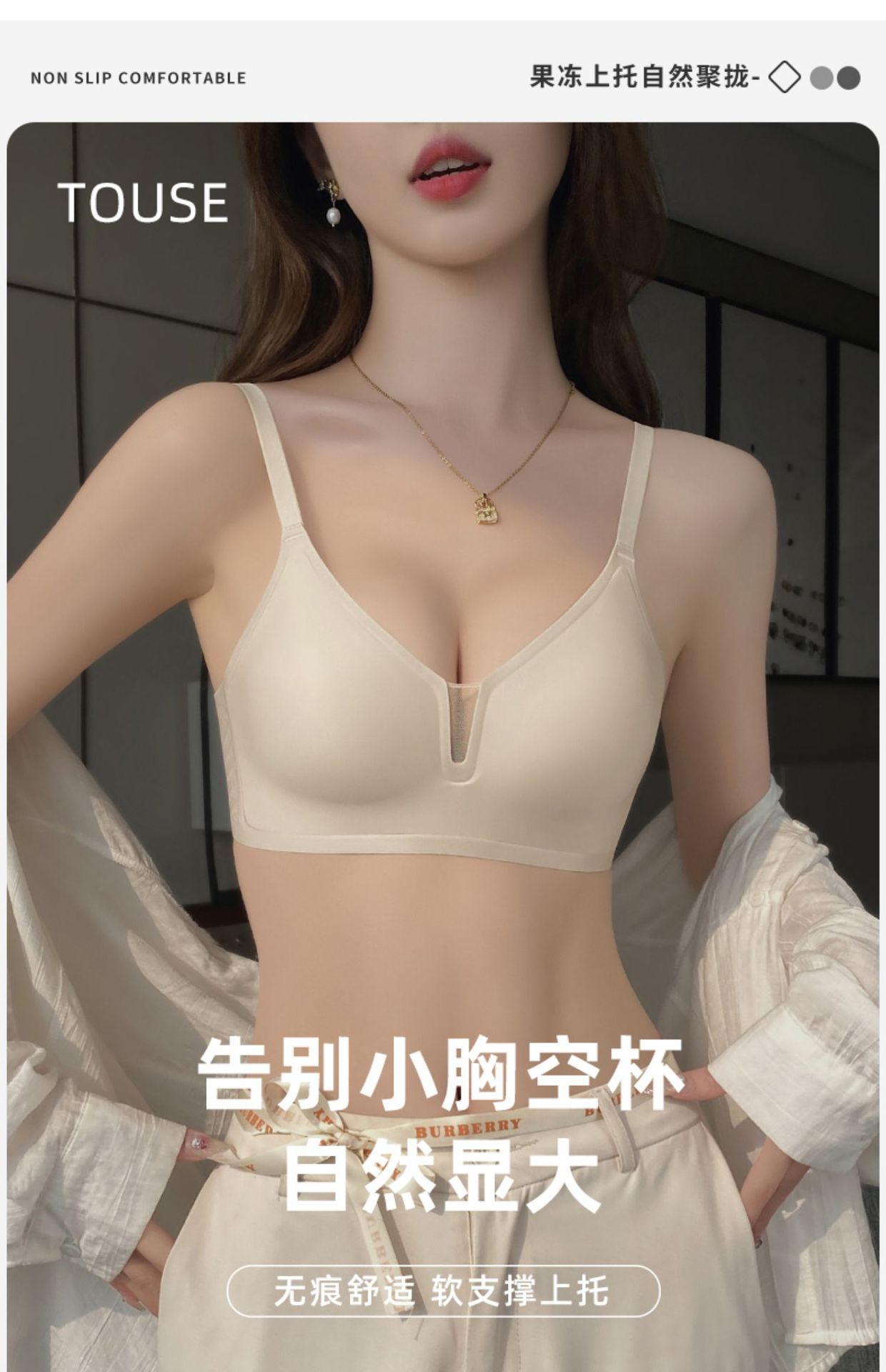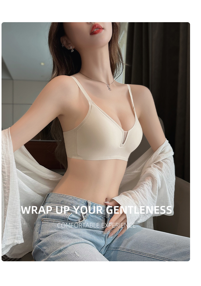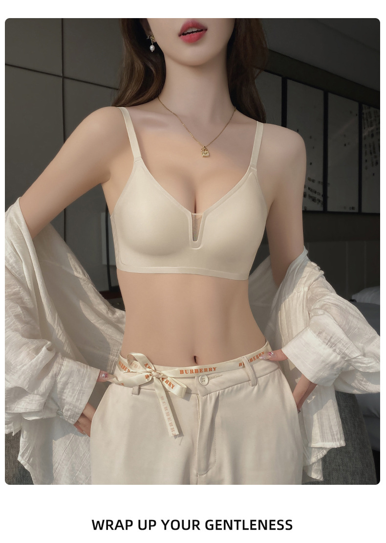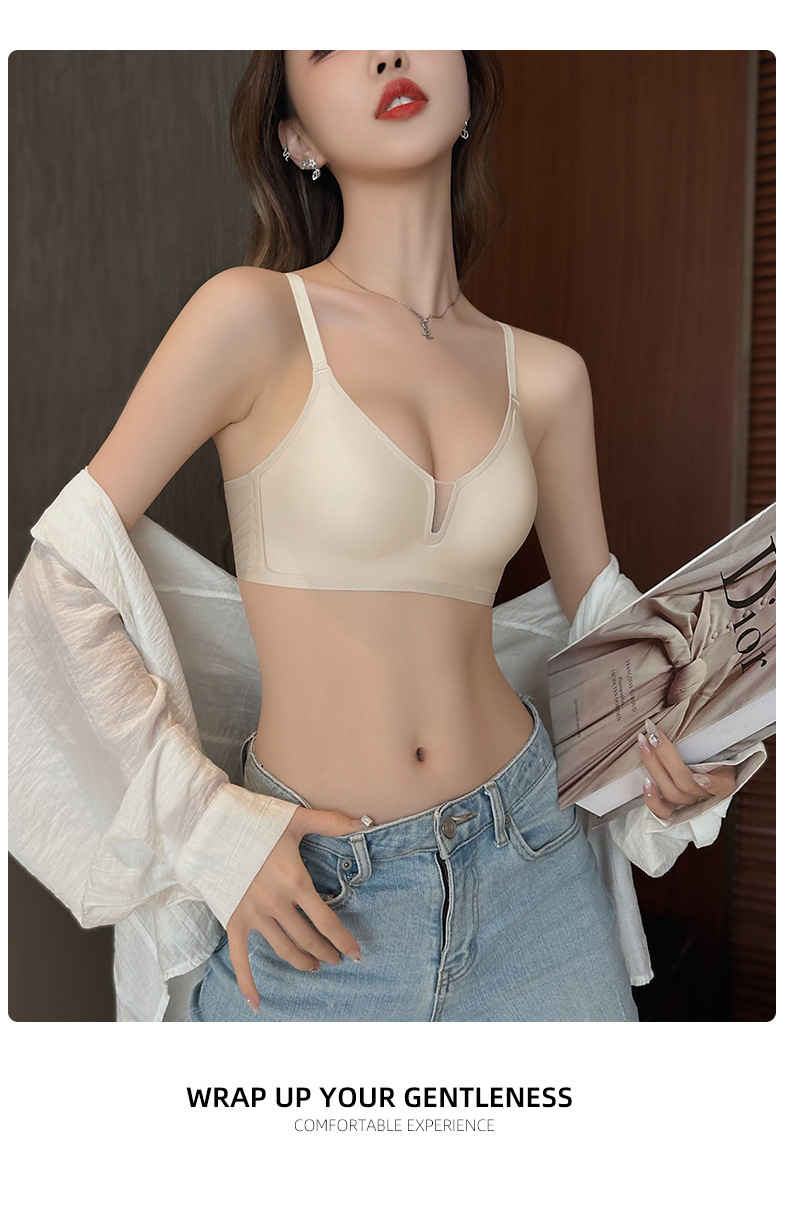 Cómodo sin costuras luz V sexy pequeño pecho Delgado push-up sujetador de mama Nueva tira de jalea anti-flacidez sujetador C13