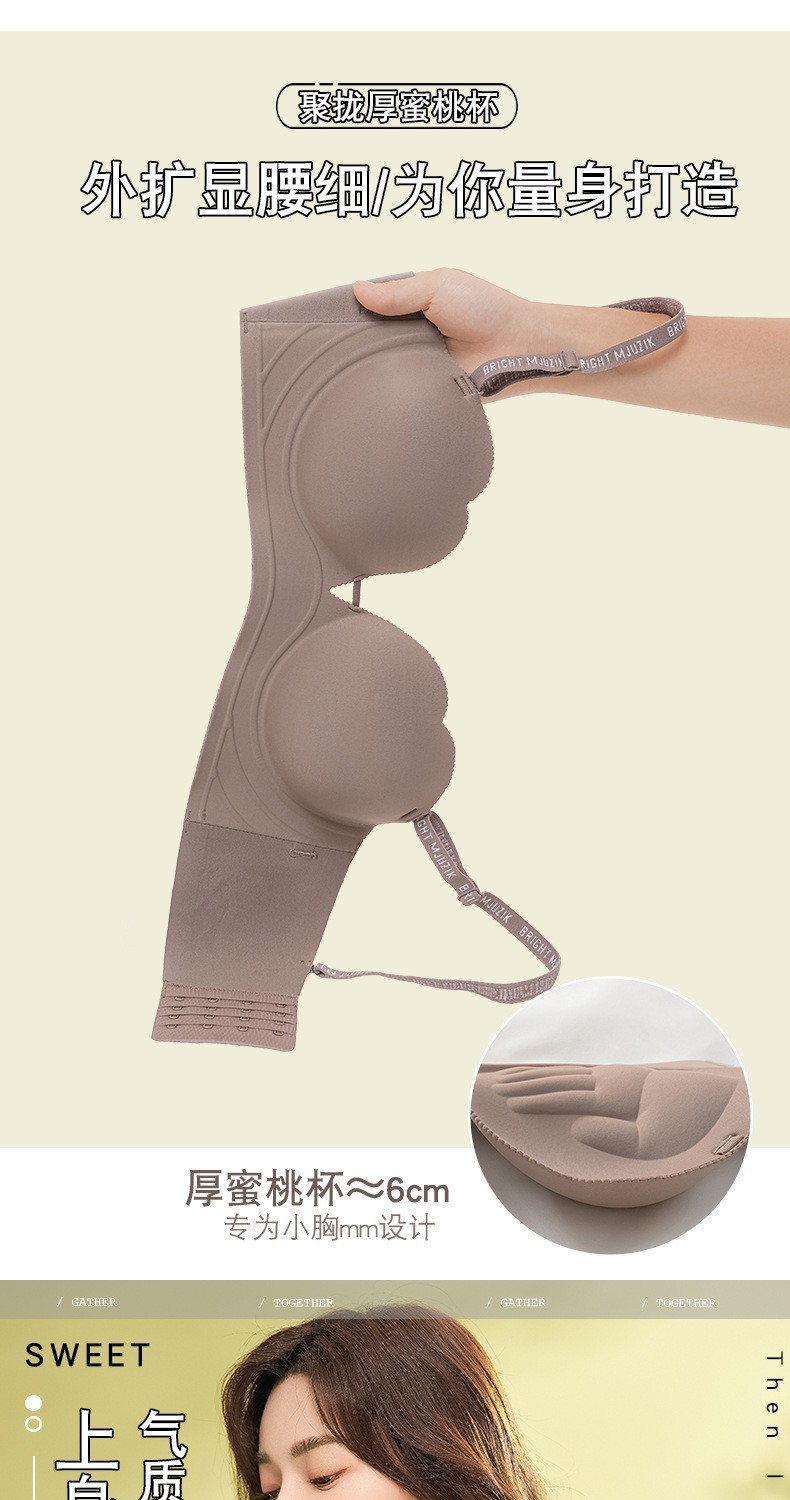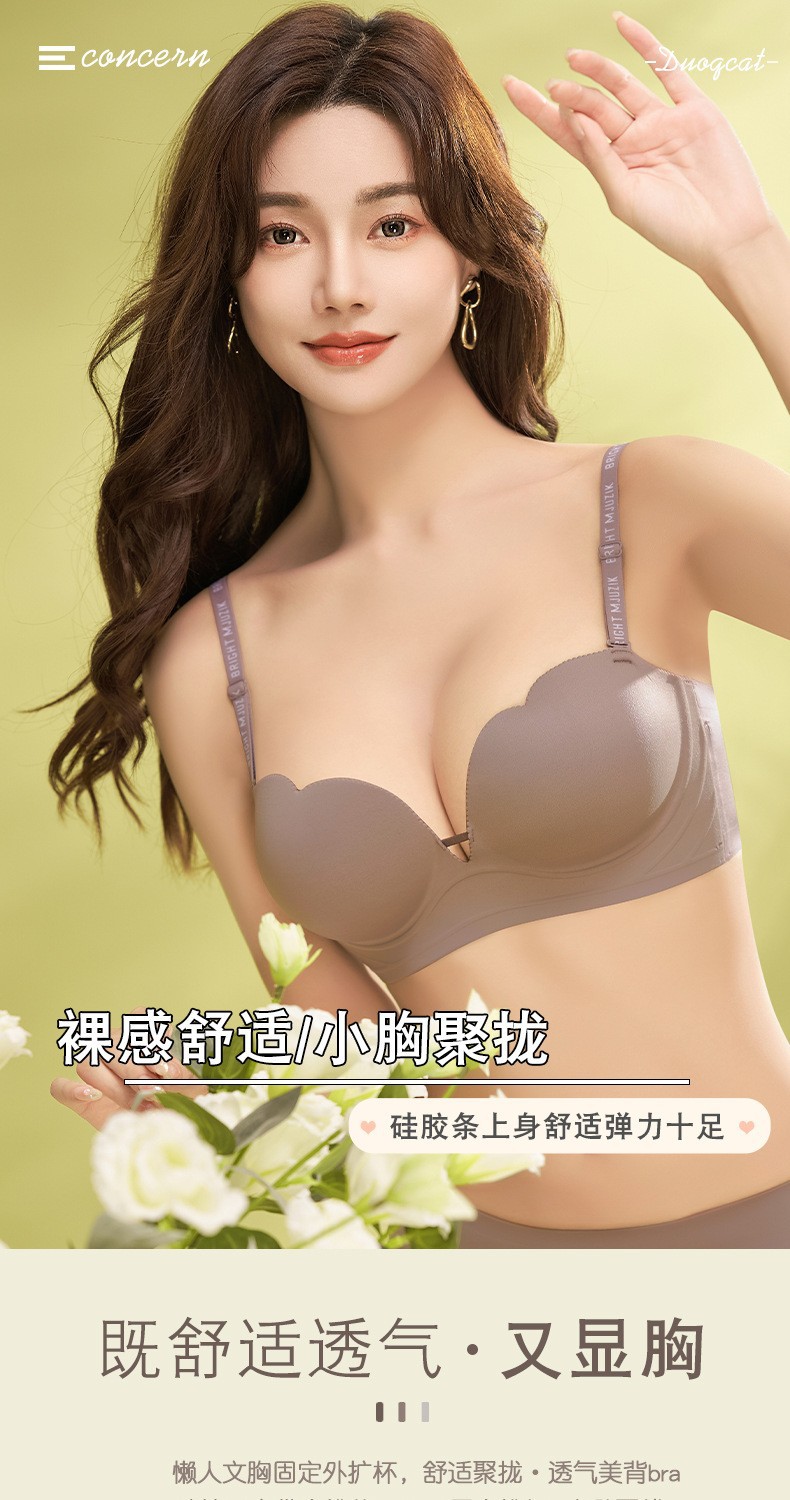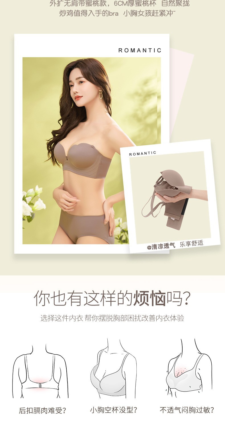 373 suave glutinoso engrosado de dibujos animados pecho anti-expansión externa ropa interior sin costuras cómodo inalámbrico pequeño pecho Sujetador push up ajustable