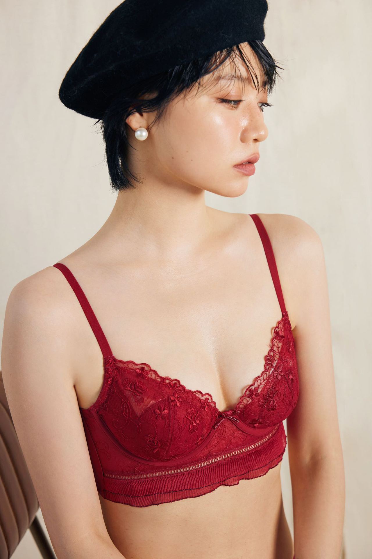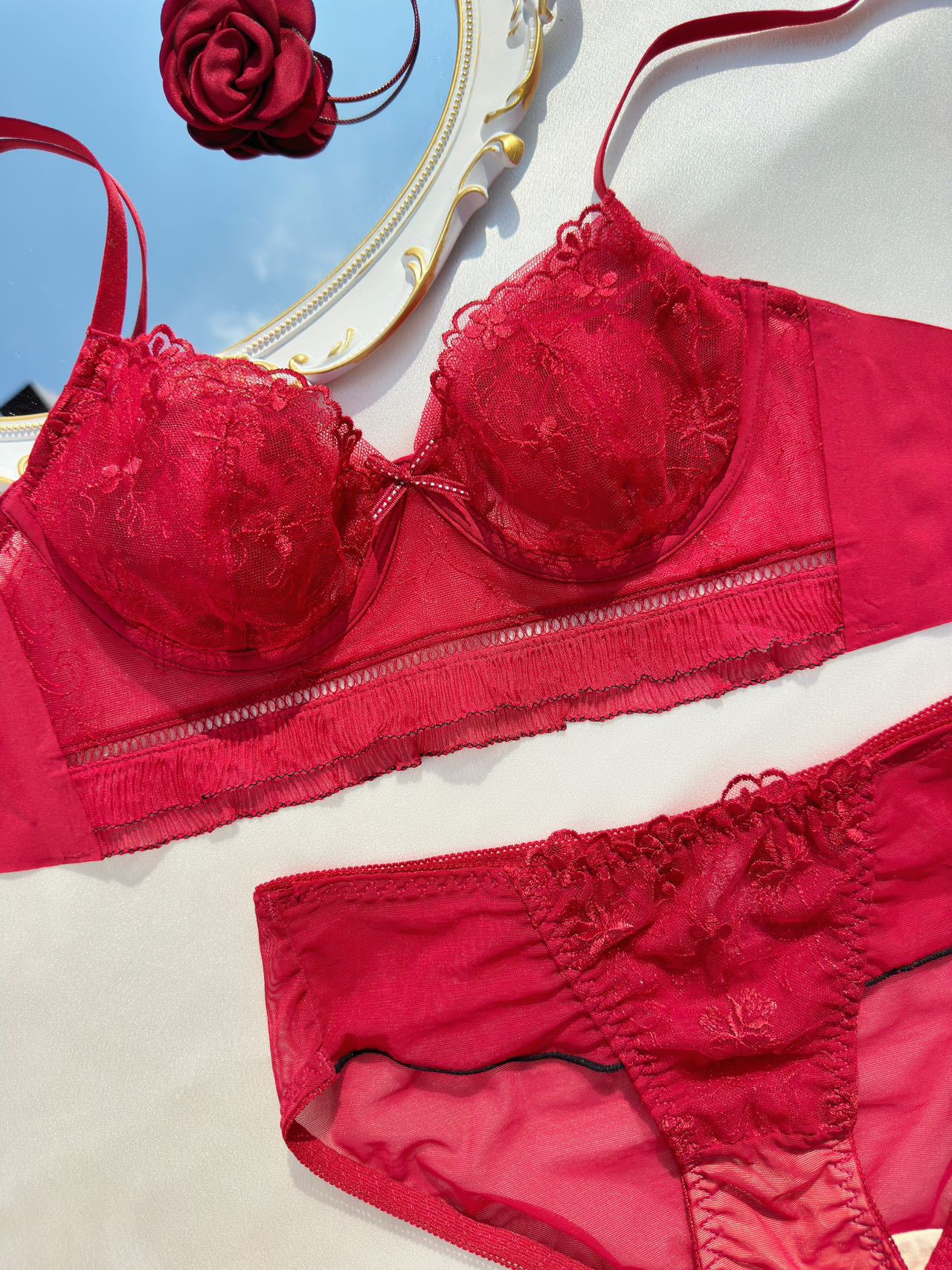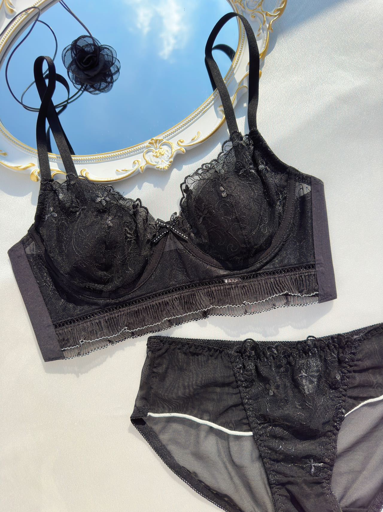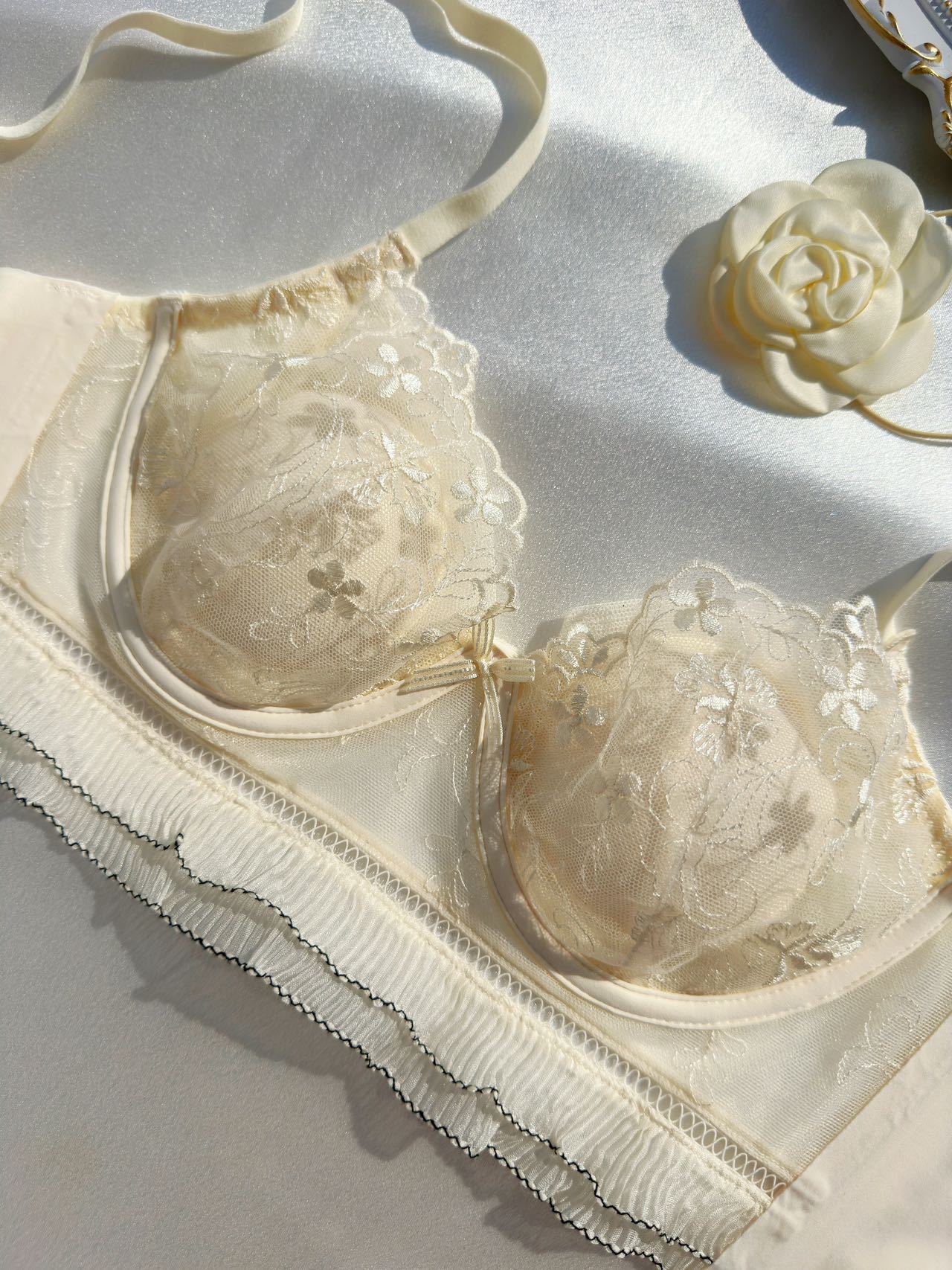 6863 Estilo de corte francés Conjunto de ropa interior de encaje bordado sexy Sujetador de pecho lateral de pecho pequeño femenino ultrafino y transpirable