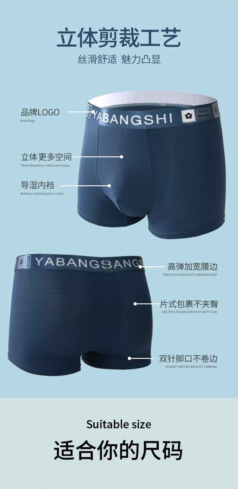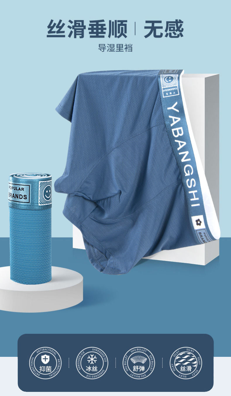 Ropa interior masculina, seda de hielo, malla transpirable que no deja marcas, guía la entrepierna interior húmeda, cintura media, boxer, ropa interior juvenil, cuatro nuevos estilos de verano