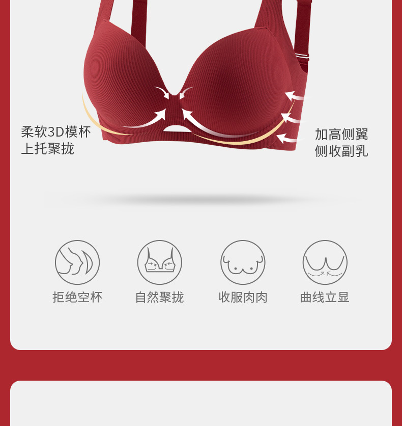 S3 taza de dibujos animados reunidos sin anillo de acero rojo nacimiento año boda ropa interior grande pecho pequeño más tamaño fino anti-flacidez sujetador