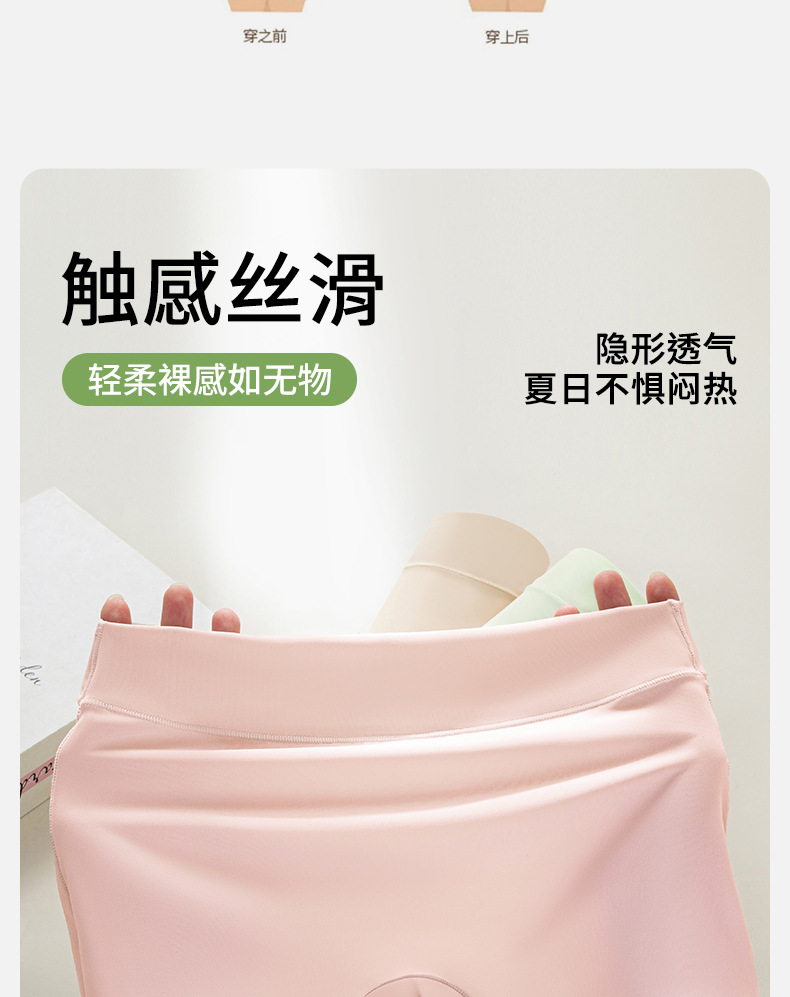Ropa interior de seda de hielo, leggings bóxer dos en uno para mujer, pantalones de seguridad sin rizos delgados de verano, ropa interior sin costuras