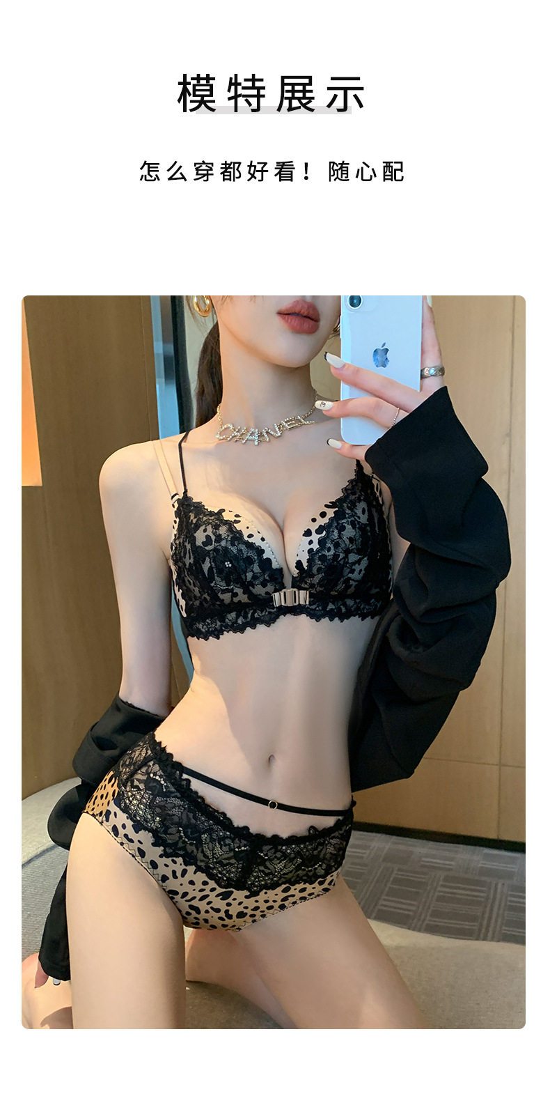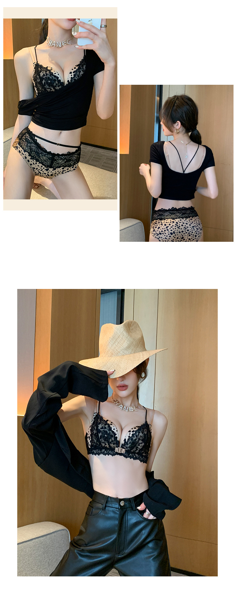 Entrega de una sola pieza 6081 hebilla frontal inalámbrica estampado de leopardo belleza transparente espalda cruzada ropa interior sexy encaje sujetador inalámbrico
