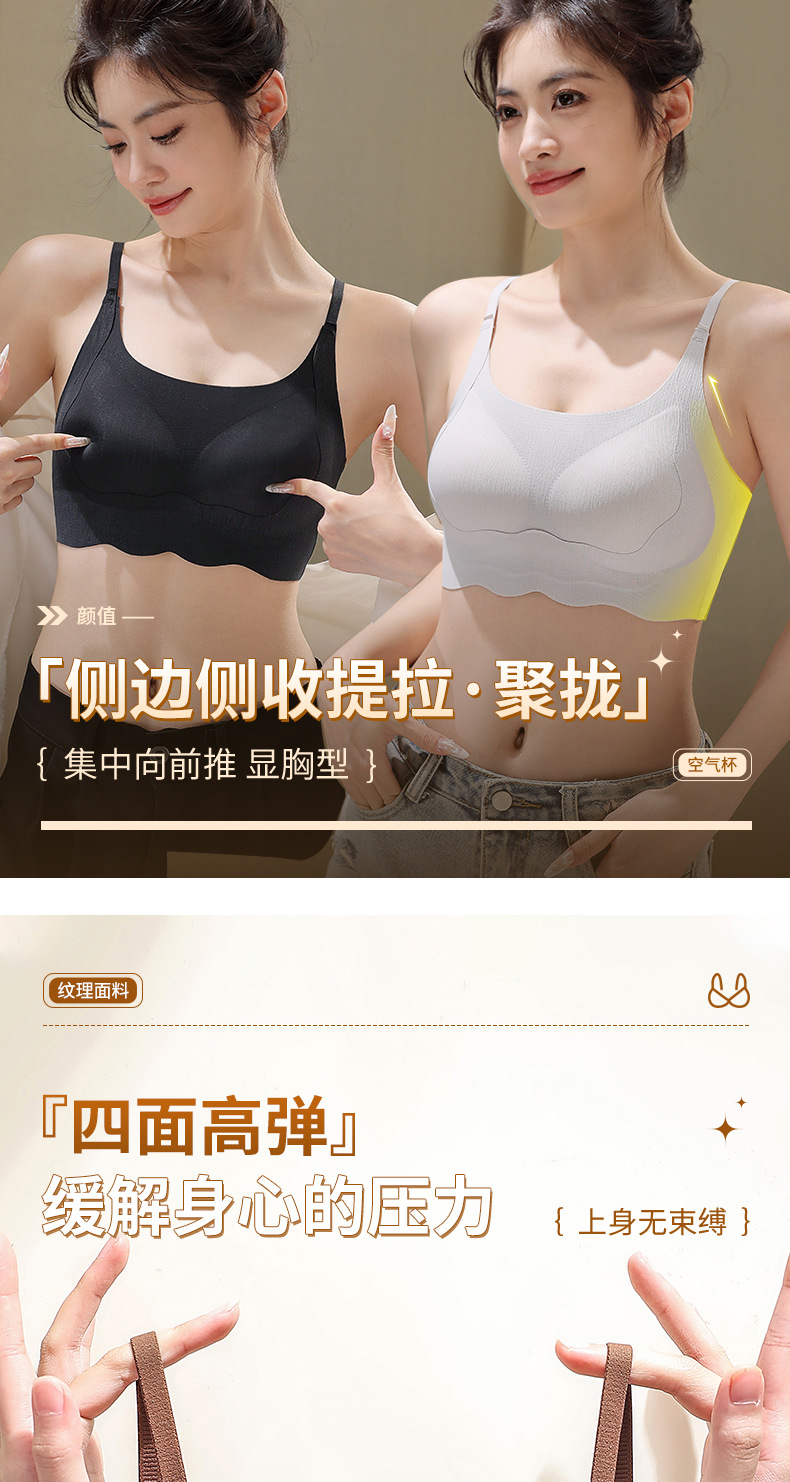 Nueva ropa interior con tirantes y tirantes, copa fija, sin costuras, sin anillo de acero, chaleco, sujetador antiflacidez