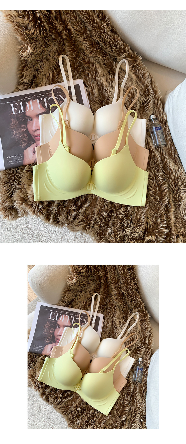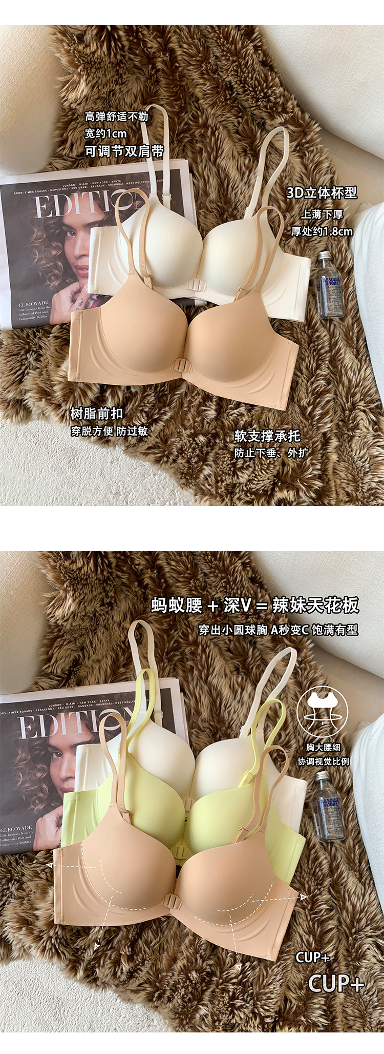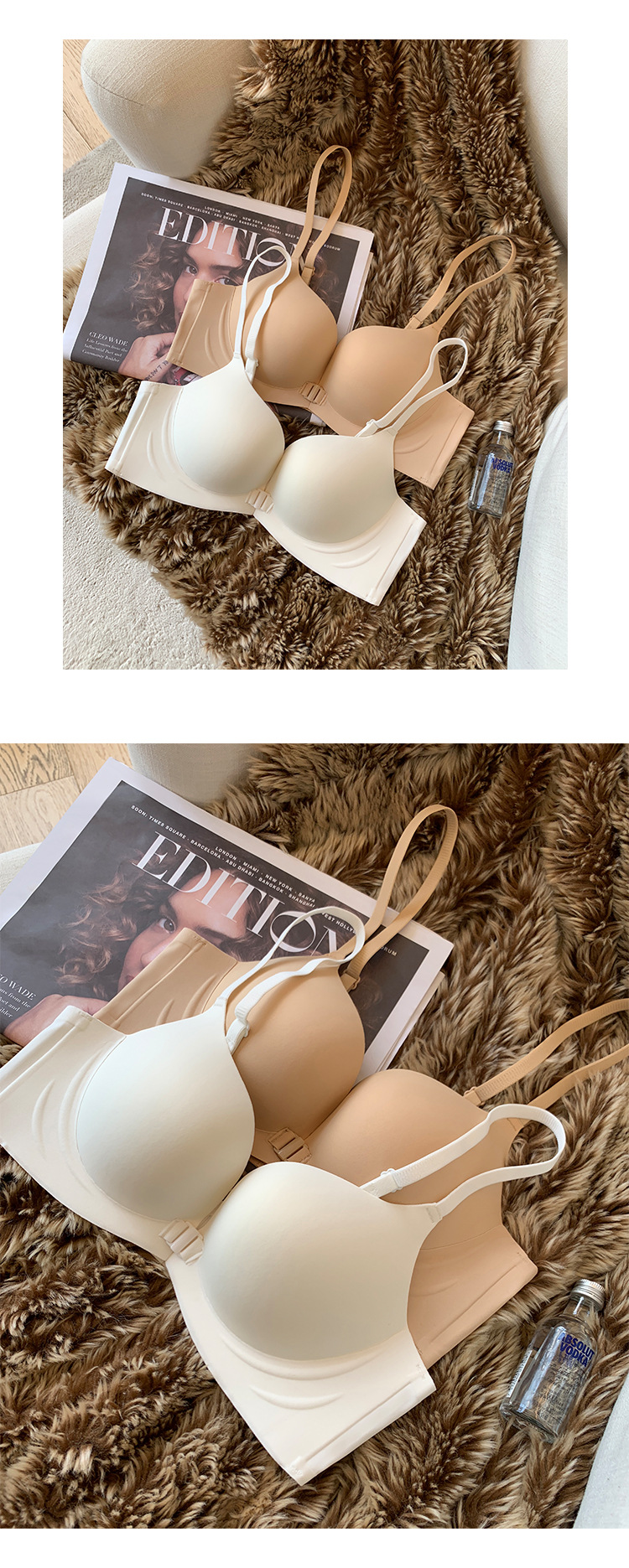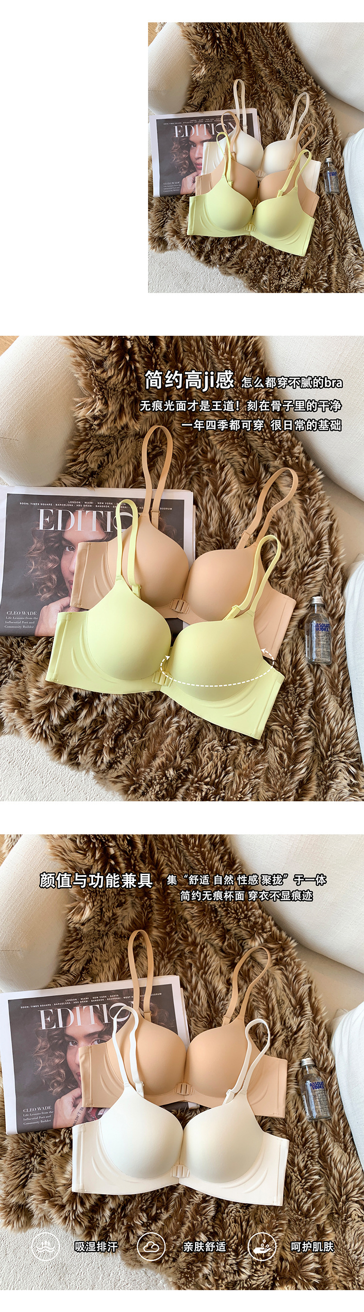 676 simple hebilla delantera sin costuras pequeño pecho push up ropa interior Pecho Redondo correa de hombro delgada belleza espalda desnuda sensación de pecho sujetador para mujeres