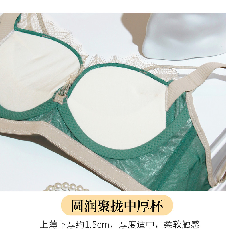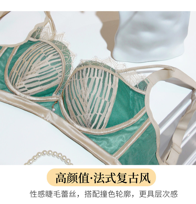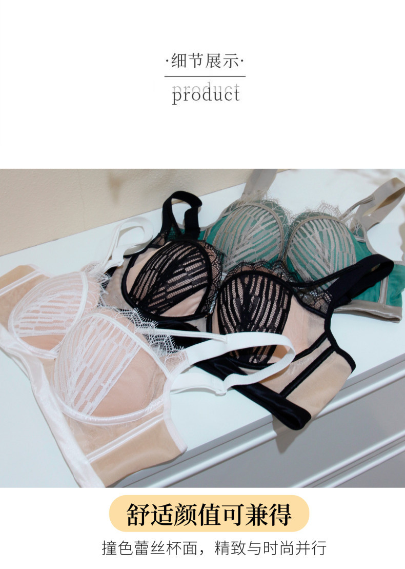 3199 popular encaje francés pequeño pecho sexy inalámbrico medio grueso taza ropa interior push up moda ajuste sujetador traje