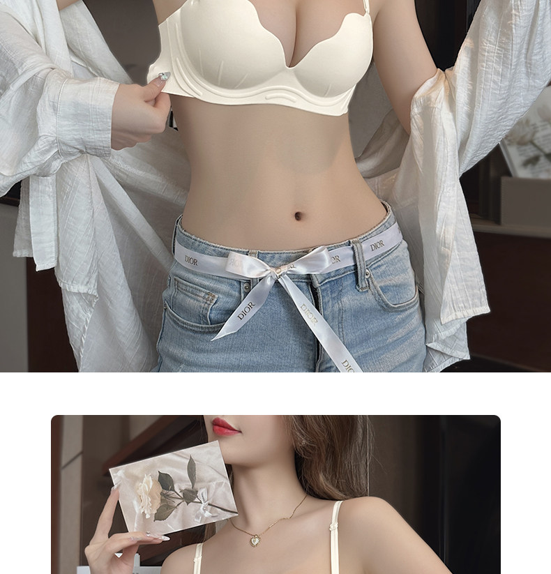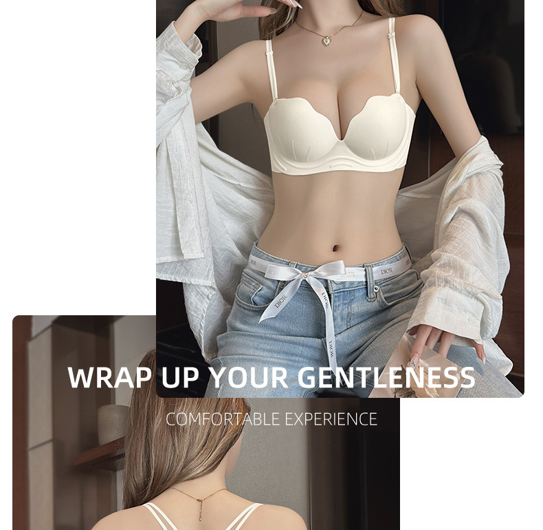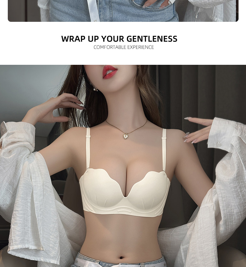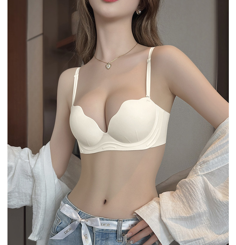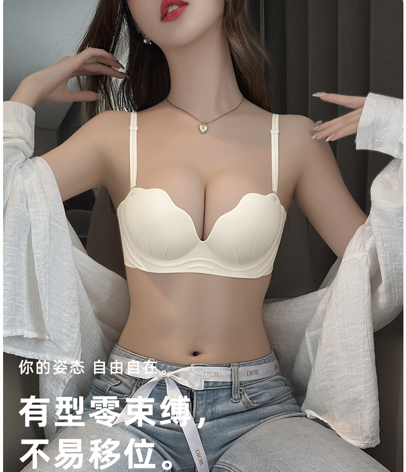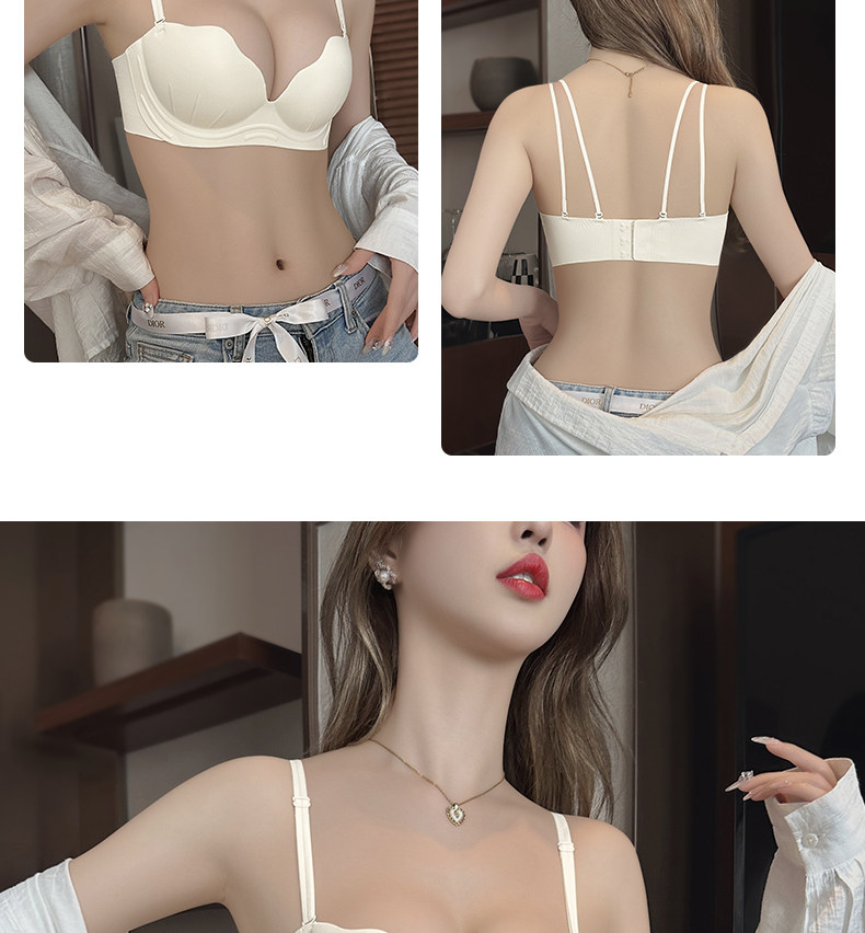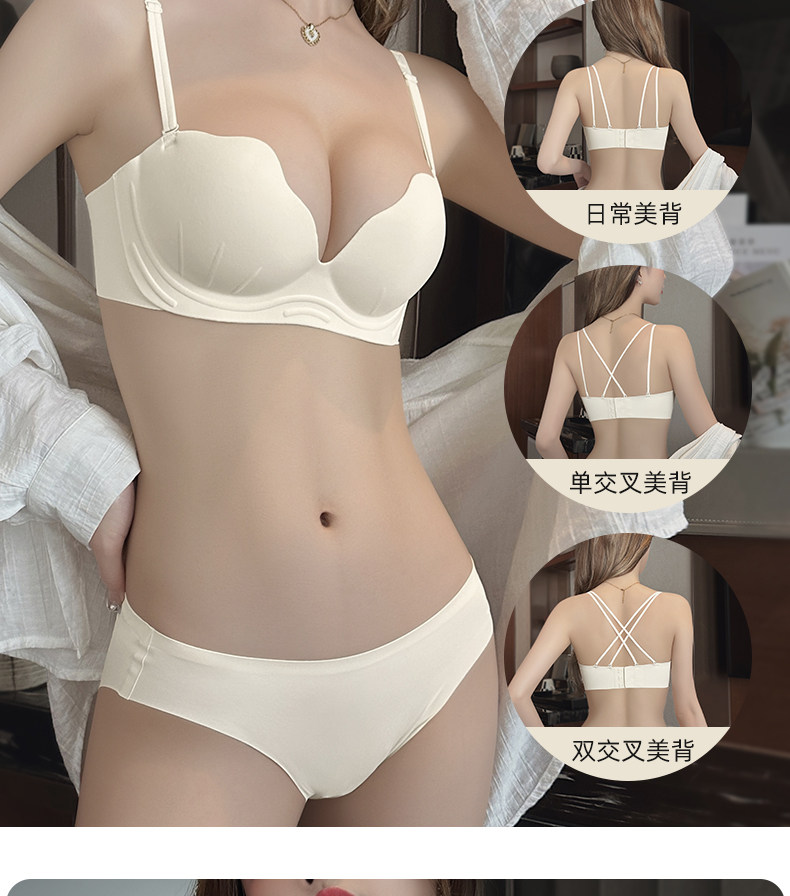 Ropa interior sin costuras de verano de las mujeres pequeño pecho push up colección de pecho grande blanco doble correa de hombro delgada sexy belleza espalda sujetador traje