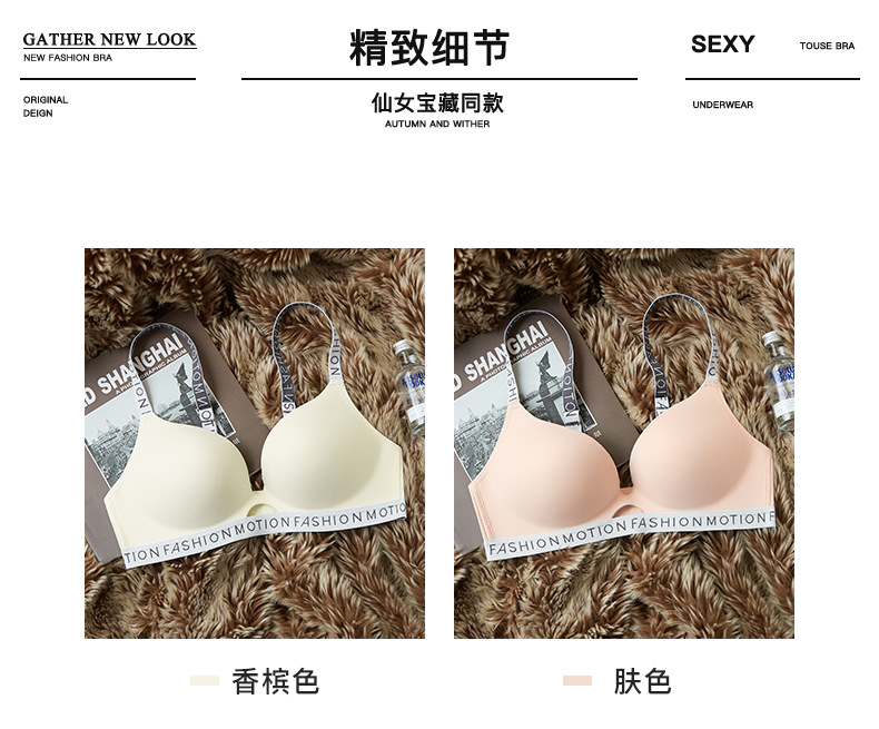 Popular pequeño pecho push up grande sin costuras inalámbrico ajustable ropa interior sujetador carta delgada correa de hombro belleza espalda sujetador