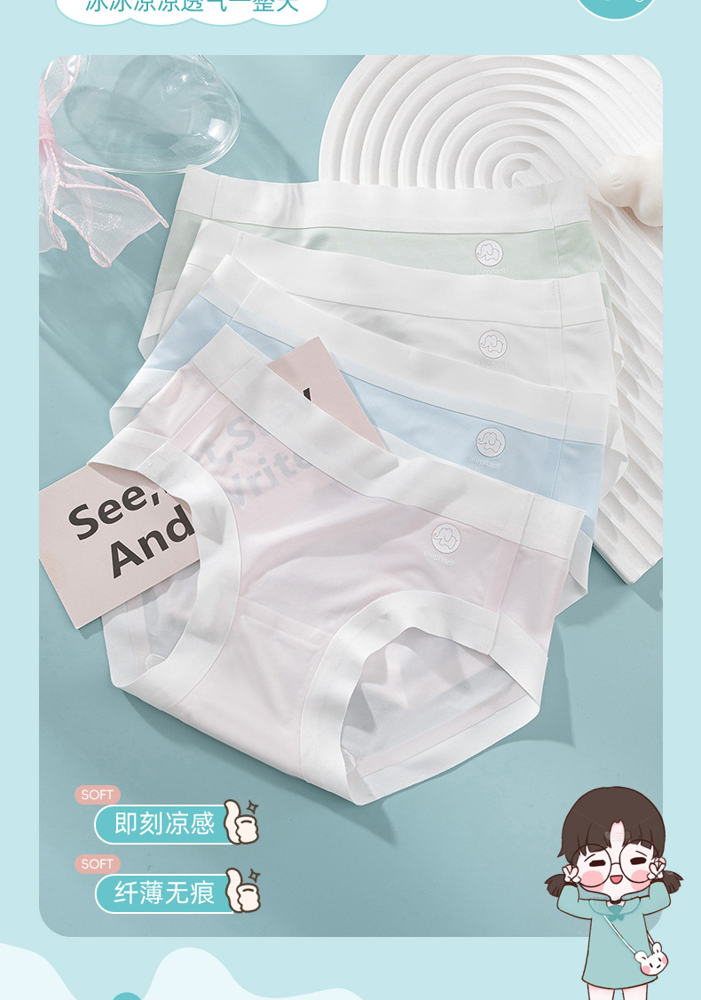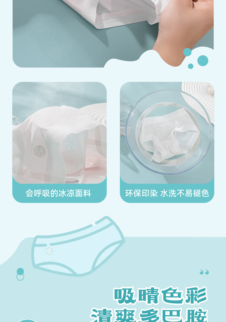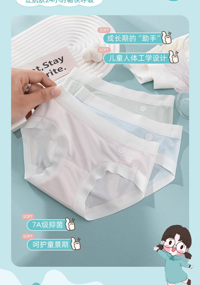 Calzoncillos para niñas, estudiantes de secundaria, calzoncillos de seda de hielo antibacterianos para niños, calzoncillos transpirables y sin costuras, estilo fino de verano