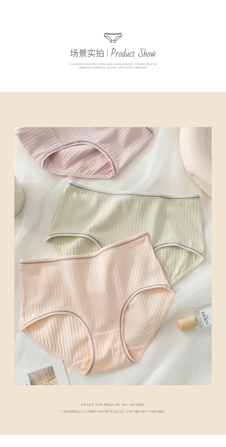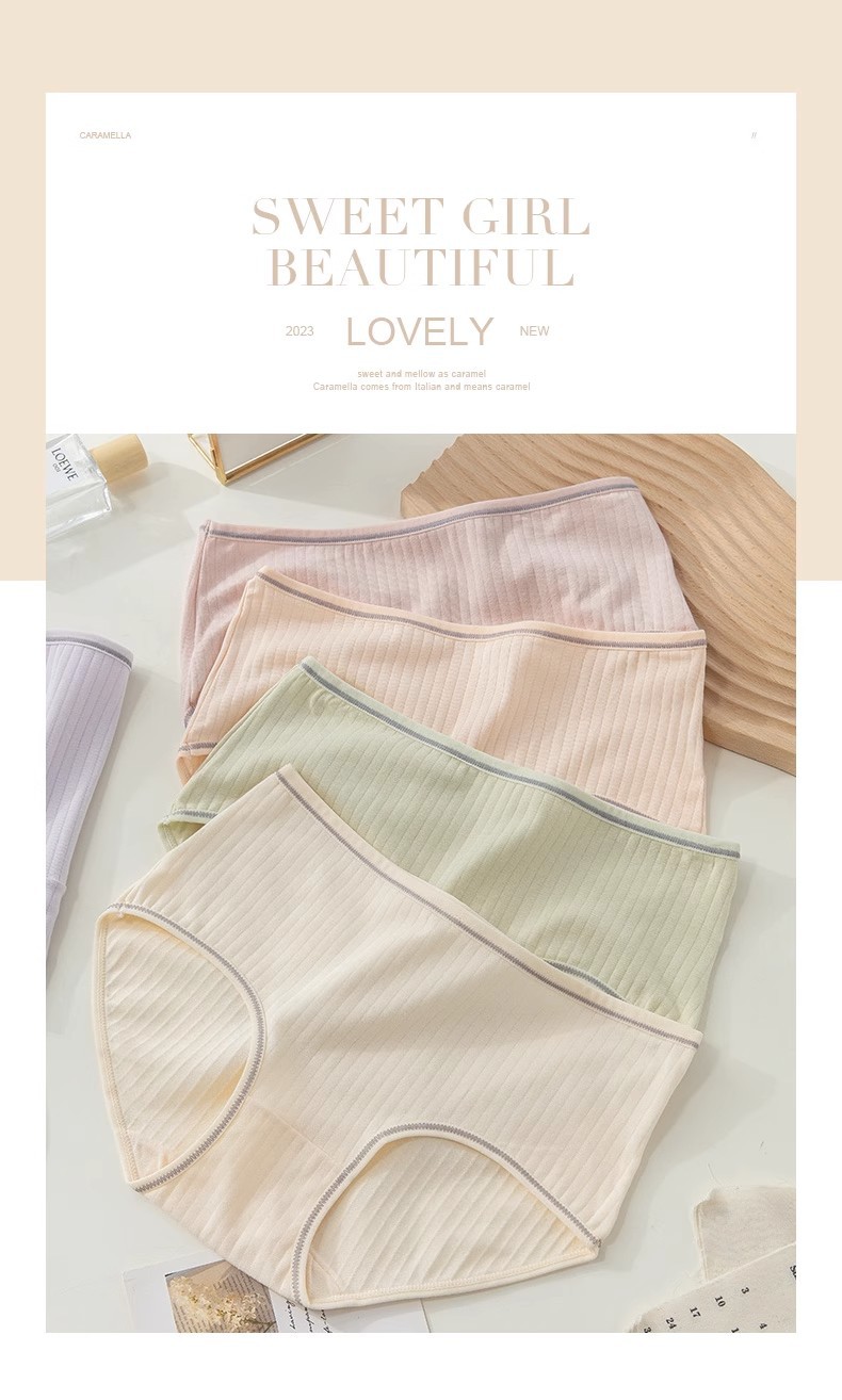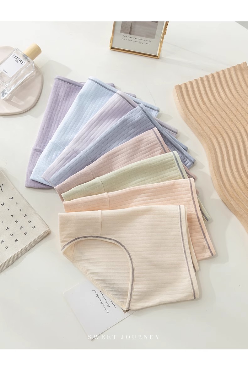 Ropa interior sin costuras fábrica de niñas al por mayor verano transpirable cómodo Algodón puro patrón vertical Morandi dulce Mediados de cintura calzoncillos