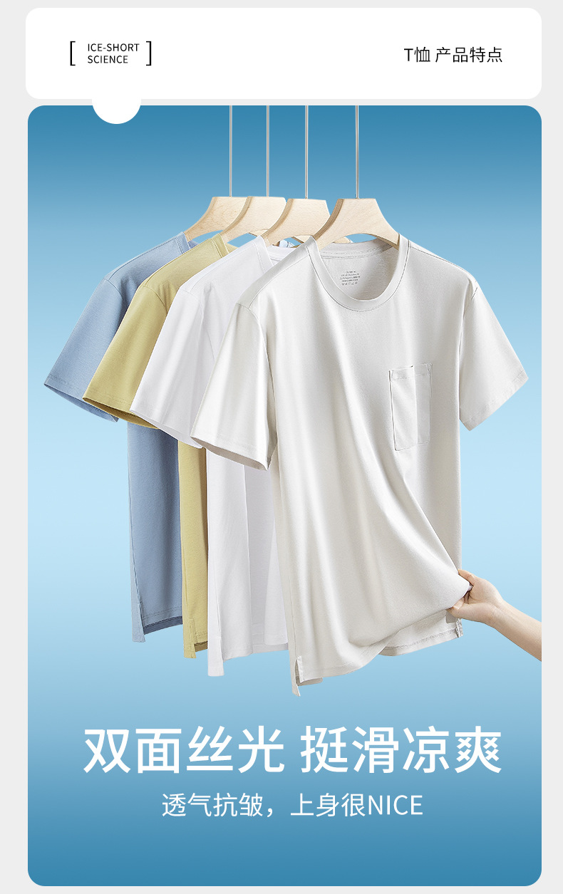 80 blusas de algodón mercerizado de primavera y verano para hombres, manga corta fresca, fondo fino, color sólido, puede salir, camiseta de bolsillo antiarrugas