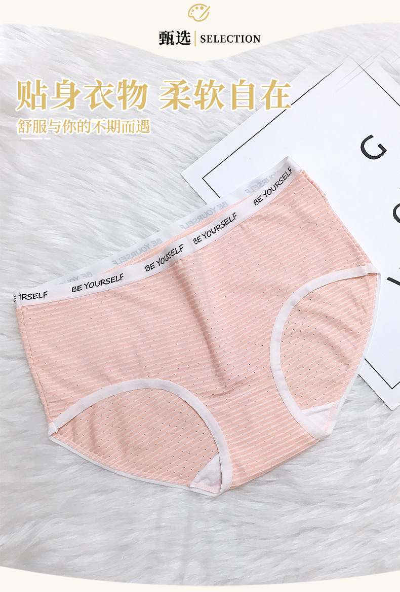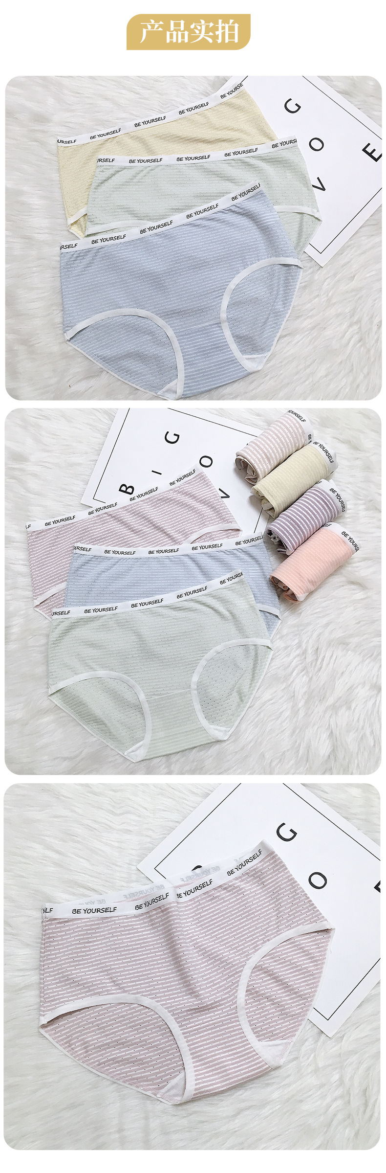 Ropa interior delgada de verano de las mujeres al por mayor de algodón a rayas entrepierna de las mujeres jóvenes transpirable fresco piel-friendly Mediados de cintura calzoncillos