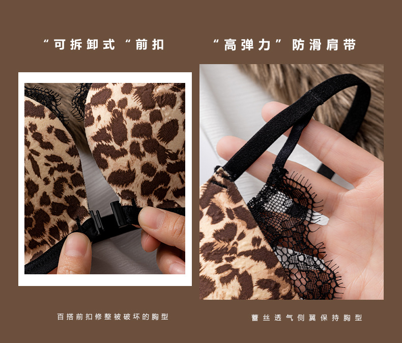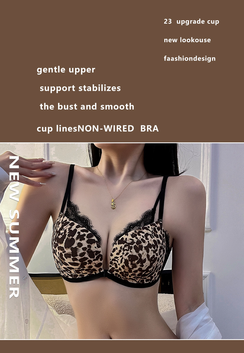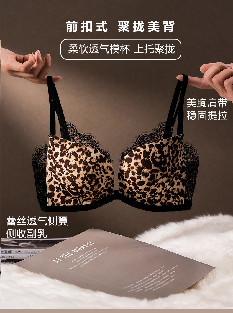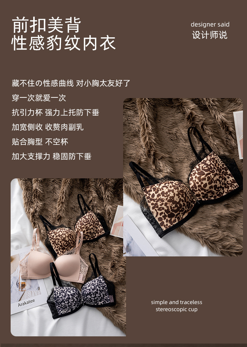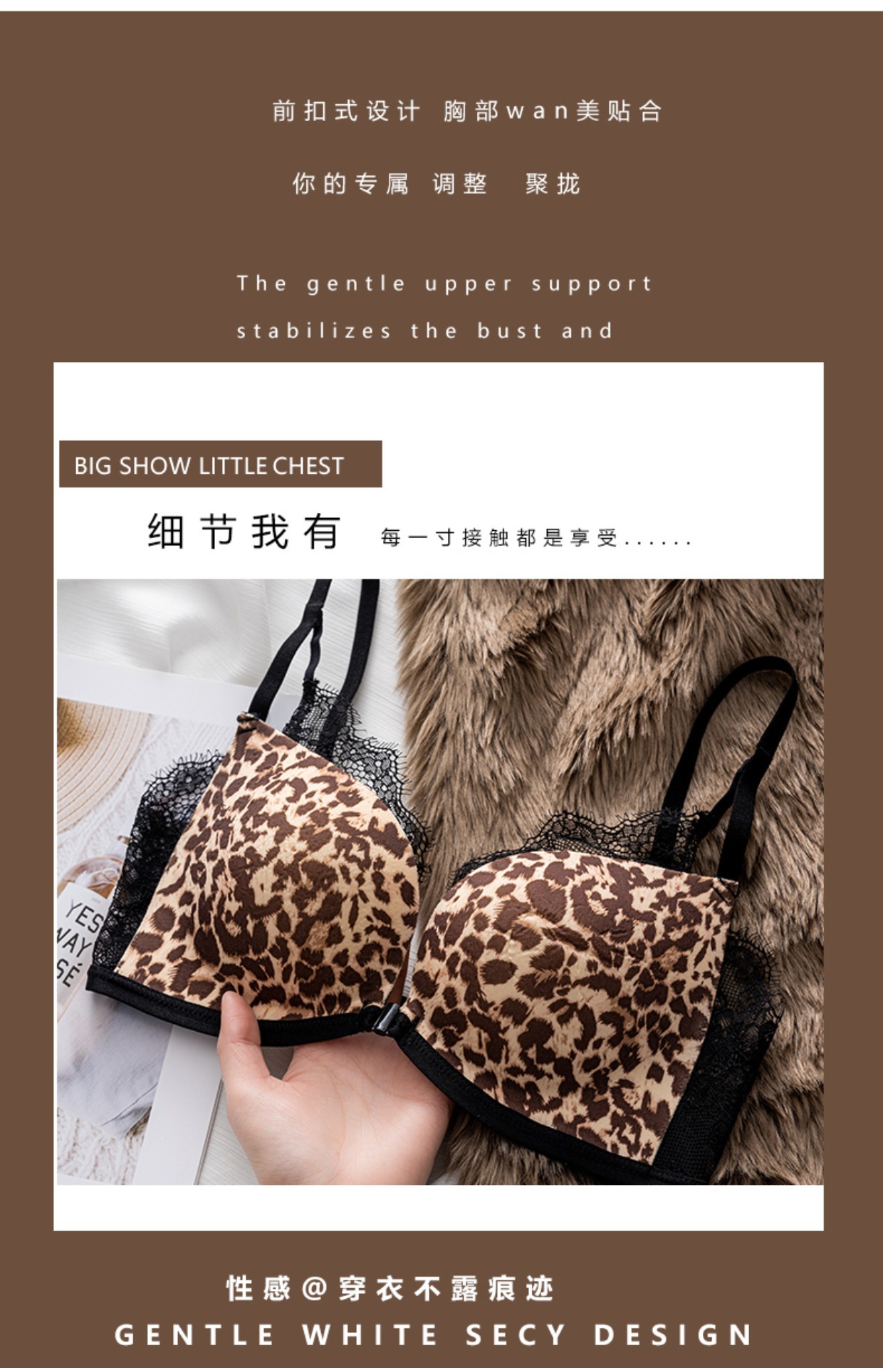 Deseo puro frente hebilla pequeño pecho sexy encaje leopardo ropa interior sin anillo de acero colección superior sujetador 018
